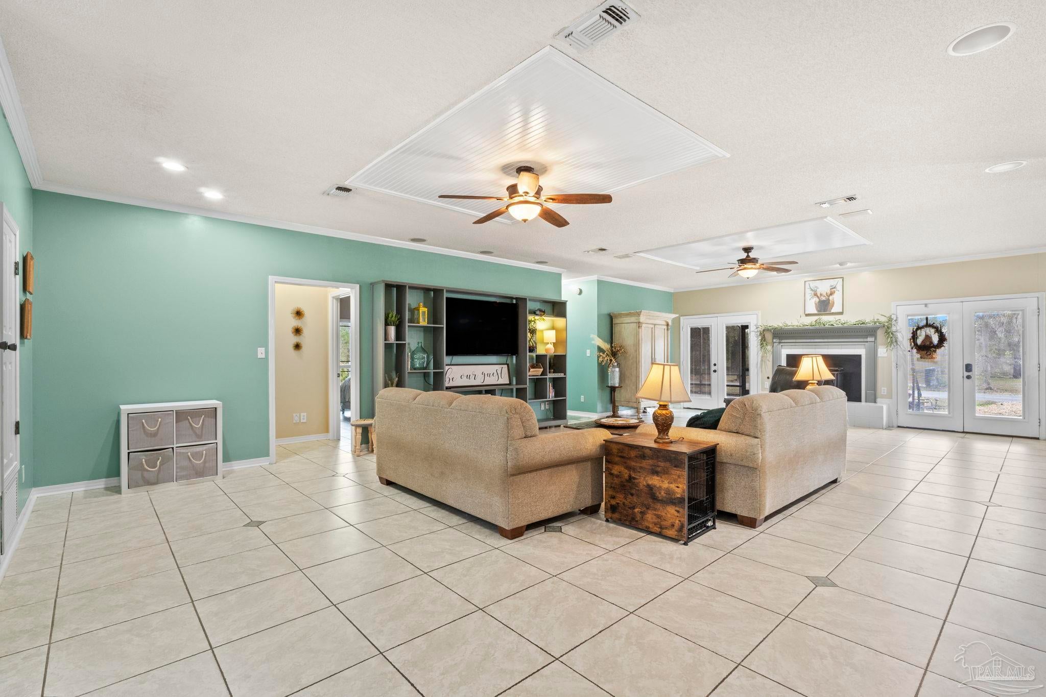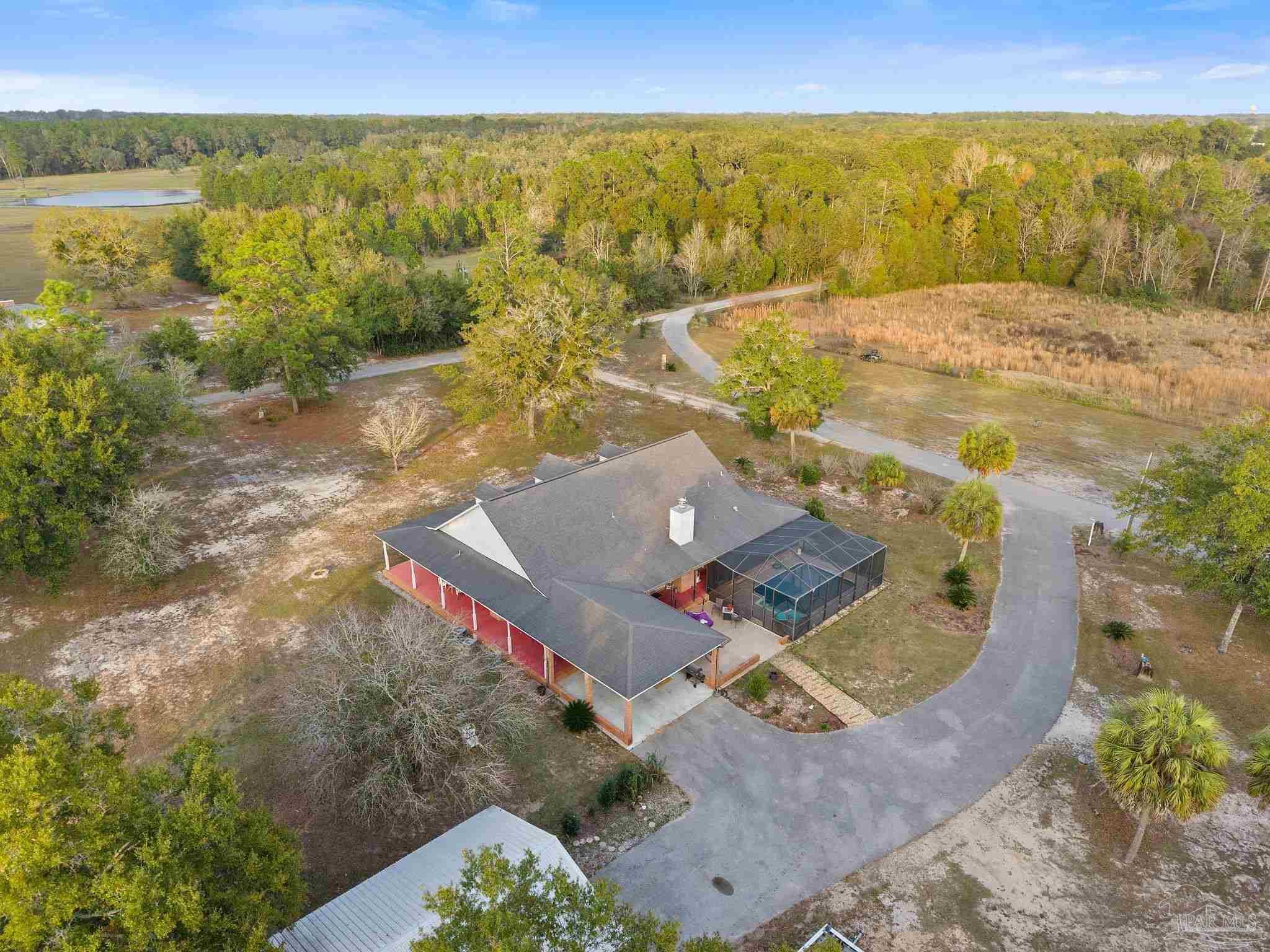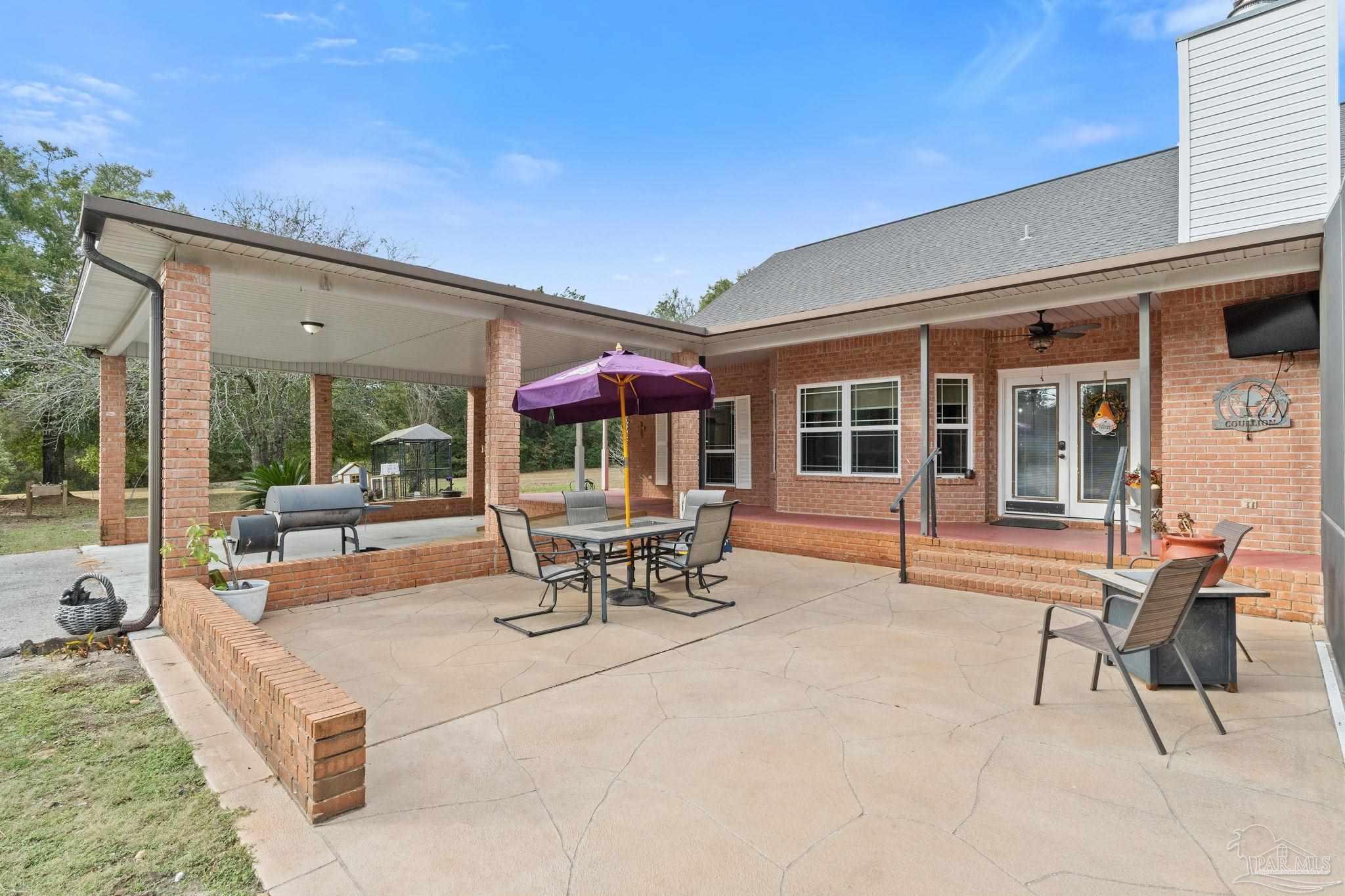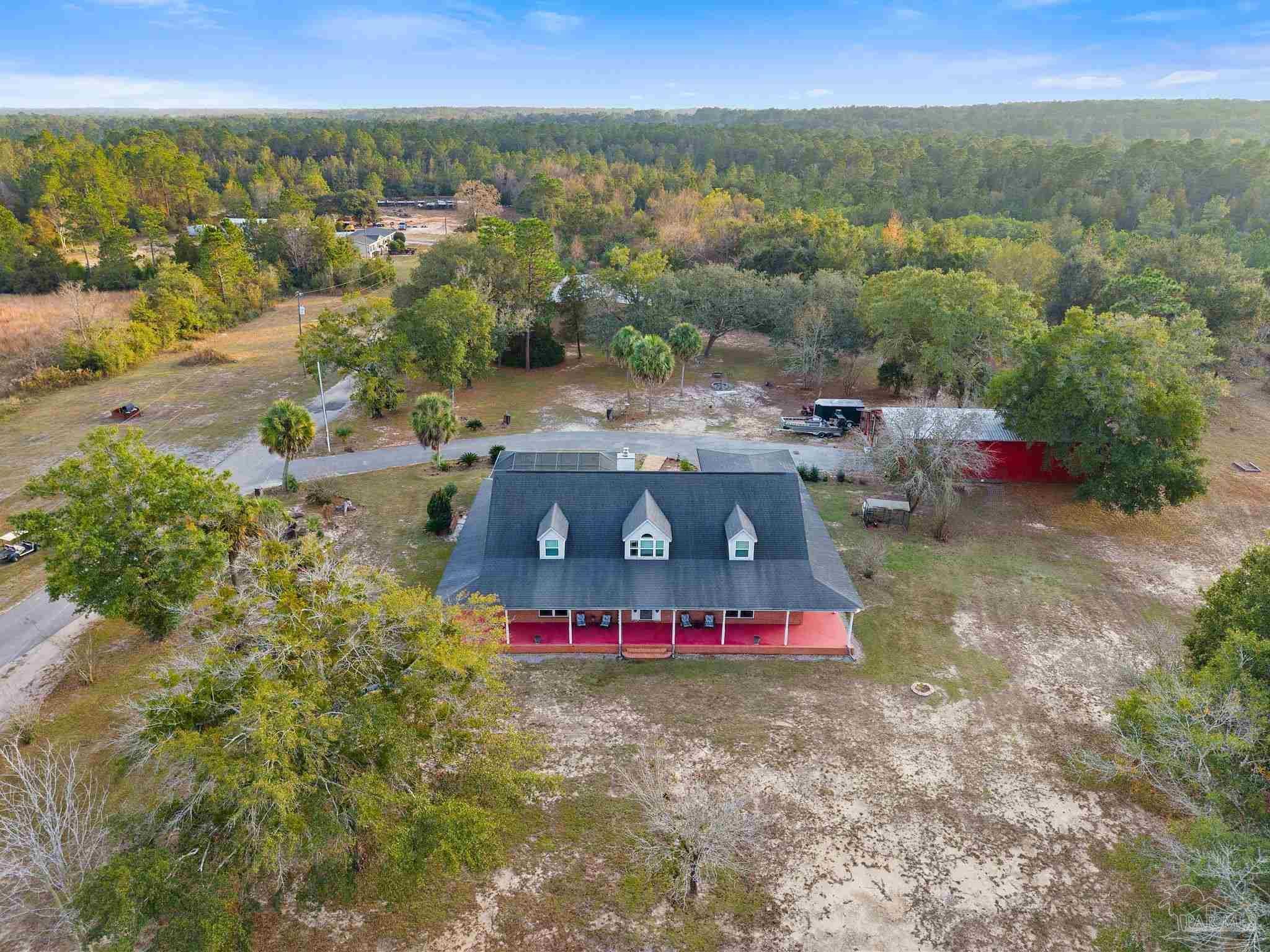 This is a RARE and UNIQUE 3-Bedroom, 3-Bathroom Brick home on 30 ACRES in the middle of Milton. Enjoy the feel of peaceful country living just minutes from town. The property features an ENCLOSED SALTWATER POOL, a FISHING POND, a CREEK, a massive 3,000 SQ. FT. metal building with power, and another 2400 sq. ft. garage/workshop with power. Additional highlights of this home are a wrap around porch, wood burning fireplace, Chef's Kitchen, large laundry room, and a bathroom that opens to the pool area. The attic offers room to expand or add additional living space if desired. For travelers, there is an RV hookup with a dedicated dump station. Located at the end of a dead-end road, this property offers true privacy while still being close to schools, shopping, and local amenities. Enjoy the benefits of in-town convenience with the feel of country living — a rare find!