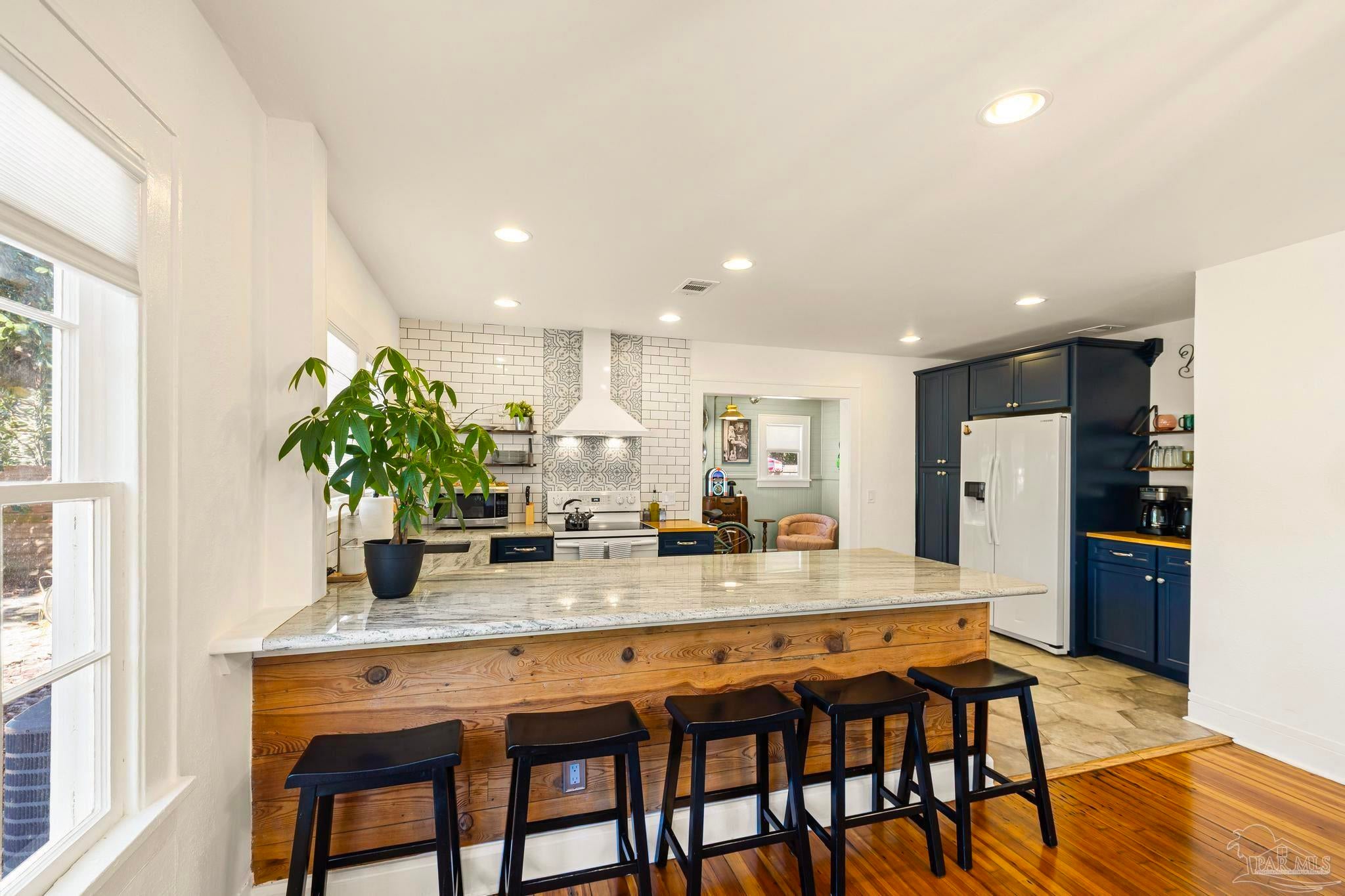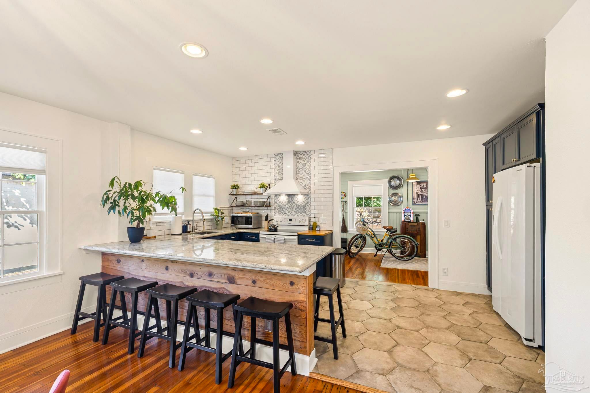 OPEN HOUSE THIS WEEKEND! November 1st & 2nd 11am-1pm! Welcome to this unique and beautifully restored 3-bedroom, 1-bathroom classic home located near vibrant downtown Pensacola! This thoughtfully preserved, turnkey home is currently operating as a successful Airbnb, making it an ideal investment property or a cozy personal residence. Step inside and fall in love with the character and charm that have been carefully maintained throughout. Original heart pine floors have been refinished, providing warmth and timeless elegance. The fully remodeled bathroom features a stylish tile shower/tub combo and a classic pedestal sink, blending modern comfort with vintage appeal. The beautiful spacious kitchen is a standout with its modern upgrades, including sleek stone countertops, upgraded plywood cabinetry, a custom tile backsplash, and updated fixtures. Major system upgrades make this home as reliable as it is charming. It has a 2024 roof with 100% water shield upgrade and 30-year dimensional shingles that offer peace of mind for years to come. Home has had some plumbing updates including new PEX supply lines and was completely rewired in 2016. Enjoy the privacy of the 8’ fully fenced backyard, complete with a welcoming deck space ideal for entertaining guests or simply relaxing outdoors. Located in a convenient and desirable area, you're less than two miles from Historic Palafox Street just minutes away from downtown Pensacola’s restaurants, shopping, parks, and more. Whether you're looking to continue its Airbnb success or make it your full-time home, this gem is truly move-in ready. Schedule your private showing today!