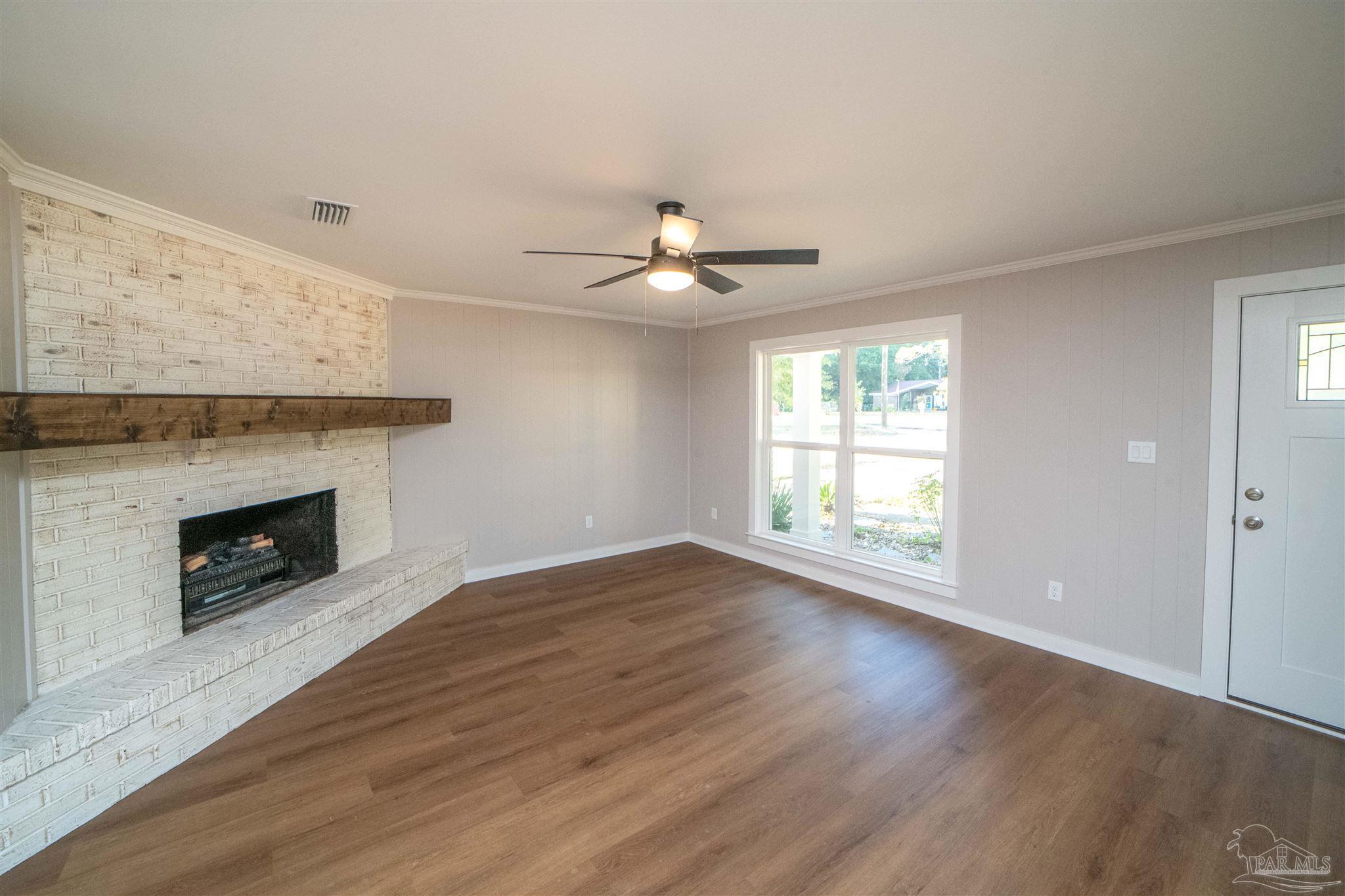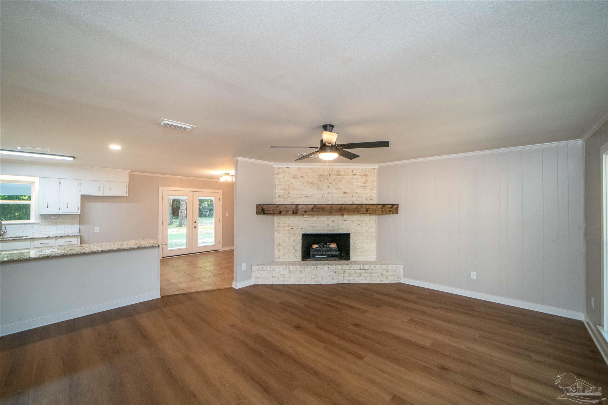 Welcome to this newly updated and remodeled spacious brick ranch-style home in Milton just minutes from town, schools, and the interstate. Home features a new roof, new windows, new floors, new paint and so much more. The home boasts 3 bedrooms, 2 bathrooms, plus a large bonus room and oversized laundry/mudroom. The new covered back patio overlooks mature oaks and a large backyard as the home sits on .66 acre! Schedule your showing today!