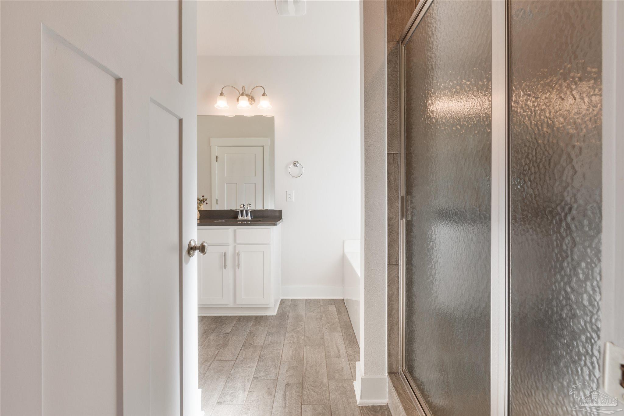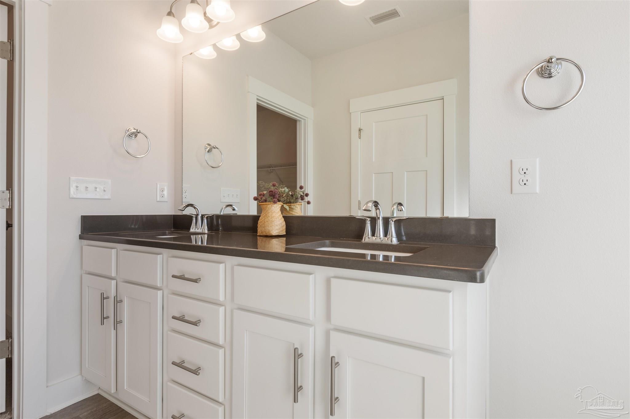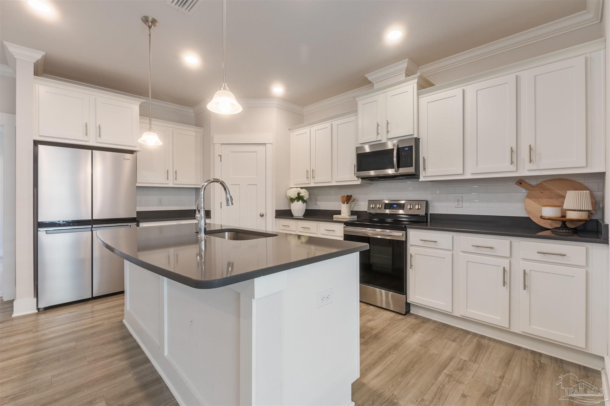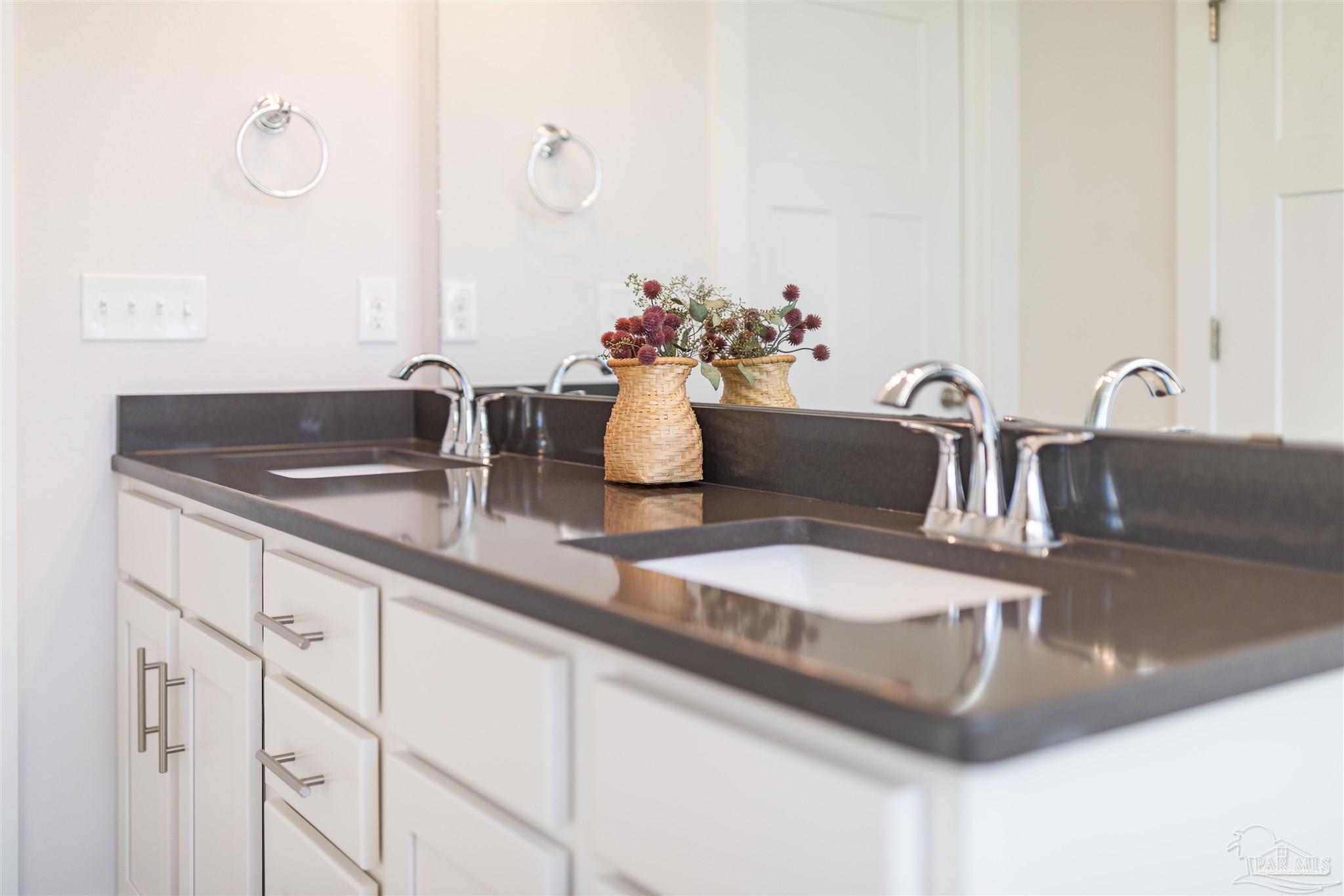 Beautiful 4-year-old Craftsman-style all-brick home in the desirable Cambridge Park, ideally located off Hwy 98 and near the sugar-white beaches. This home sits at the end of a spacious cul-de-sac, offering extra privacy, minimal traffic, and a great space for outdoor gathering. The welcoming foyer opens to a split-bedroom, open-concept layout with crown molding, granite countertops in kitchen and baths, and luxury vinyl plank flooring throughout with carpet in the bedrooms. The kitchen features stainless steel appliances, shaker cabinetry & plenty of counter space. The private master suite includes tray ceilings with crown molding and an en-suite bath with dual granite vanities, separate shower, and garden tub. It also includes a large walk-in closet that leads into the laundry room. Enjoy the fully fenced backyard (to be completed within the week) and relax on the covered back porch. Solar panels will be paid in full at closing, allowing buyers to reap the benefits of solar living with low electric bills in this energy-efficient home. Don't miss the chance to own this stunning property!