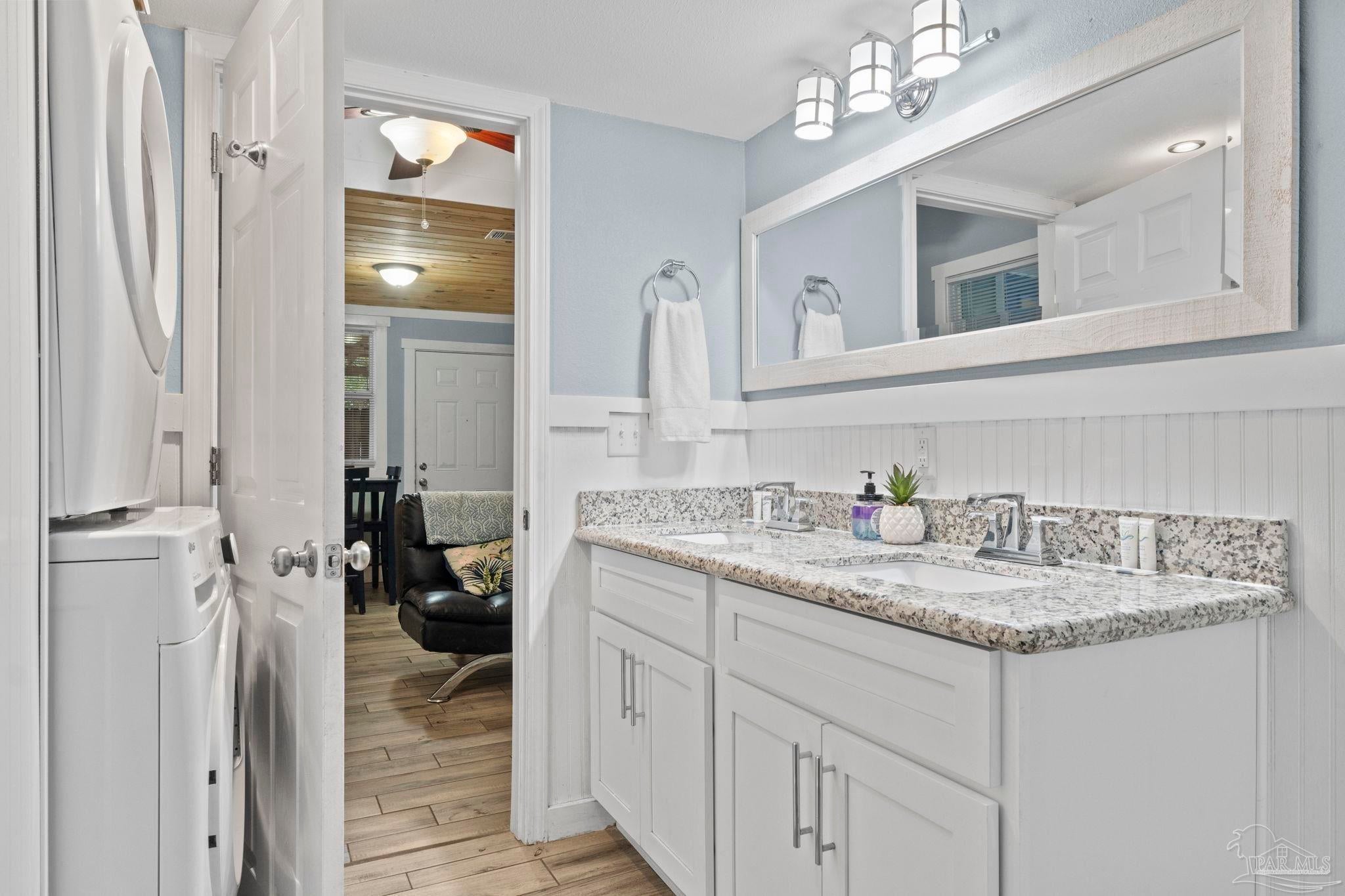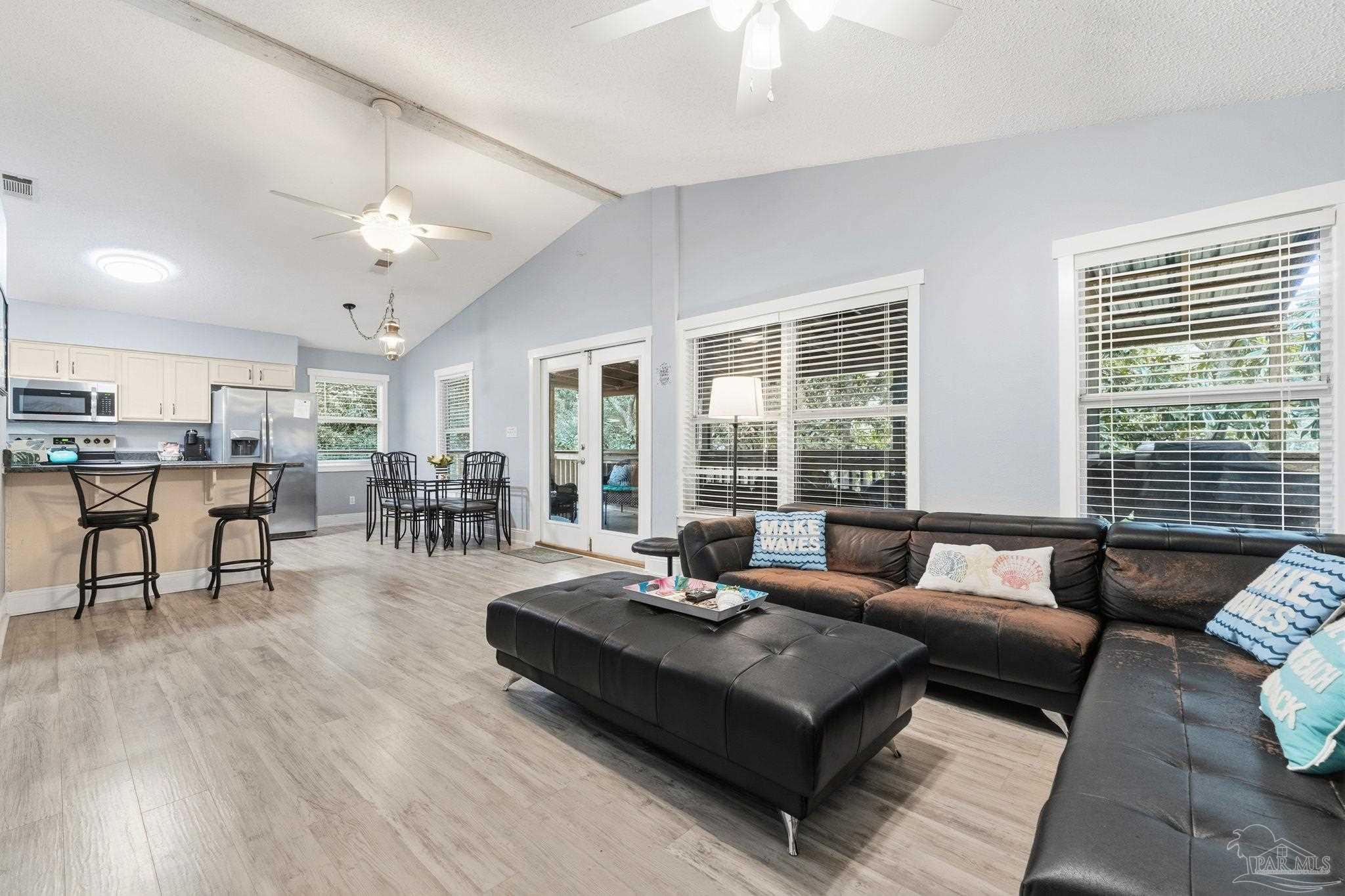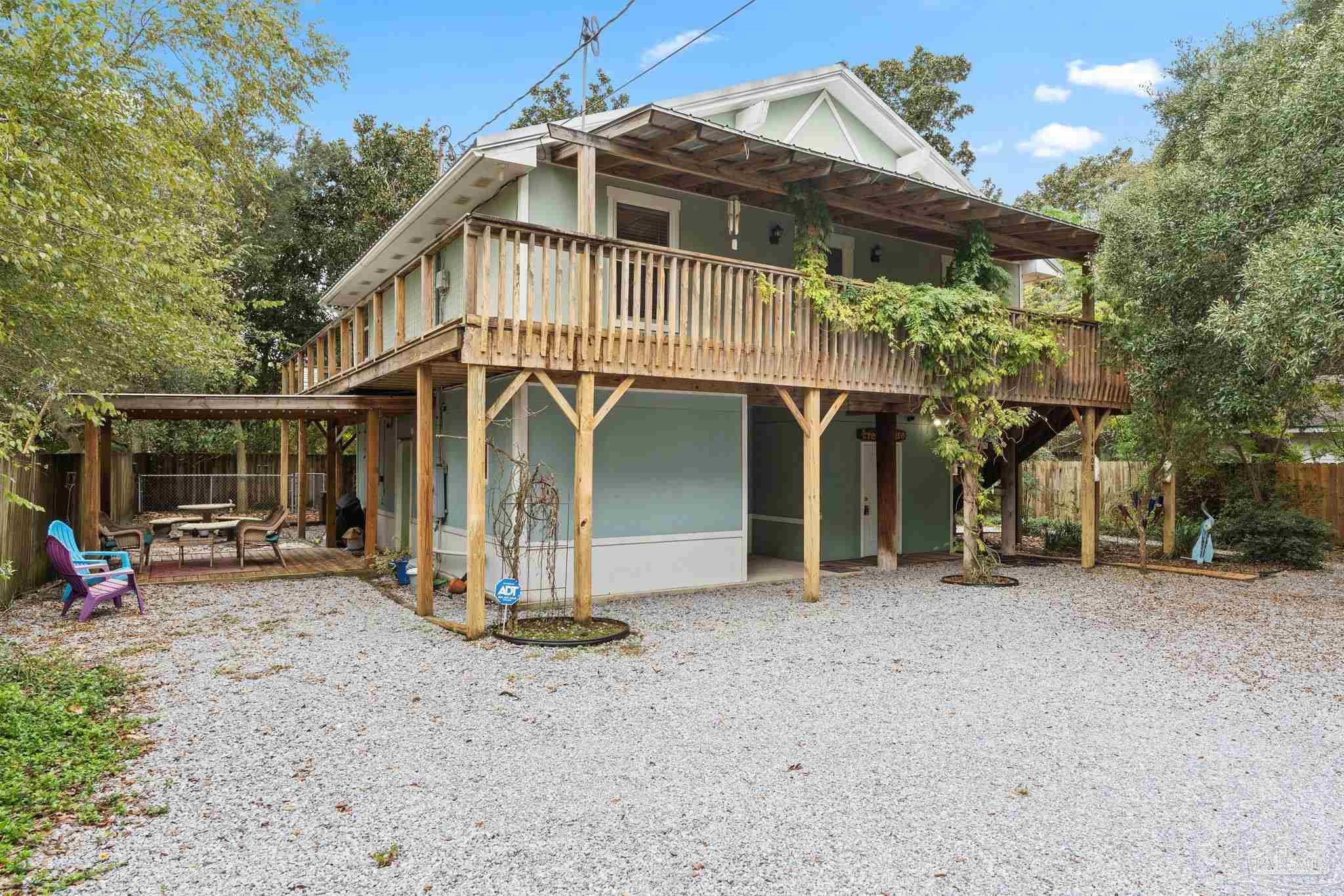 Discover a property unlike any other, welcome to the “Tree House!” This special home offers two complete dwellings under one roof — perfect for multi-generational living, rental income, or hosting guests in style. Each level features 2 bedrooms, 2 bathrooms, a full kitchen, a spacious living room, and inside laundry, creating two fully independent and comfortable living spaces. Upstairs, you’ll find a home wrapped in nature — boasting a screened-in porch and a balcony that encircles the entire home, offering tranquil views and breezy outdoor living. Inside, newer luxury vinyl plank flooring adds a fresh, modern touch. The open floorplan creates a great flow from the living area to the kitchen with cathedral ceilings. Downstairs has been completely remodeled, showcasing beautiful finishes and thoughtful updates throughout. Whether you choose to live upstairs, downstairs, or enjoy both, this home’s flexible layout adapts to your lifestyle. Situated just minutes from Galvez Landing Boat Ramp, Hub Stacey’s at the Point, Perdido Key Beach, Innerarity Point Playground, and Big Lagoon State Park, “Tree House” places you in the heart of the relaxed coastal lifestyle — where boating, beach days, and sunset strolls are part of everyday life. ? Unique. Versatile. Coastal. “Tree House” isn’t just a home — it’s an experience.