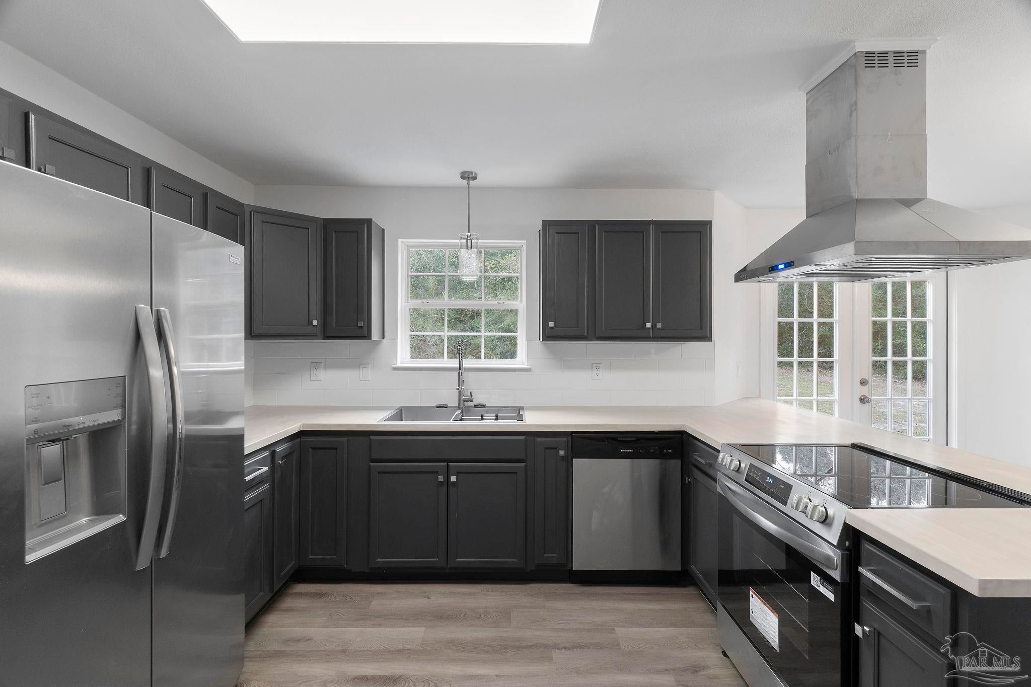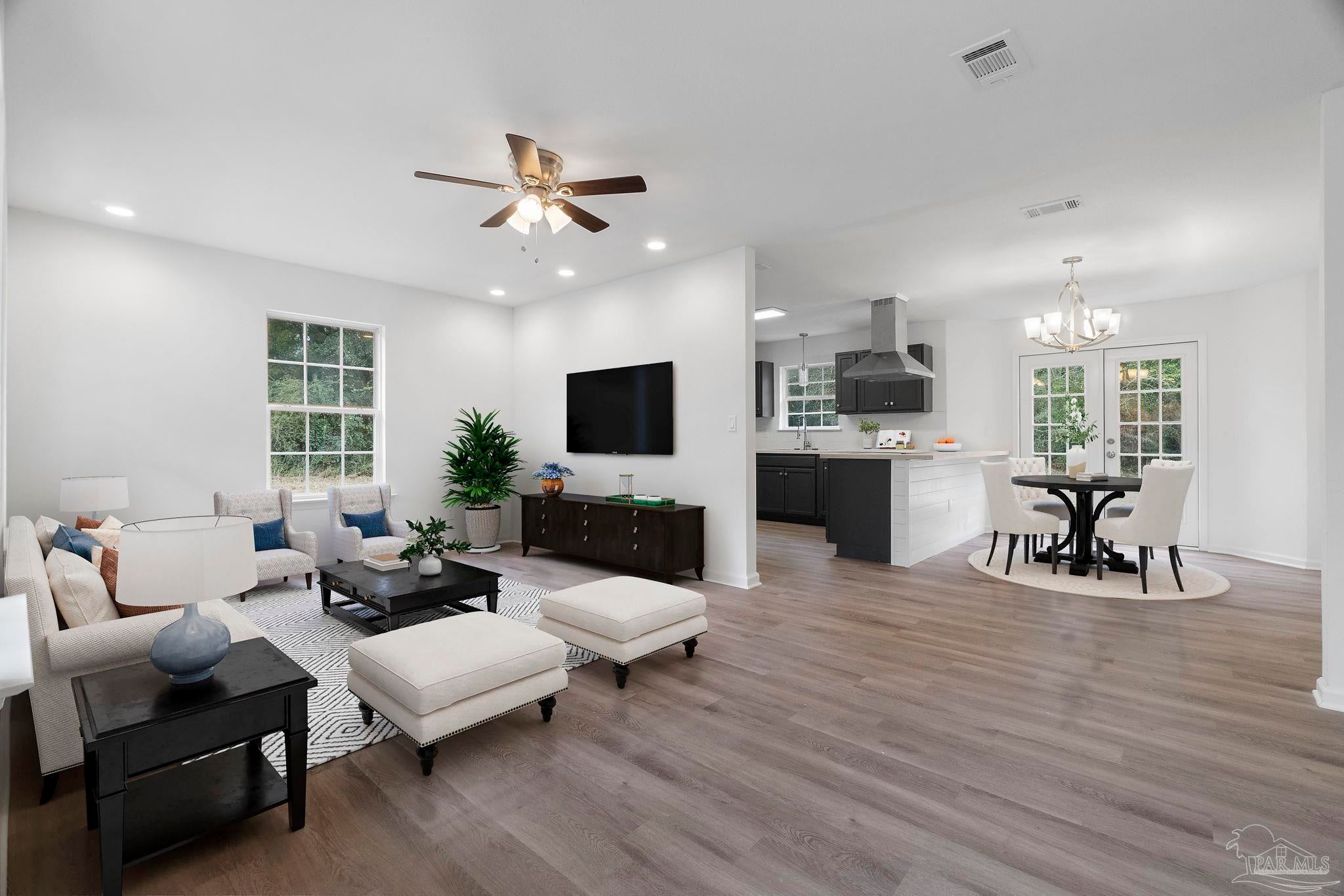 Situated within 5.59 of scenic acreage, and tucked away against a large peaceful woods is this rare gem! This is what you’ve been looking for, a beautifully renovated two bedroom modern home. This charming property has great curb appeal that draws you right in. The southern landscaping leads you to the home’s attractive contemporary entryway. Once inside, you’ll find a luxurious home with an open and modern floor plan. Stepping across the threshold, you will enter the large living room. This space is perfect to kick back, relax, and enjoy. Complementing the living room is an incredible kitchen, with cabinetry boasting a sleek modern color and tastefully chosen pulls. The elegant tile backsplash pairs beautifully with the warmth of the authentic butcher block countertop. This home has all-new highly desirable stylish plank flooring throughout the open living areas. The spacious master bedroom allows for an abundance of natural light, giving off a comfortable, relaxed feel. Additionally, the master bedroom has two expansive walk-in closets providing ample room and access to all your personal effects. The full bathroom showcases a large rainfall shower, and upscale vanity with plenty of storage. This rare find even includes a fresh garage complete with a newly refinished floor, all-new lighting fixtures, all-new plumbing fixtures, all-new flooring throughout, a brand new water heater, a brand new air conditioner, and a brand new ROOF to top it off! With 5.59 acres of gorgeous land, there is no shortage of space for all your activities and hobbies. Enjoy what Florida living is all about in your own private paradise! You don't want to miss out on this home, it could be the one!