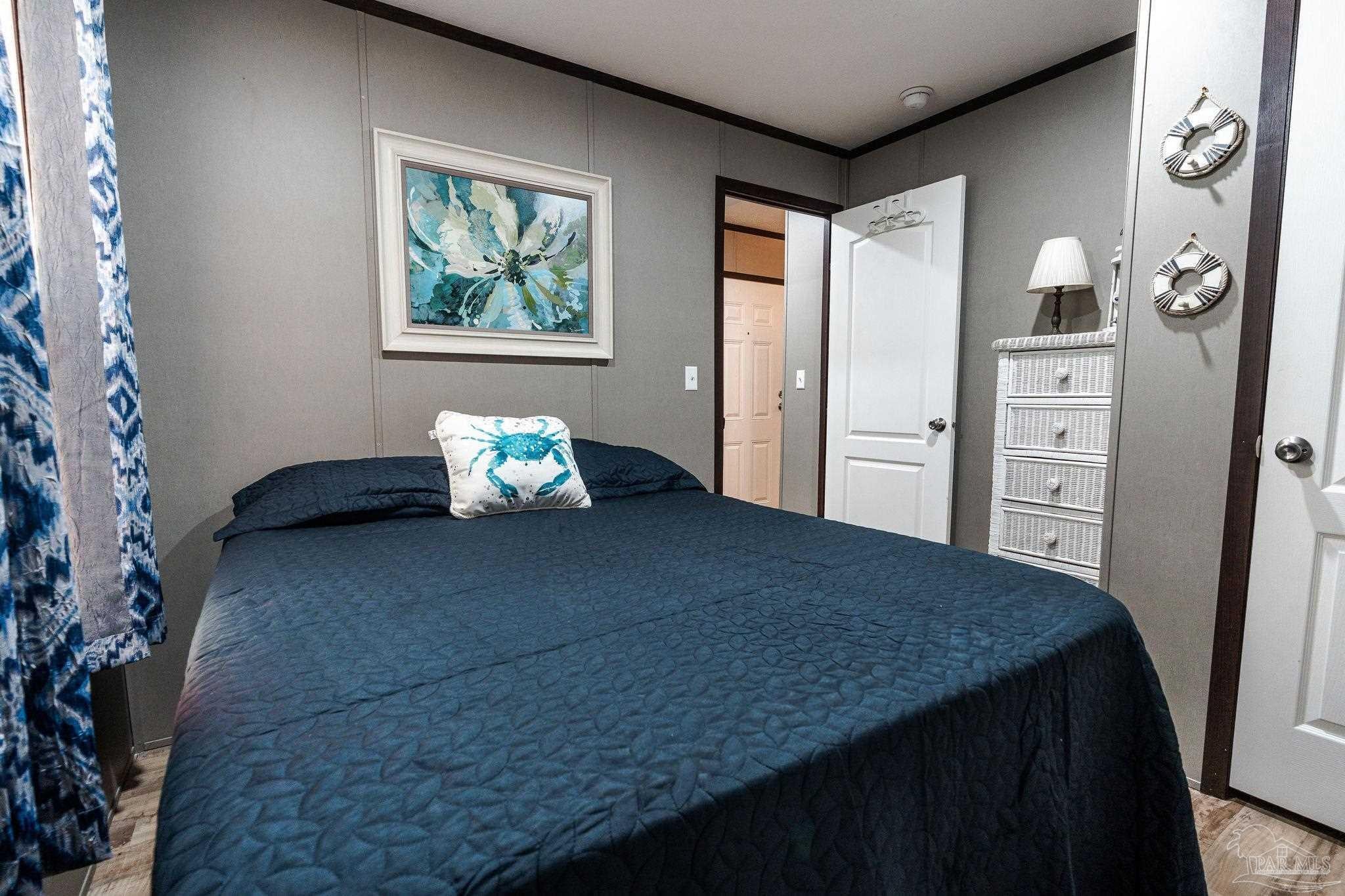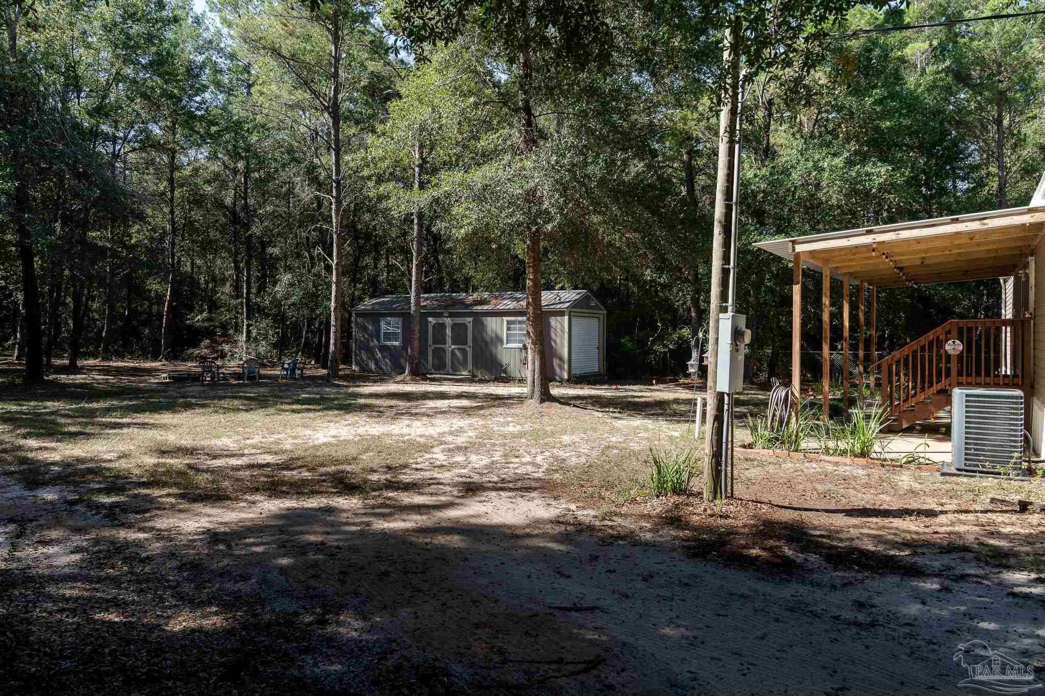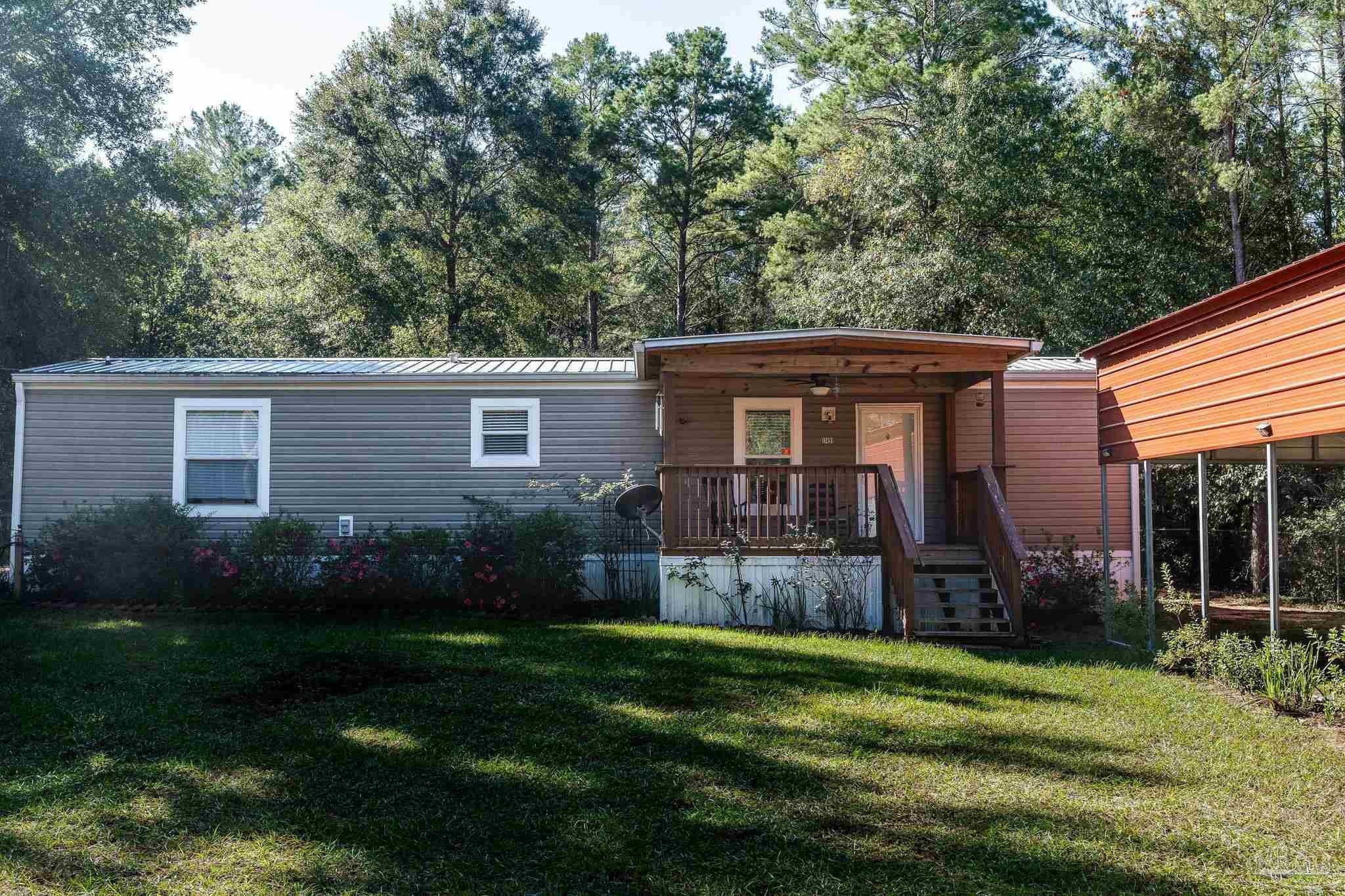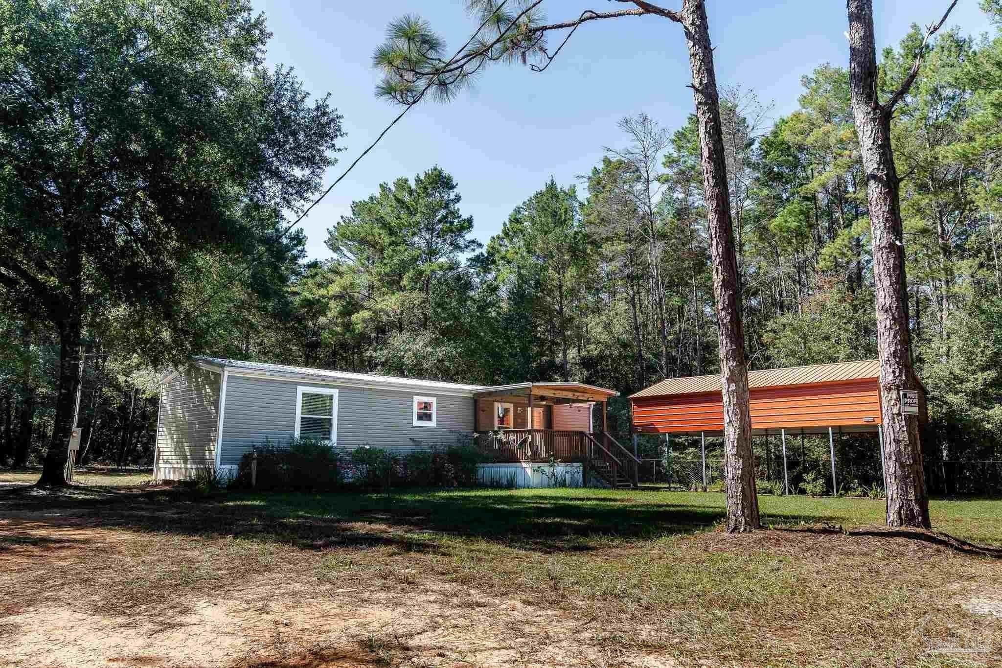 Barely lived in and like new, this charming home offers comfort, privacy, and a nature. A welcoming front porch invites you inside, where you'll find a beautifully maintained interior featuring stunning floors and gorgeous kitchen cabinets in excellent condition. The spacious primary bedroom includes two separate closets and a spacious primary bath. The second bedroom and bathroom are also in pristine condition, offering comfort and convenience for guests or family. Step out the back door to enjoy a peaceful outdoor living area surrounded by woods, providing plenty of privacy. The large, fully fenced backyard includes a utility shed that could easily be converted into an additional living space, workshop, or storage for outdoor toys. Located near the scenic Blackwater River State Park, this home is perfect for weekend getaways, nature lovers, or anyone looking to downsize and enjoy a simpler lifestyle.