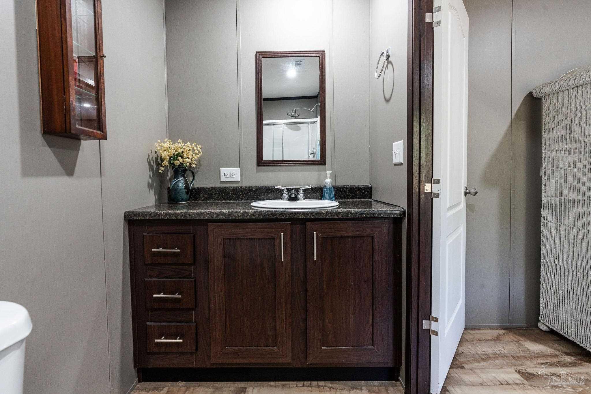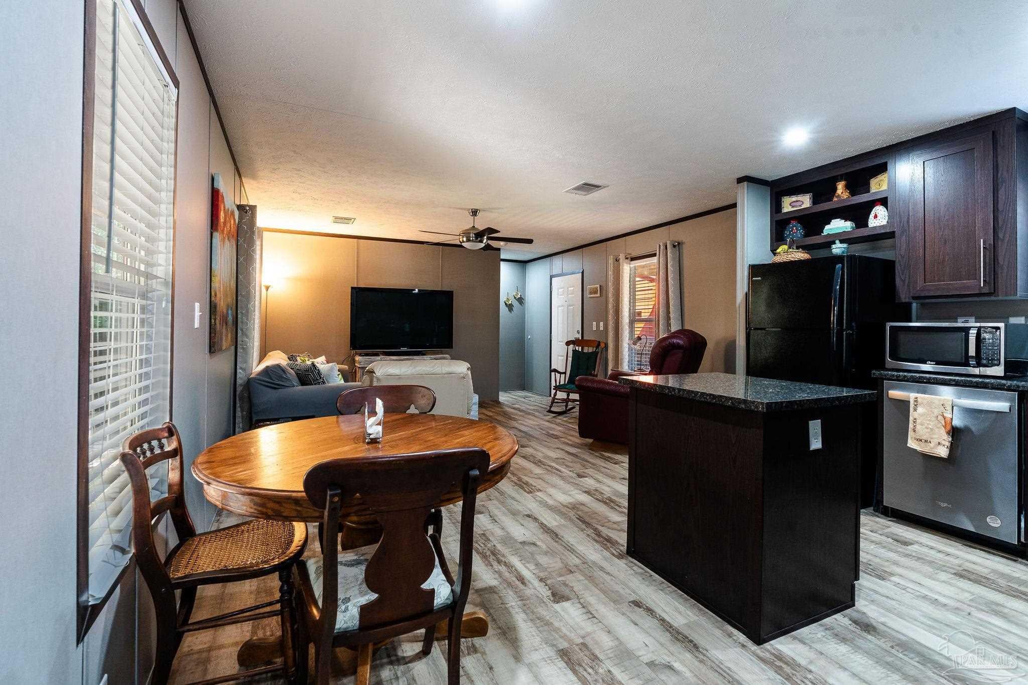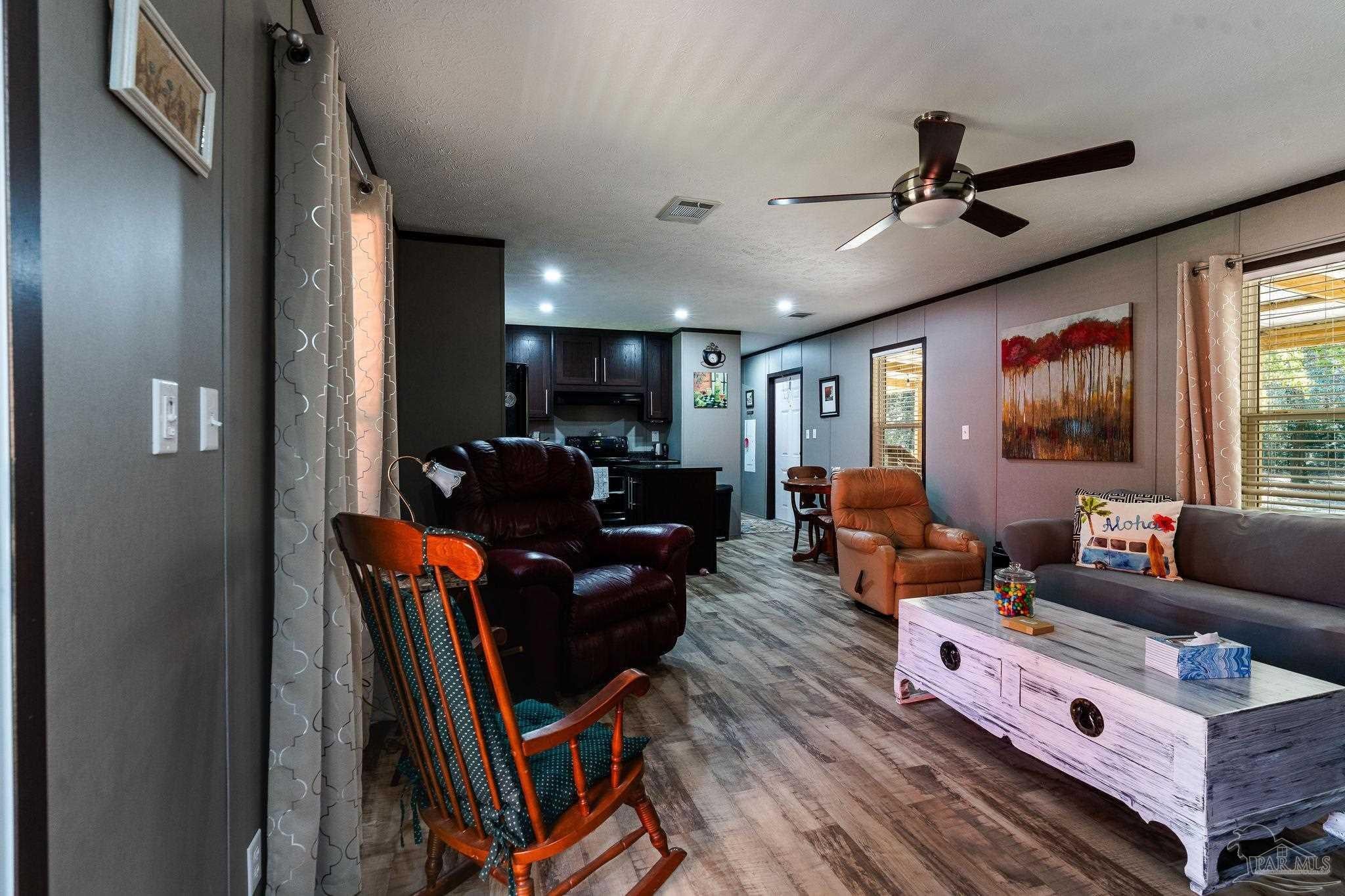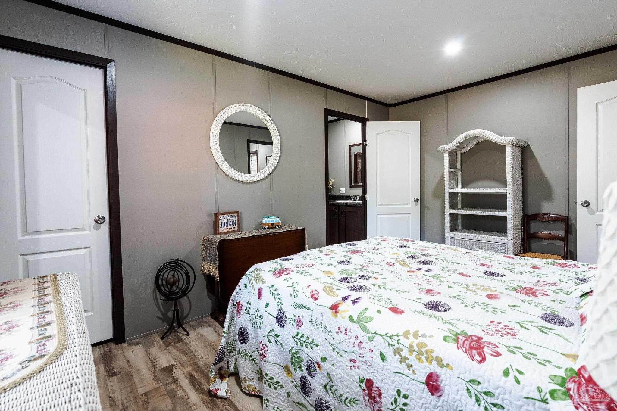 Barely lived in and like new, this charming home offers comfort, privacy, and a nature. A welcoming front porch invites you inside, where you'll find a beautifully maintained interior featuring stunning floors and gorgeous kitchen cabinets in excellent condition. The spacious primary bedroom includes two separate closets and a spacious primary bath. The second bedroom and bathroom are also in pristine condition, offering comfort and convenience for guests or family. Step out the back door to enjoy a peaceful outdoor living area surrounded by woods, providing plenty of privacy. The large, fully fenced backyard includes a utility shed that could easily be converted into an additional living space, workshop, or storage for outdoor toys. Located near the scenic Blackwater River State Park, this home is perfect for weekend getaways, nature lovers, or anyone looking to downsize and enjoy a simpler lifestyle.