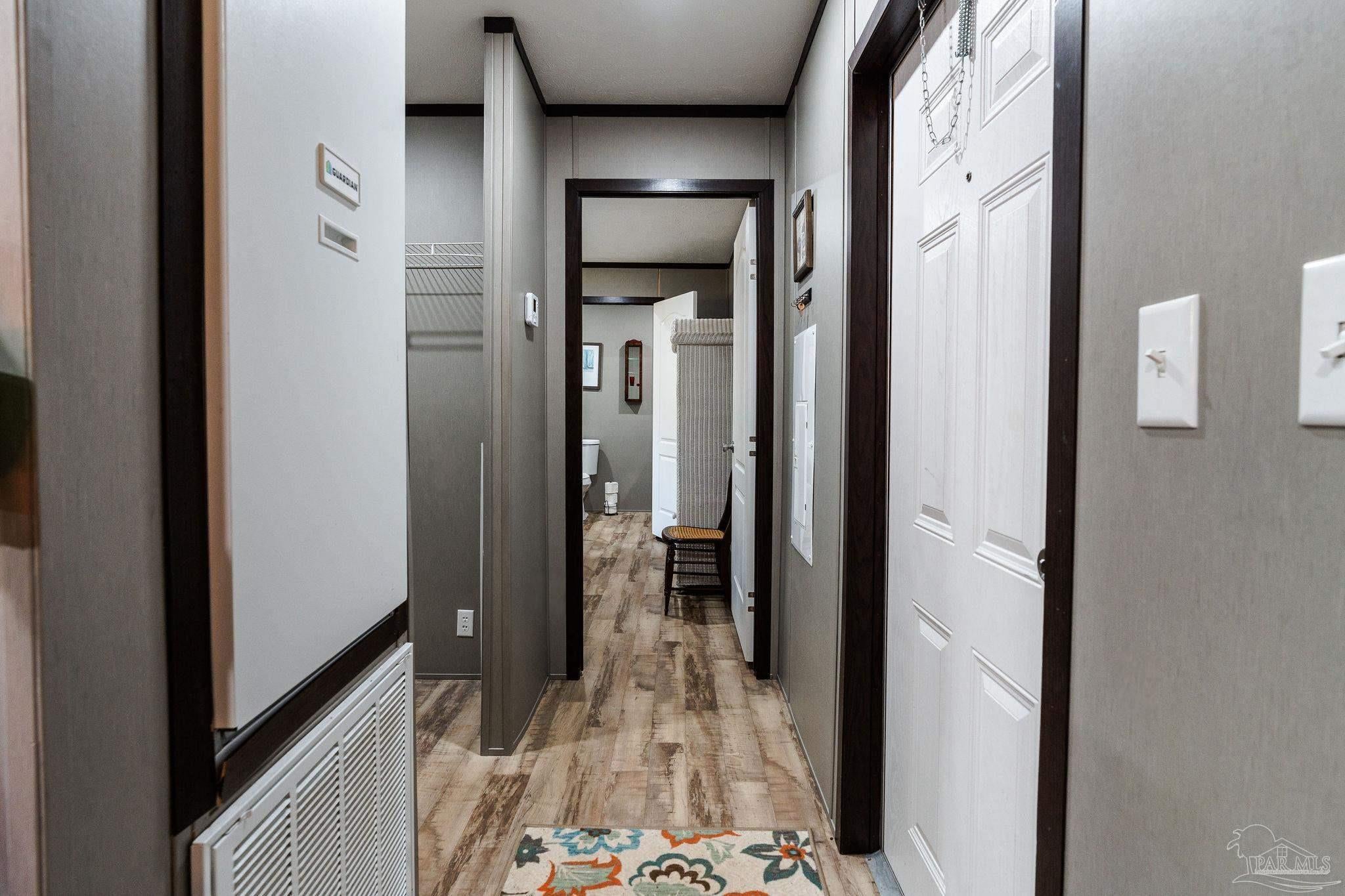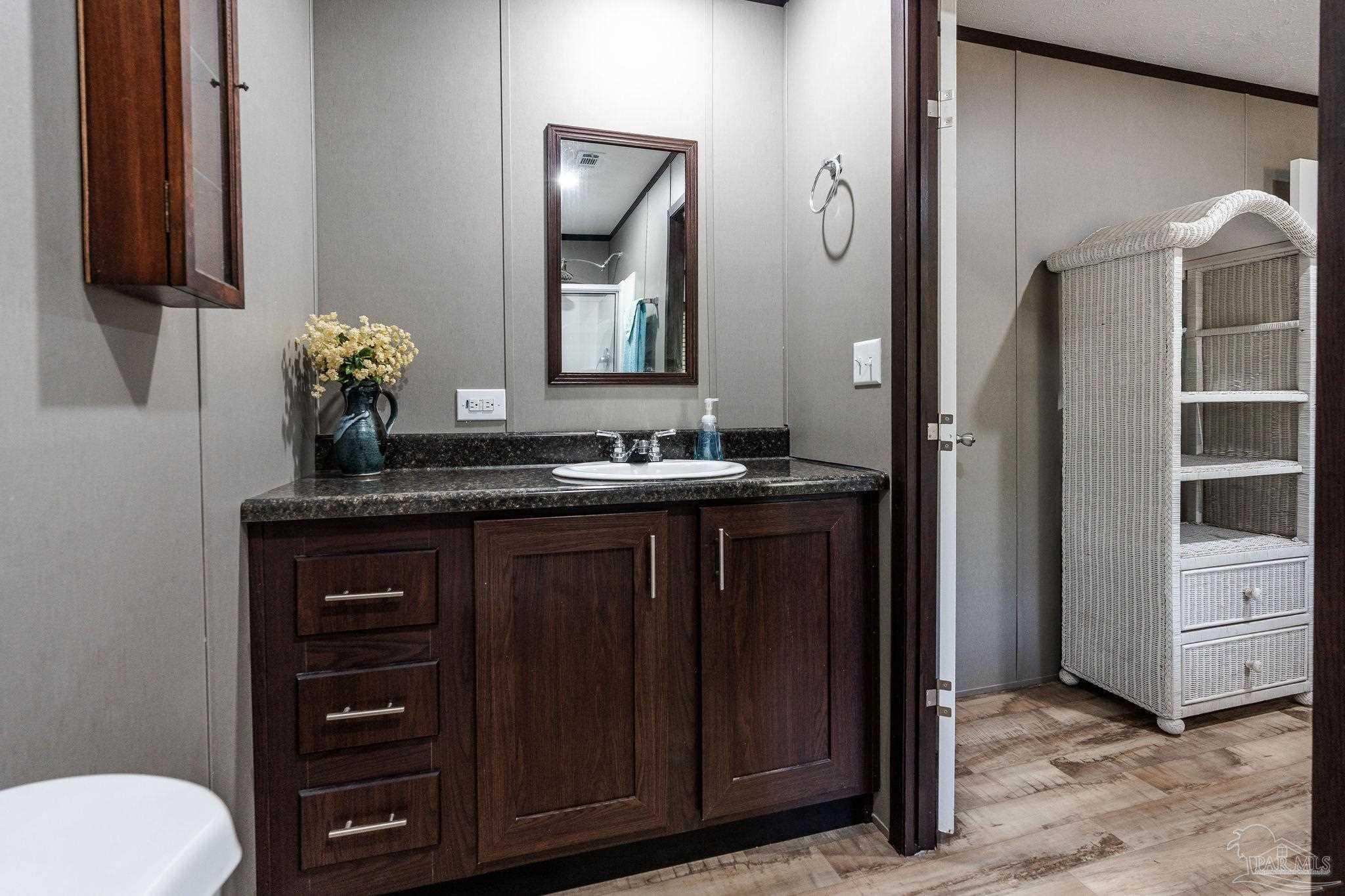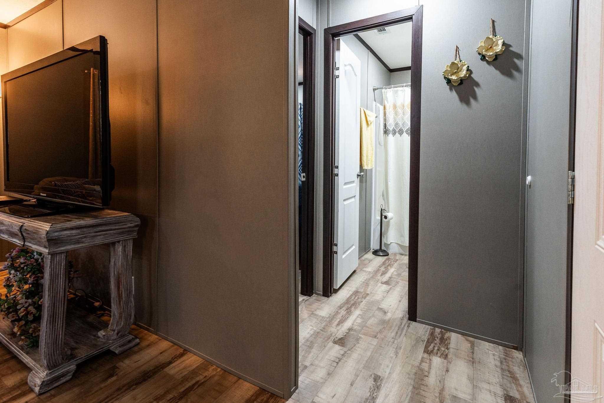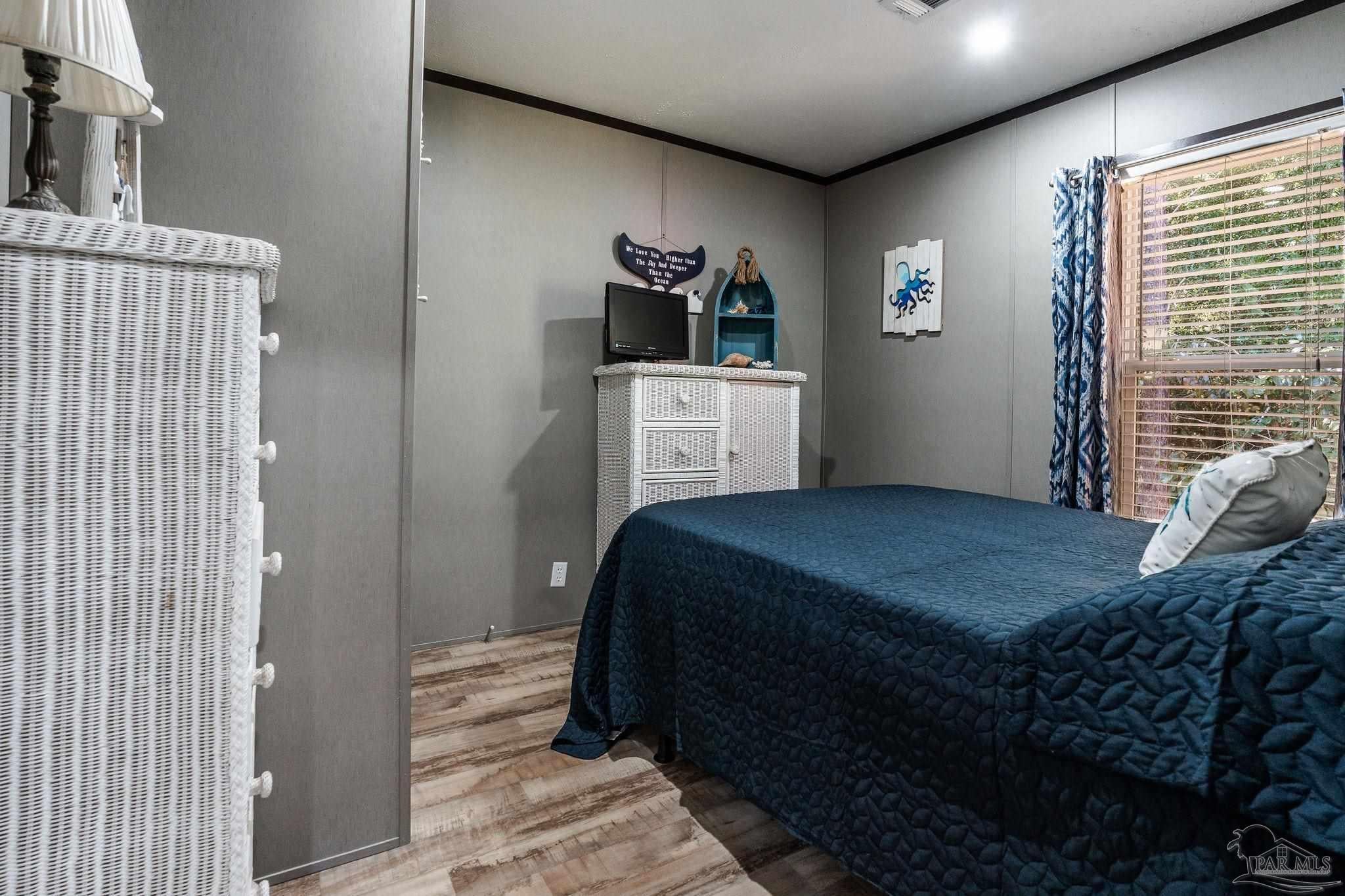 Barely lived in and like new, this charming home offers comfort, privacy, and a nature. A welcoming front porch invites you inside, where you'll find a beautifully maintained interior featuring stunning floors and gorgeous kitchen cabinets in excellent condition. The spacious primary bedroom includes two separate closets and a spacious primary bath. The second bedroom and bathroom are also in pristine condition, offering comfort and convenience for guests or family. Step out the back door to enjoy a peaceful outdoor living area surrounded by woods, providing plenty of privacy. The large, fully fenced backyard includes a utility shed that could easily be converted into an additional living space, workshop, or storage for outdoor toys. Located near the scenic Blackwater River State Park, this home is perfect for weekend getaways, nature lovers, or anyone looking to downsize and enjoy a simpler lifestyle.