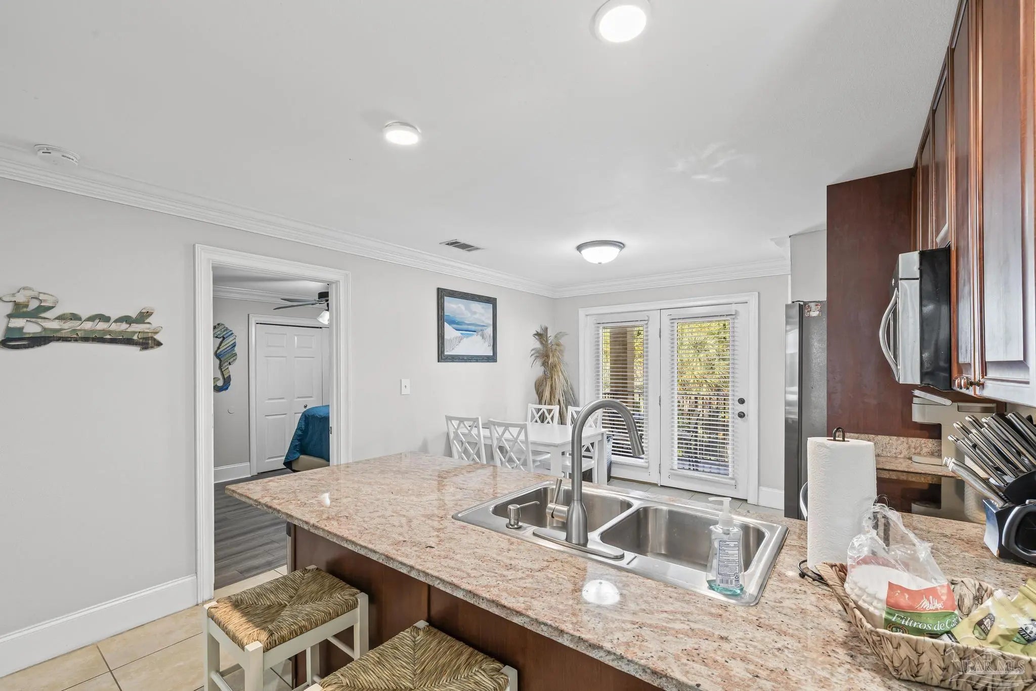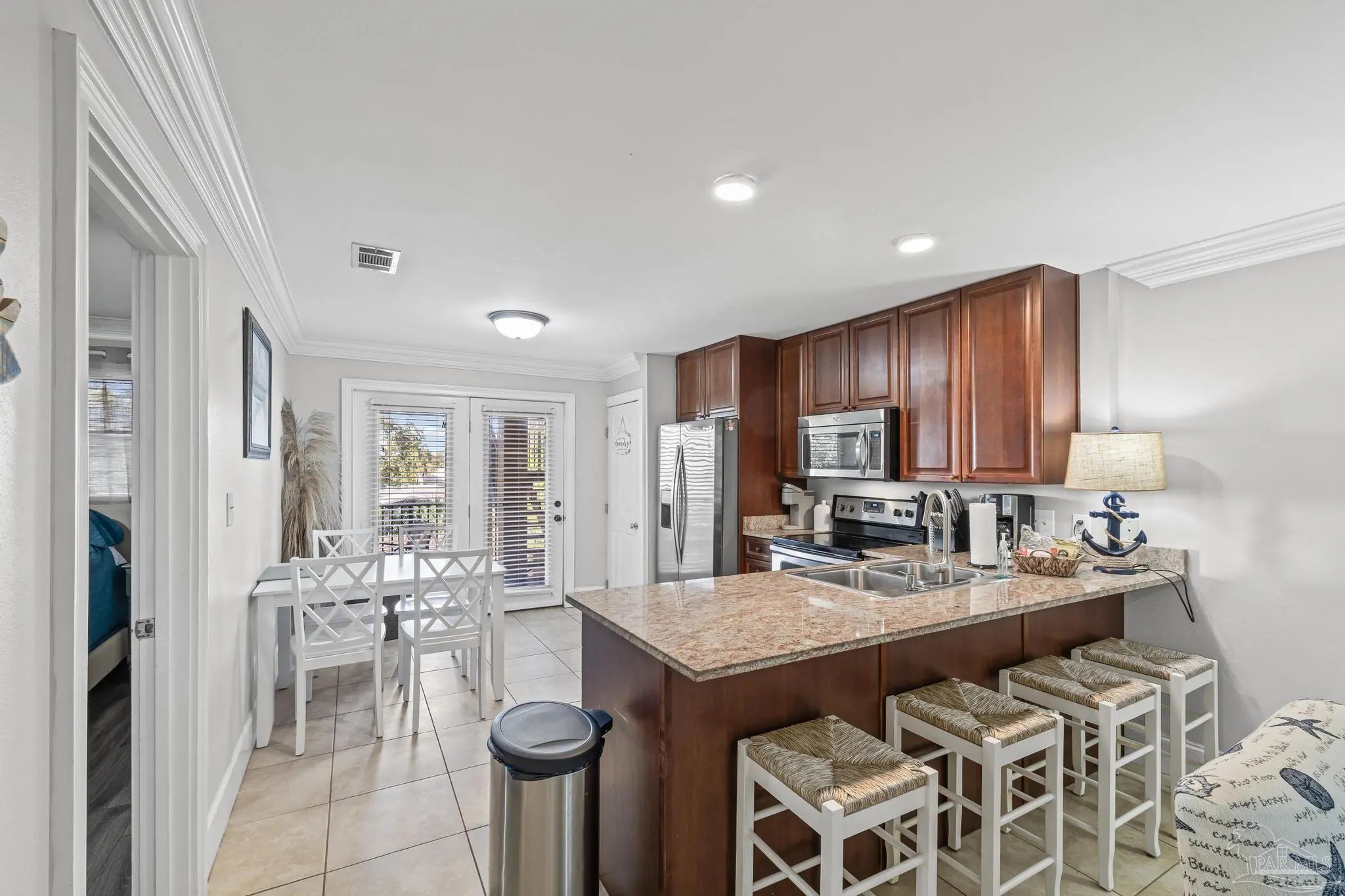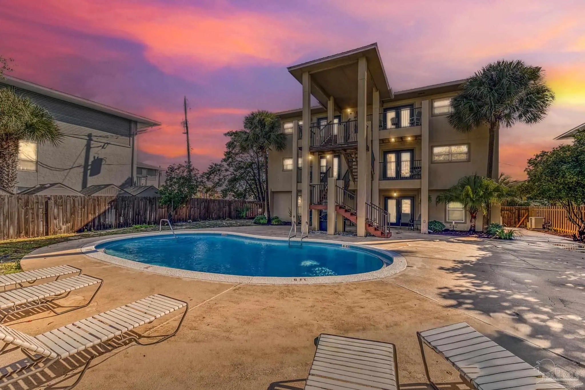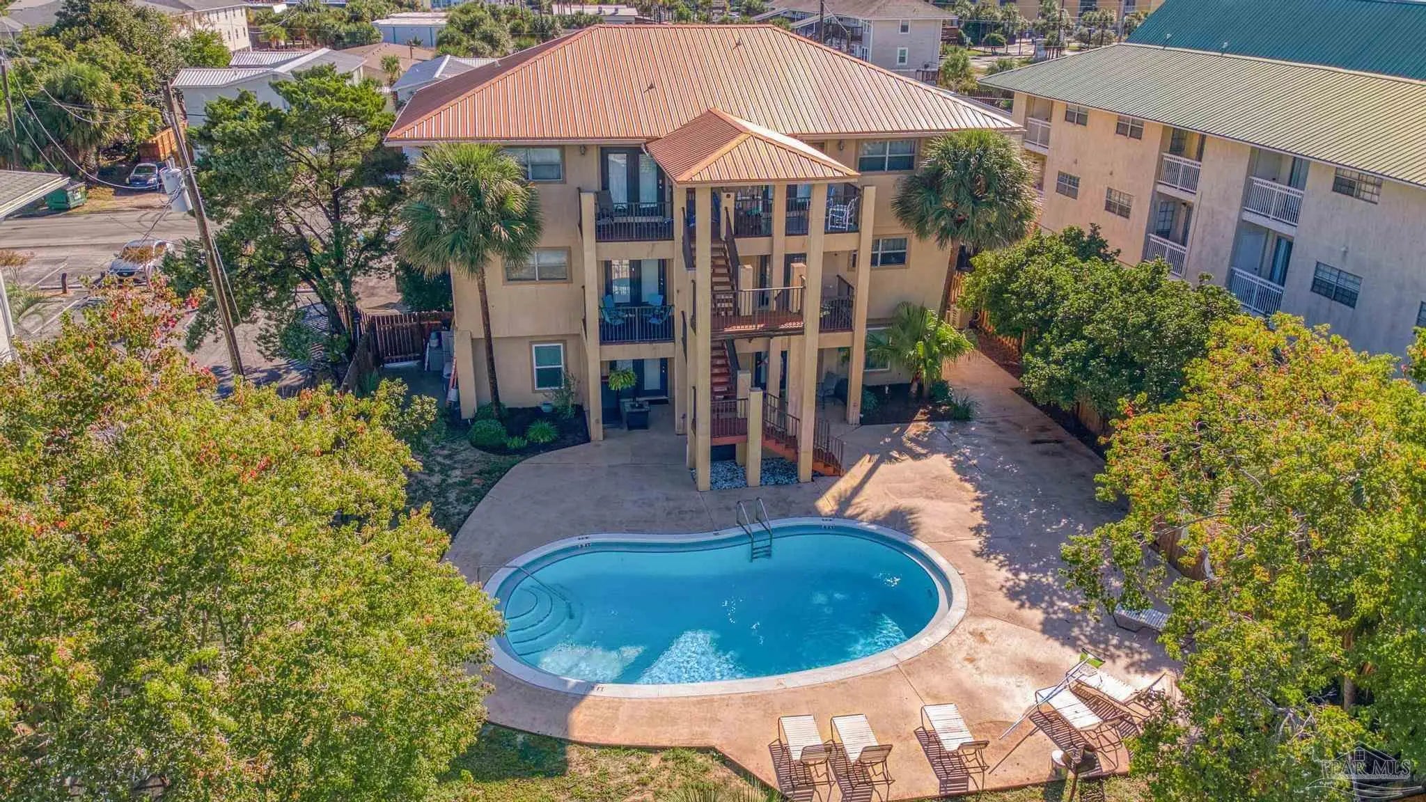 Experience coastal living at its best with this beautifully furnished condo offering amazing views. Located on the second floor of a three-story building, this 2-bedroom, 1.5-bath unit provides 875 square feet of comfortable living space. The open-concept layout features a bright living area, a well-appointed kitchen with a breakfast bar, and an inviting eat-in dining space. Enjoy relaxing outdoors on the covered decks at both the front and back of the condo. The community offers great amenities including a sparkling pool, fenced yard, and BBQ area—perfect for entertaining or unwinding after a day at the beach. Just a short walk to the stunning white sand beaches, this condo is ideal for a vacation retreat, rental investment, or full-time residence.