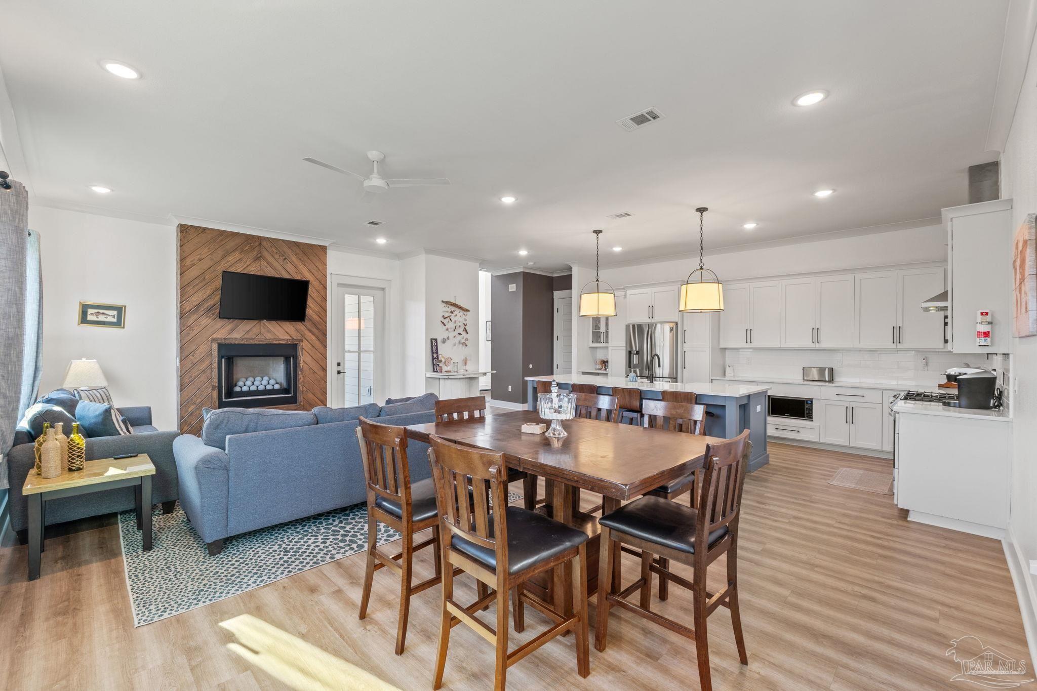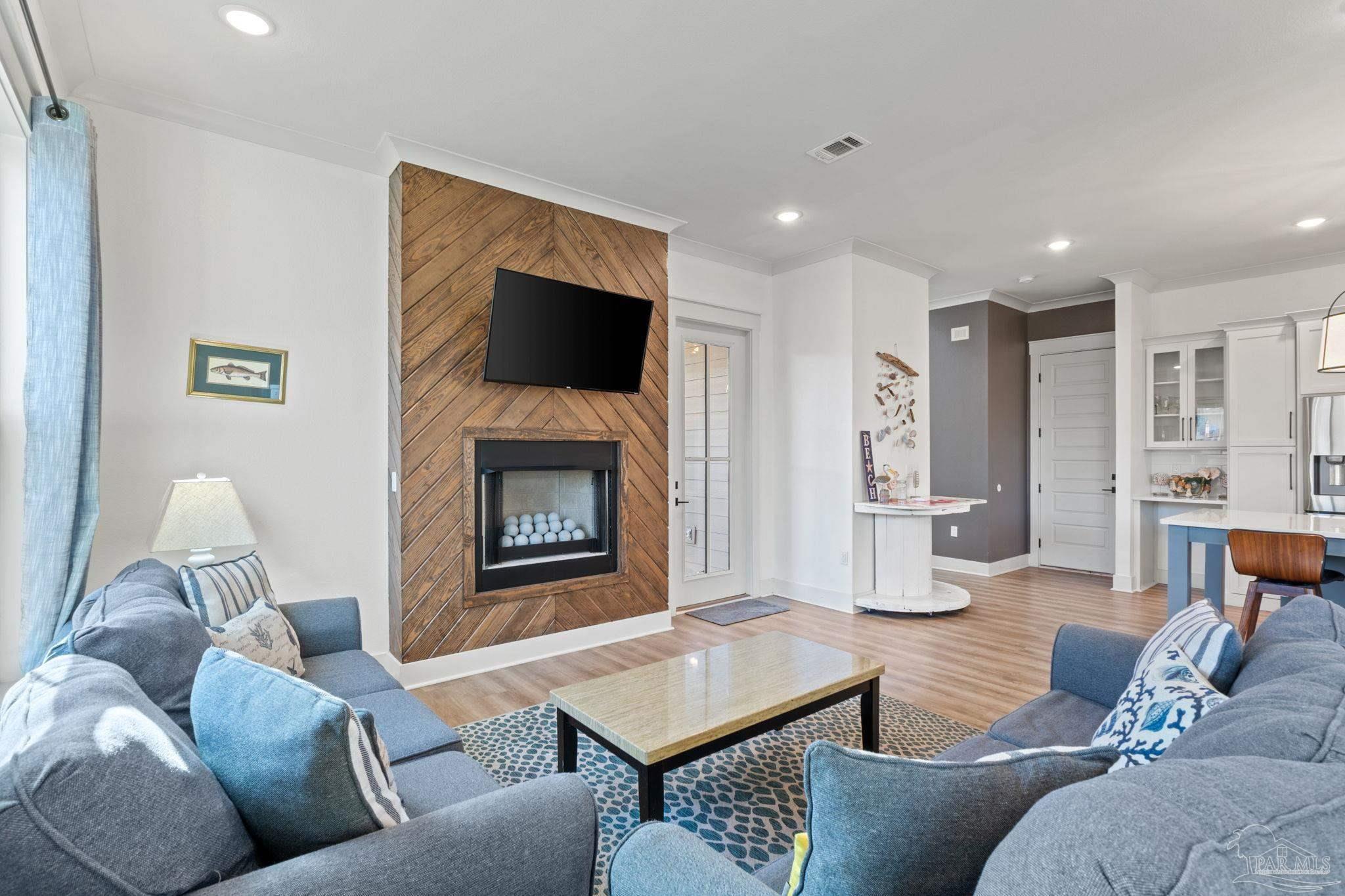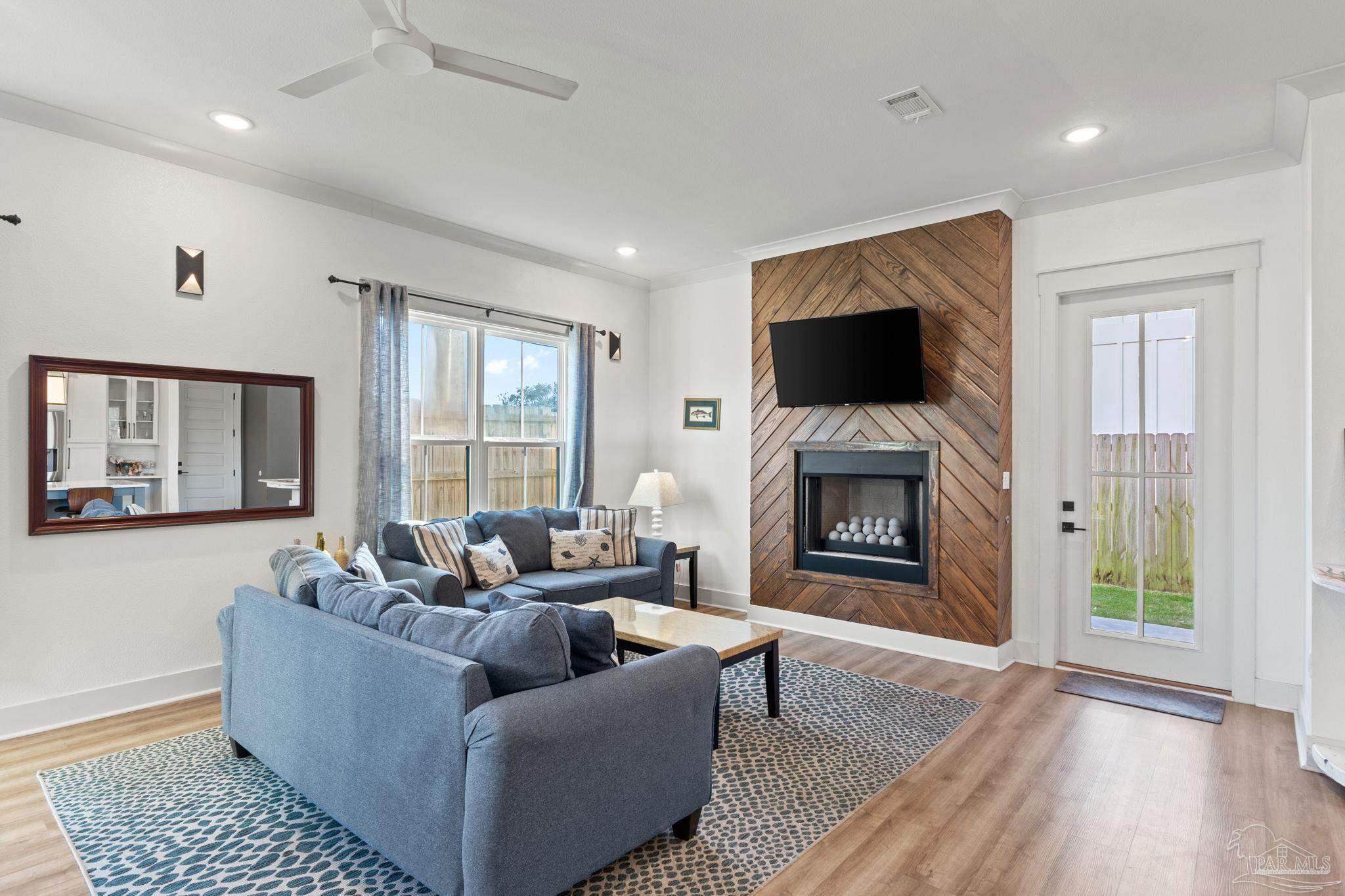 Modern Coastal Living in Redfish Harbor in Perdido Key! Built in 2022, this stunning 3-bedroom, 2.5-bath home offers 2,128 sq ft of beautifully designed space that perfectly blends coastal charm with contemporary style. Currently operating as a vacation rental, this home is being sold fully furnished and ready to go and is a true turnkey opportunity for investors or buyers seeking a seamless second home. Step through the beautiful front door into a bright, open living area filled with natural light and elevated finishes. High ceilings, airy design, and a sleek wood fireplace create a warm, welcoming focal point. The chef’s kitchen is the heart of the home, featuring white shaker cabinets, quartz countertops, a large island, and premium stainless-steel appliances. Upstairs, the spacious primary suite impresses with a unique architectural ceiling and a spa-style bath complete with a soaking tub, separate shower, and double vanity. Outside, enjoy a covered patio with a ceiling fan and recently updated landscaping with lush grass and fresh plantings that enhance the home’s curb appeal. Located just one block from the community’s resort-style pool, outdoor lounge, and pickle ball courts, Redfish Harbor residents also enjoy access to a waterfront dock and optional boat slips with direct bayou access. Minutes from Perdido Key Beach, NAS Pensacola, and Gulf Coast parks, this home offers luxury, convenience, and timeless coastal style, ideal as a primary residence, vacation getaway, or investment property. Schedule your showing today!