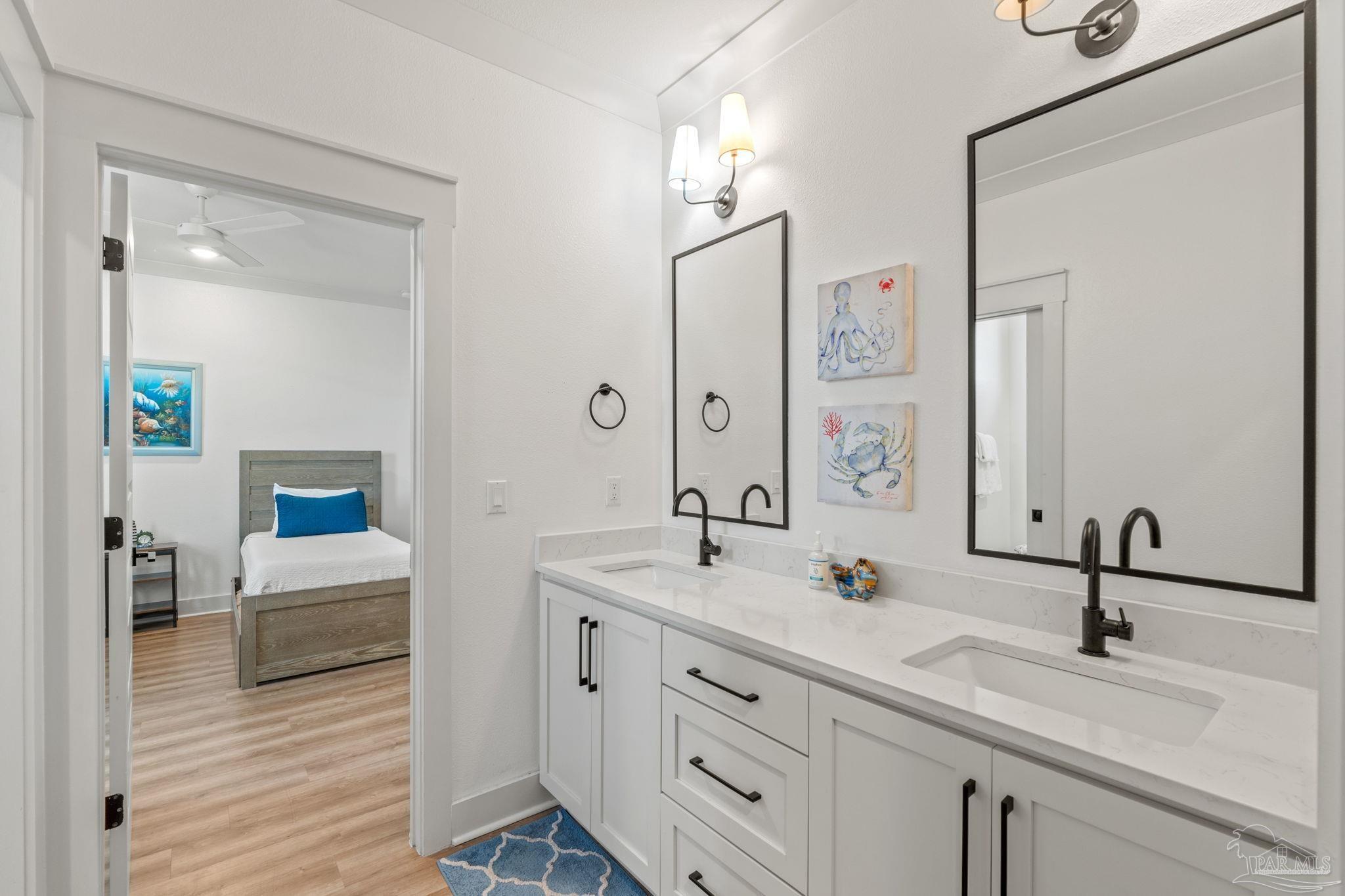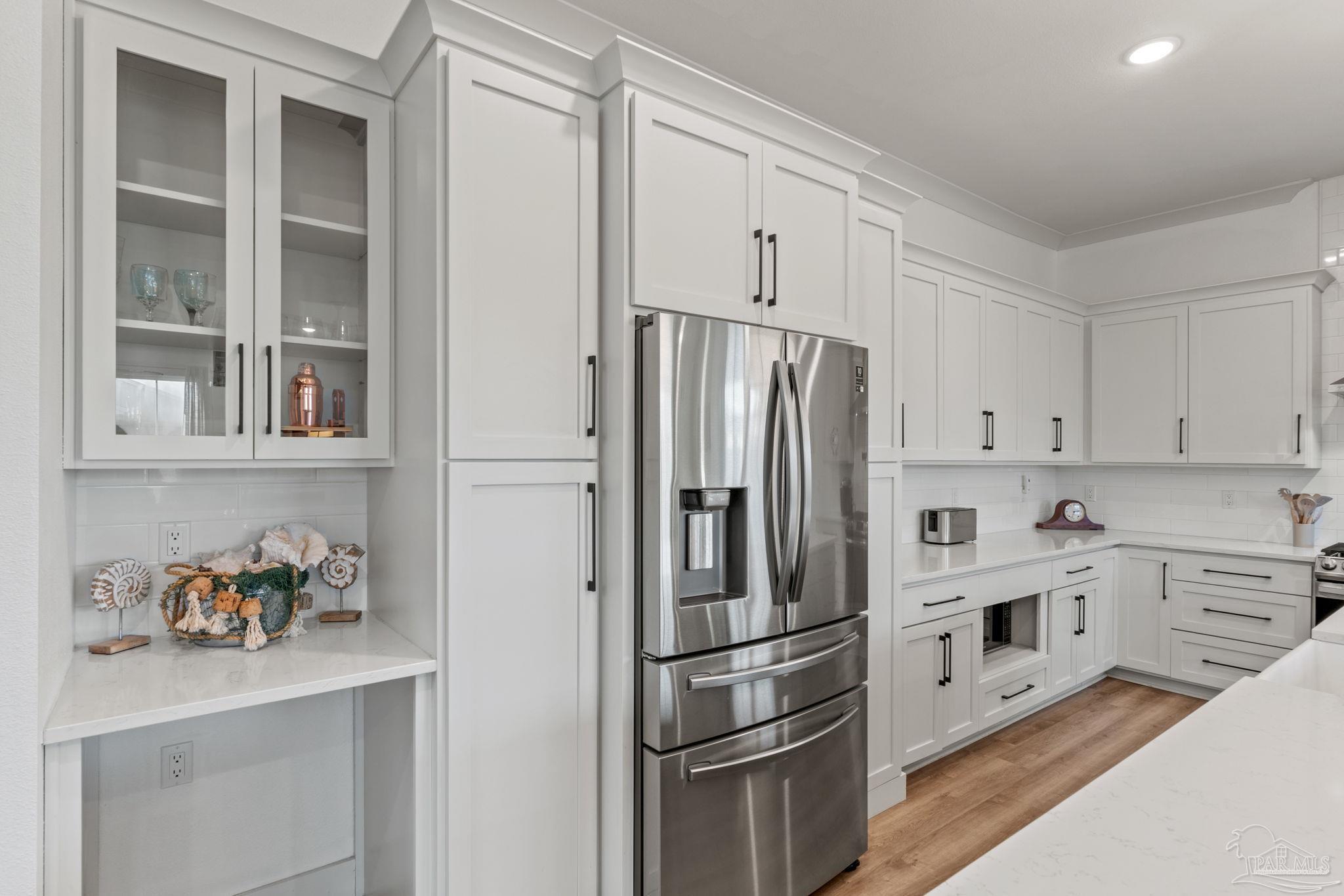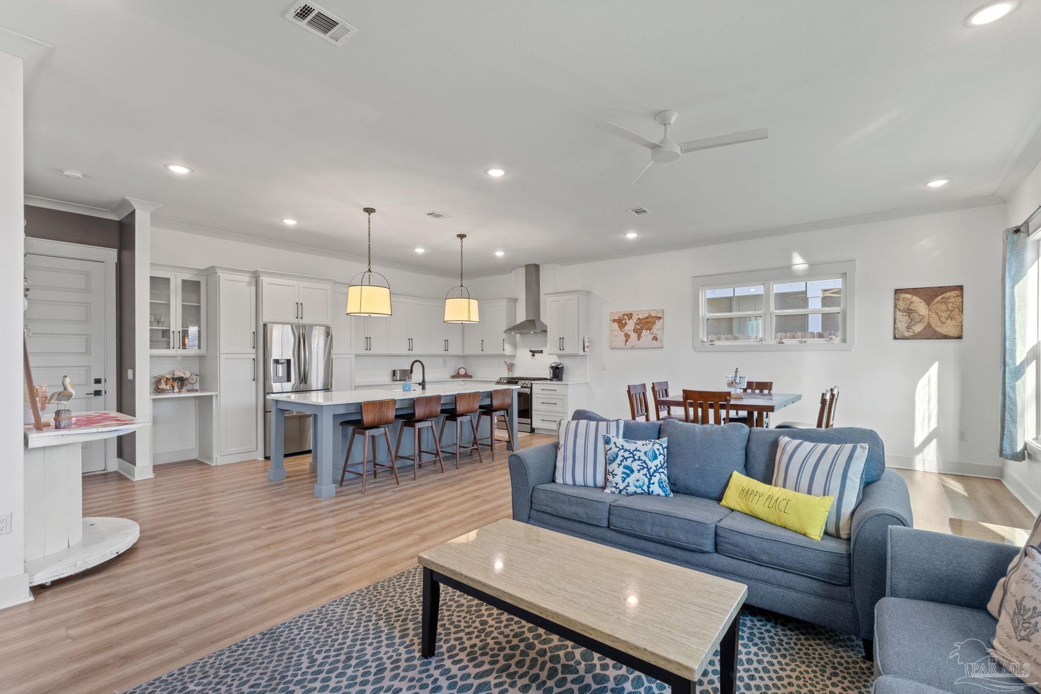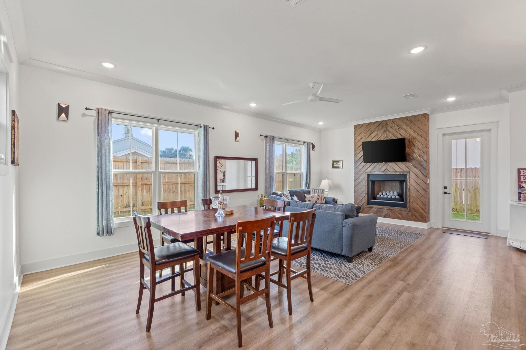 Modern Coastal Living in Redfish Harbor in Perdido Key! Built in 2022, this stunning 3-bedroom, 2.5-bath home offers 2,128 sq ft of beautifully designed space that perfectly blends coastal charm with contemporary style. Currently operating as a vacation rental, this home is being sold fully furnished and ready to go and is a true turnkey opportunity for investors or buyers seeking a seamless second home. Step through the beautiful front door into a bright, open living area filled with natural light and elevated finishes. High ceilings, airy design, and a sleek wood fireplace create a warm, welcoming focal point. The chef’s kitchen is the heart of the home, featuring white shaker cabinets, quartz countertops, a large island, and premium stainless-steel appliances. Upstairs, the spacious primary suite impresses with a unique architectural ceiling and a spa-style bath complete with a soaking tub, separate shower, and double vanity. Outside, enjoy a covered patio with a ceiling fan and recently updated landscaping with lush grass and fresh plantings that enhance the home’s curb appeal. Located just one block from the community’s resort-style pool, outdoor lounge, and pickle ball courts, Redfish Harbor residents also enjoy access to a waterfront dock and optional boat slips with direct bayou access. Minutes from Perdido Key Beach, NAS Pensacola, and Gulf Coast parks, this home offers luxury, convenience, and timeless coastal style, ideal as a primary residence, vacation getaway, or investment property. Schedule your showing today!