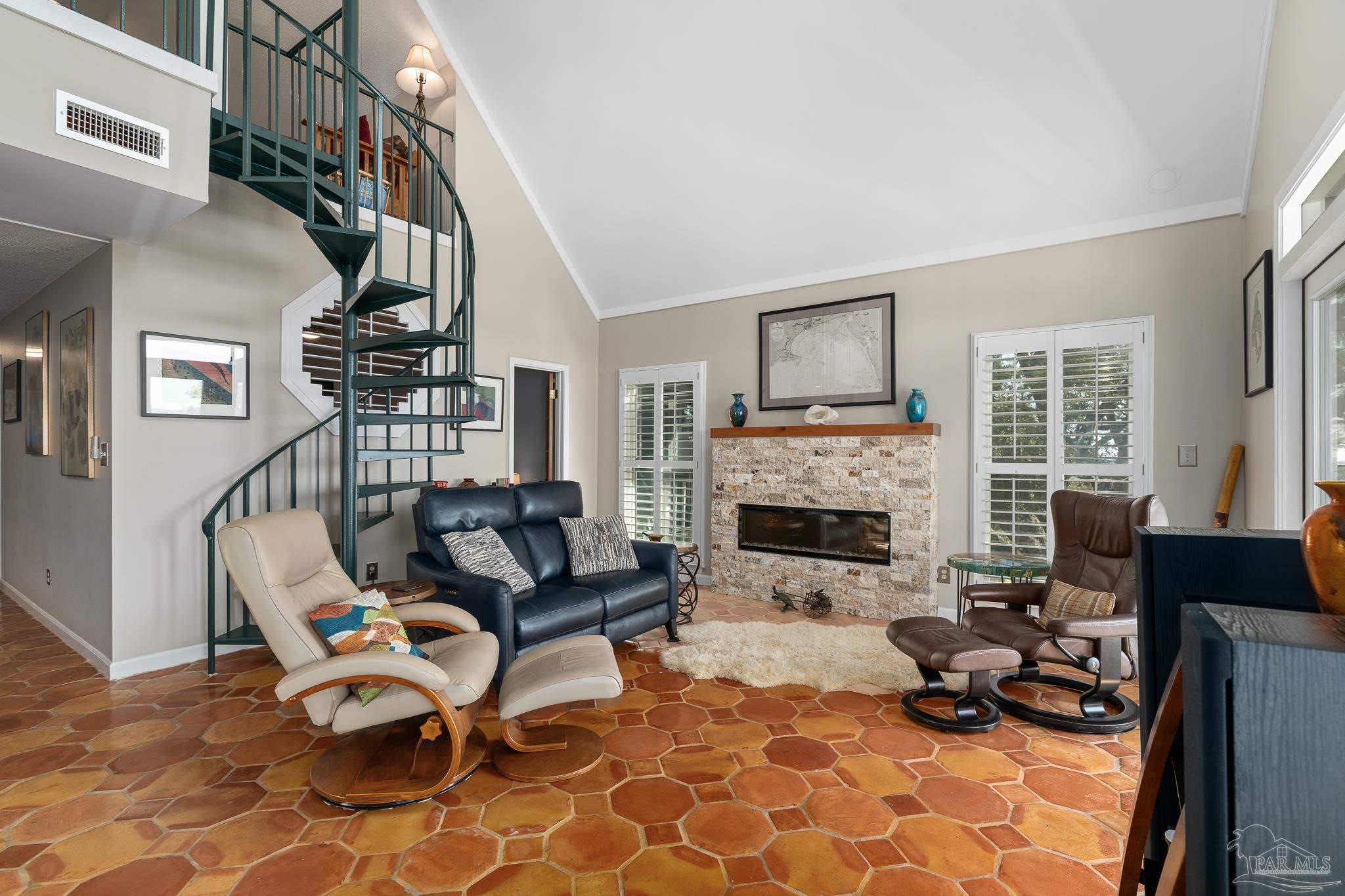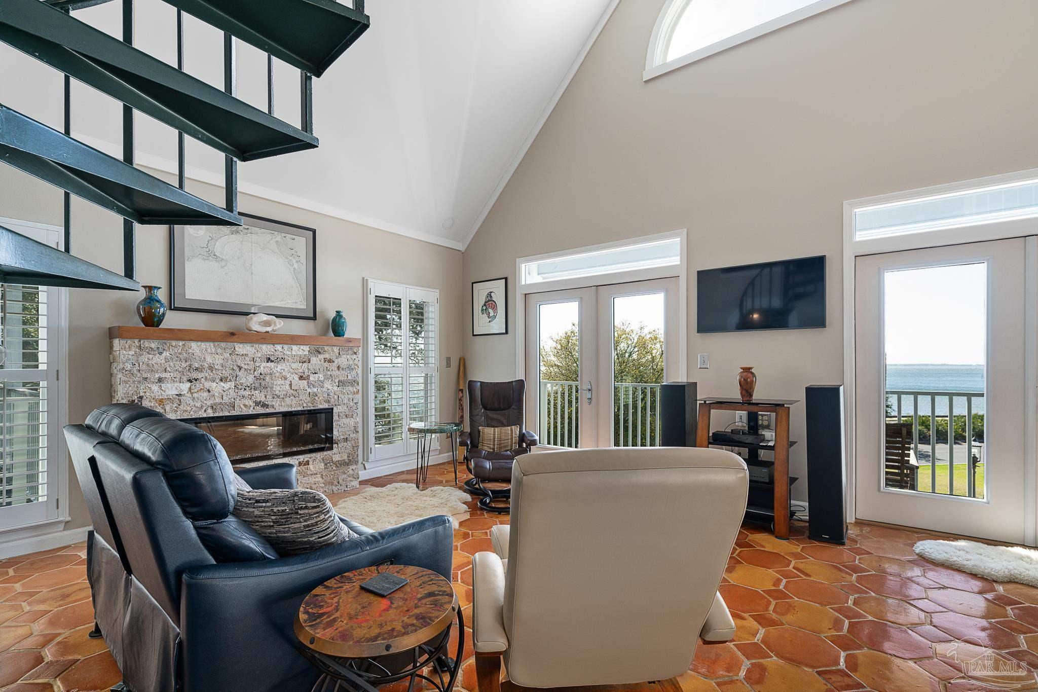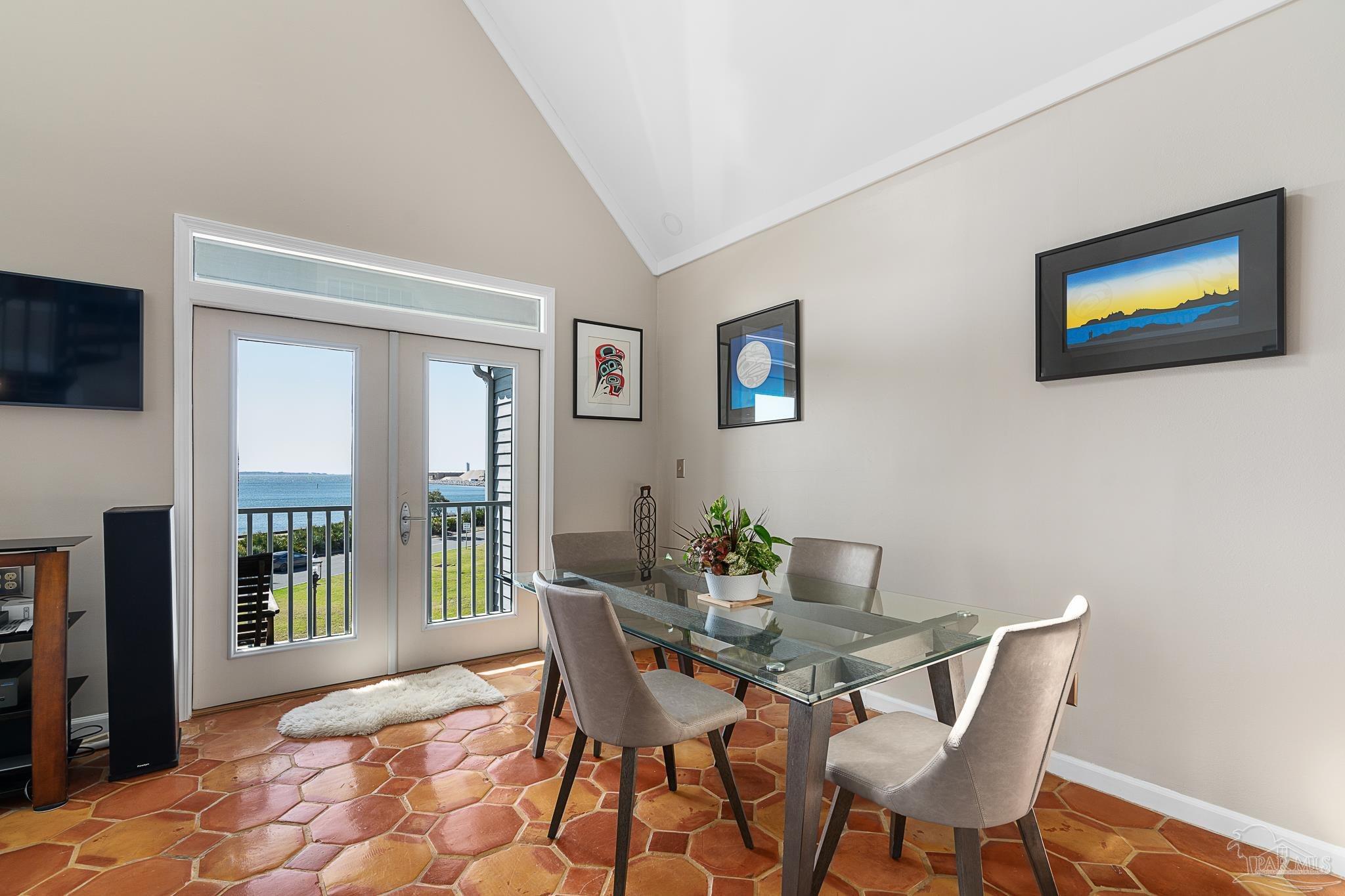 Enjoy the ultimate waterfront lifestyle in this stunning Pensacola Bay condo, offering unmatched views of Pensacola Bay and a front-row seat to watch the American Magic sailing team in action. Perfectly located just steps from Seville Square and downtown Pensacola, this home allows you to walk to work, dine at top restaurants, and enjoy the best of city life—all while living on the water. This beautifully designed condo features an open floor plan with warm Mexican tile floors, elegant wood cabinetry, and a kitchen equipped with stainless steel appliances, a double oven, and a cocktail bar—ideal for entertaining. The spacious balcony offers breathtaking, water views. A charming spiral staircase leads to a versatile loft space, perfect for a home office, guest quarters, or media room, plus a bonus room that could serve as a yoga studio, home gym, or creative space. Every detail of this condo has been thoughtfully updated with luxury in mind. Recent upgrades include a new HVAC system (2020, WiFi enabled), new water heater (2021, WiFi enabled), new attic room addition (2021), a fully renovated master bathroom and closet (2021), and a new super-quiet dishwasher (2021). Additional updates include a new washer and dryer (2024), a Frame TV (2021, will stay), an electric fireplace with mantle (2021), and stylish new lighting throughout the great room, kitchen, and bathrooms (2021, WiFi enabled). Situated in an exclusive 8-unit complex, this condo offers 2 secure parking spaces, a dumbwaiter for added convenience, and recent exterior renovations, including hurricane-proof windows and balcony doors (2017 & 2021) and new exterior stairs and rails (2024). With its unbeatable location, high-end upgrades, and spectacular waterfront views, this condo is a rare find in downtown Pensacola. Don't miss your chance to own the lifestyle—schedule your private tour today! Buyer to verify all measurements and information.