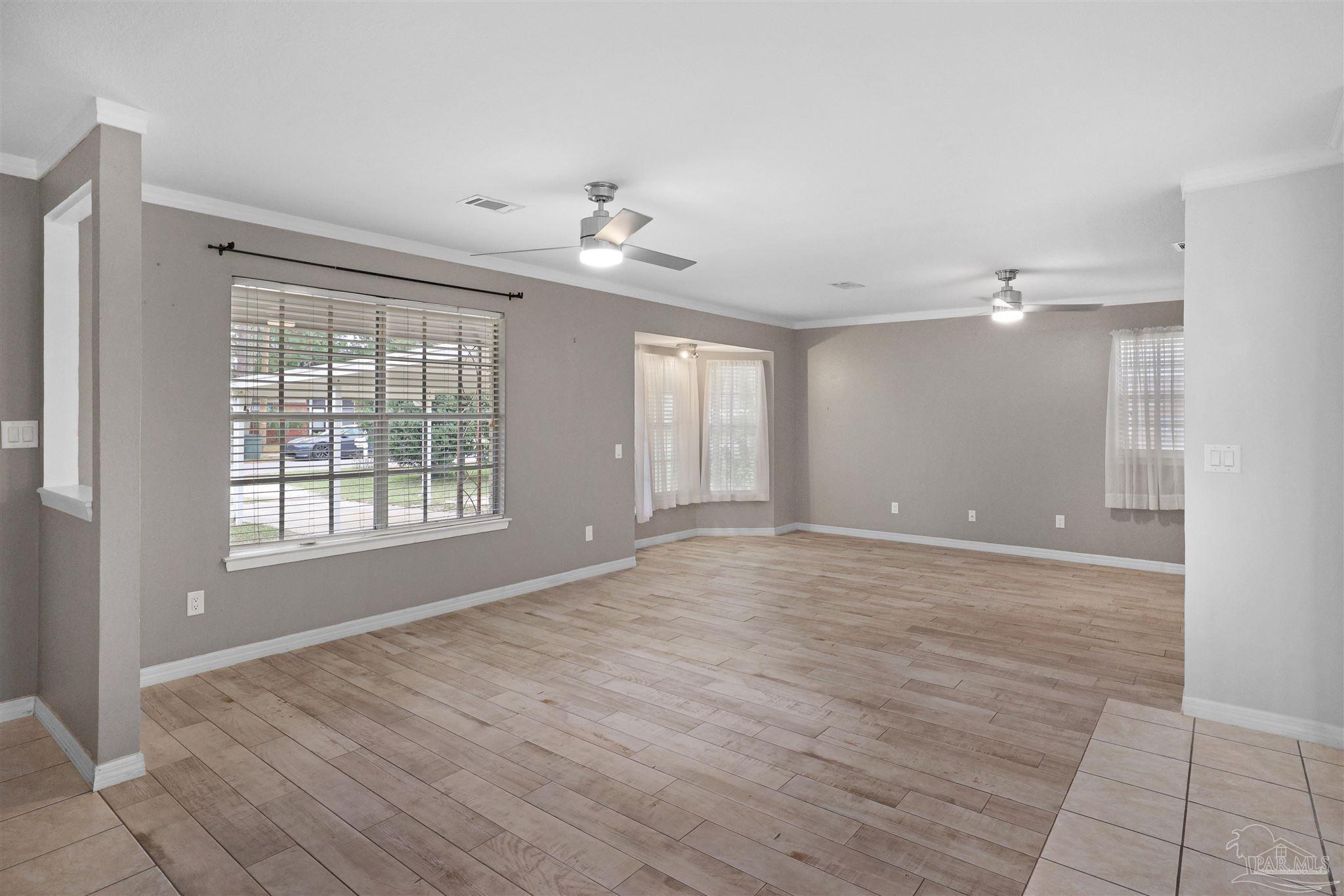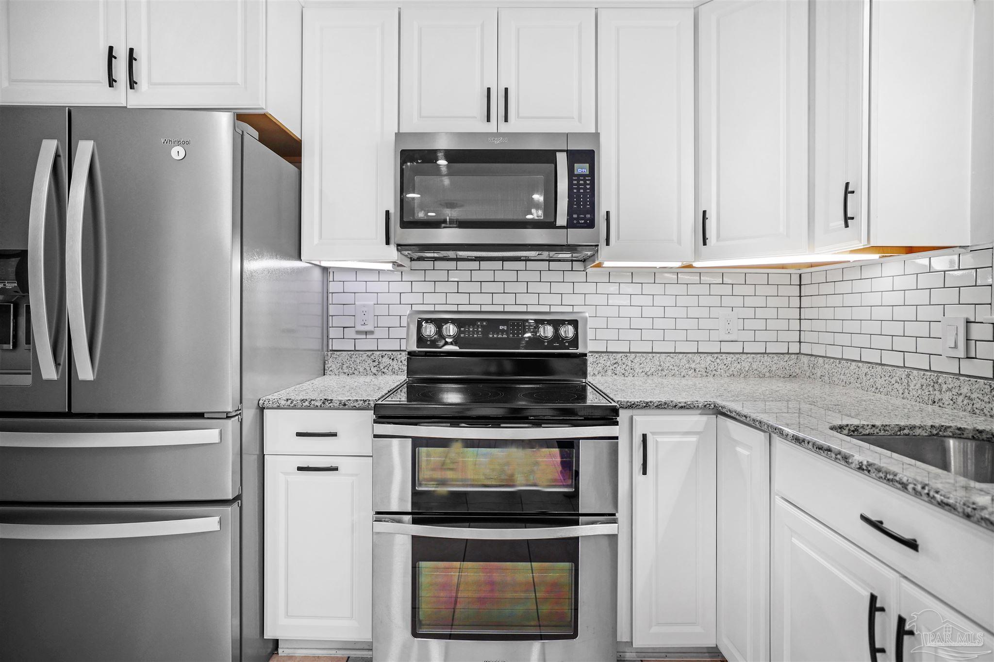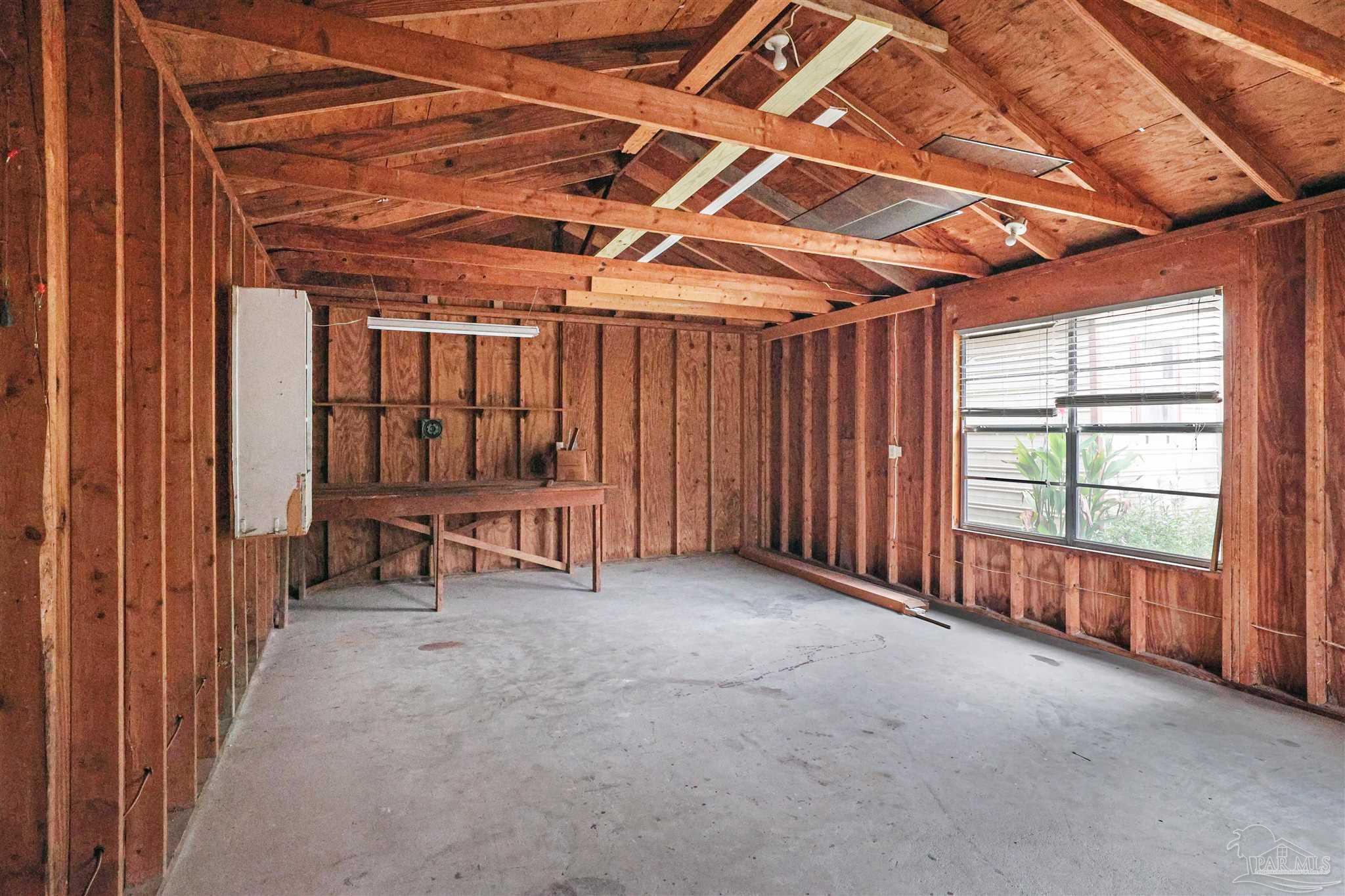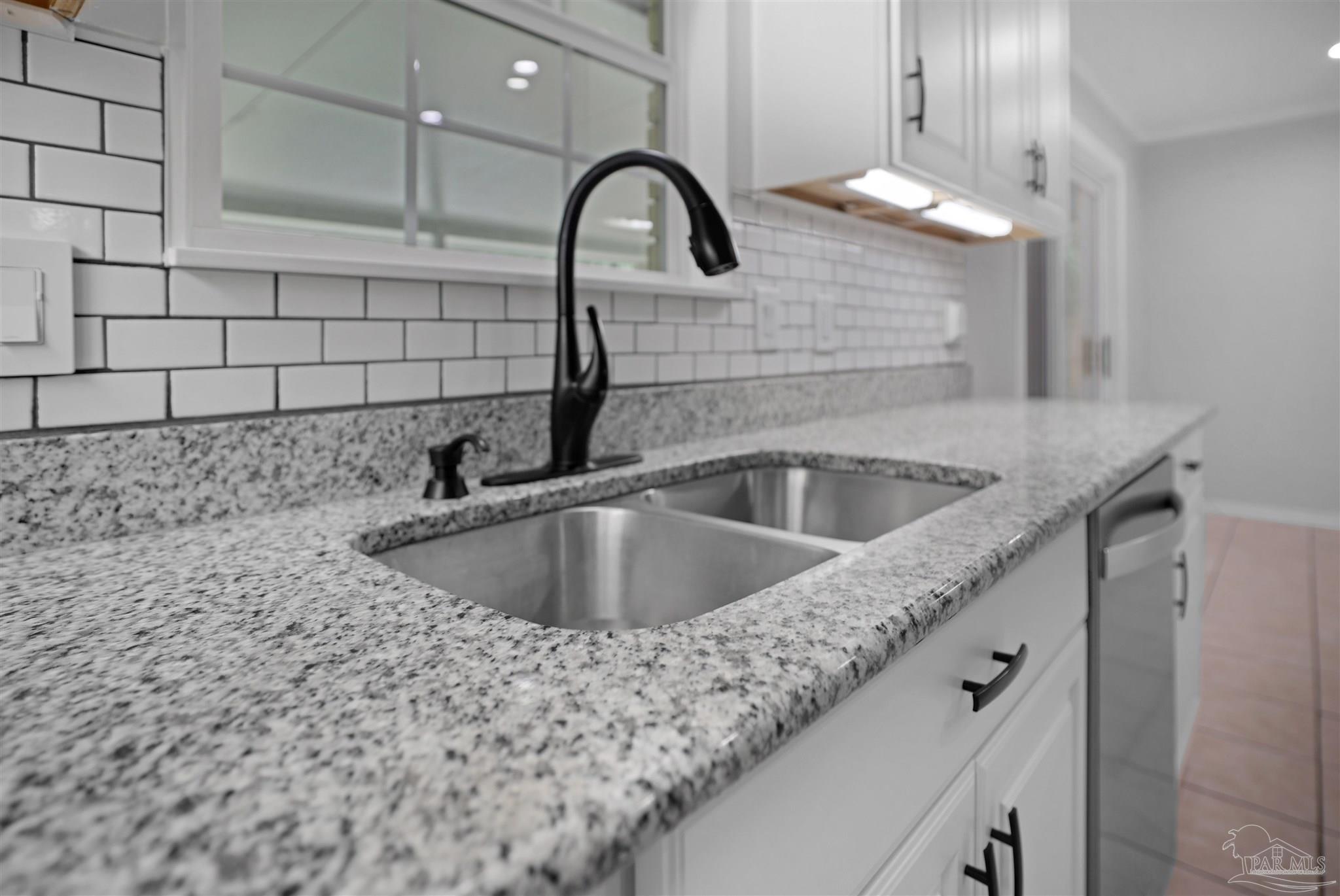 Welcome to this beautifully maintained brick home in the heart of Pensacola, offering the perfect balance of comfort, function, and character. Step inside to a bright open-concept layout featuring a fully remodeled kitchen with stainless steel appliances, granite countertops, subway tile backsplash, and crisp white cabinetry. The spacious living and dining areas flow seamlessly together, making entertaining effortless. This home features three comfortable bedrooms and two full baths, each filled with natural light. The primary suite and guest rooms offer classic parquet wood flooring and updated ceiling fans for added comfort. Out back, you’ll love the private retreat—complete with mature tropical landscaping, a covered patio for outdoor dining, and not one but two detached buildings. The larger workshop with power and windows makes an ideal studio, hobby space, or extra storage, while the second shed provides even more utility. Additional highlights include a newer roof, updated lighting, neutral color palette, and a convenient location just minutes from local schools, shopping, and downtown Pensacola. Whether you’re looking for a first home, investment, or downsizing opportunity, 1814 Toni Street delivers timeless charm, modern updates, and versatile space inside and out.