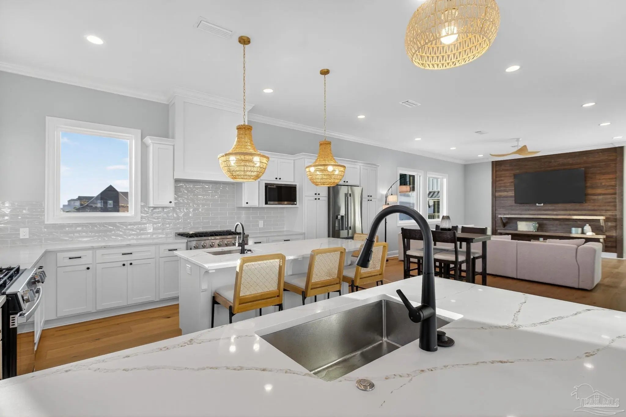$210K+ Rental Projections |10% ROI | No HOA-Brand New Gold Fortified Waterfront Home Introducing a Private Gulf Front Luxury Beach House offering over 85 feet of direct waterfront on picturesque Little Lagoon — and stunning Gulf views right across the street from the white sands of Gulf Shores. This new construction, Gold Fortified 6-bedroom, 5.5-bath coastal masterpiece delivers the perfect blend of high-end design, safety, and income potential, with projected annual rentals exceeding $210,000 and no HOA restrictions.Built20 feet above sea level, this property was engineered for longevity — featuring a Gold Fortified roof, hurricane-impact windows, and a solid elevated foundation for unmatched peace of mind. Step outside to your private dock overlooking Little Lagoon — ideal for fishing, kayaking, paddleboarding, or simply soaking in the sunsets. Inside, an open-concept layout and wall-to-wall windows flood the home with natural light and showcase spectacular water views from nearly every room. The chef’s kitchen is fully equipped with dual cooking ranges, stainless steel appliances, and quartz countertops, designed for both style and function. The home includes two tankless water heaters, dual HVAC systems, and a laundry suite with dual dryer hookups and utility sink for maximum efficiency. Every detail was curated for comfort and luxury — from the furnished coastal interiors to the outdoor shower and spacious waterfront decks perfect forentertaining.Highlights:85+ feet of Little Lagoon frontage with private dock6 Bedrooms | 5.5 Bathrooms | Fully Furnished Gold Fortified Construction for lower insurance premiums Over $210,000 in annual rental projections Built 20’ above sea level with hurricane-rated windows & roof No HOA | Gulf Views & Direct Beach Access Dual tankless water heaters & dual HVAC units Two laundry dryer hookups +sink Prime location close to Gulf Shores entertainment, dining & shopping Buyer to Verify all Information During Due Diligence.