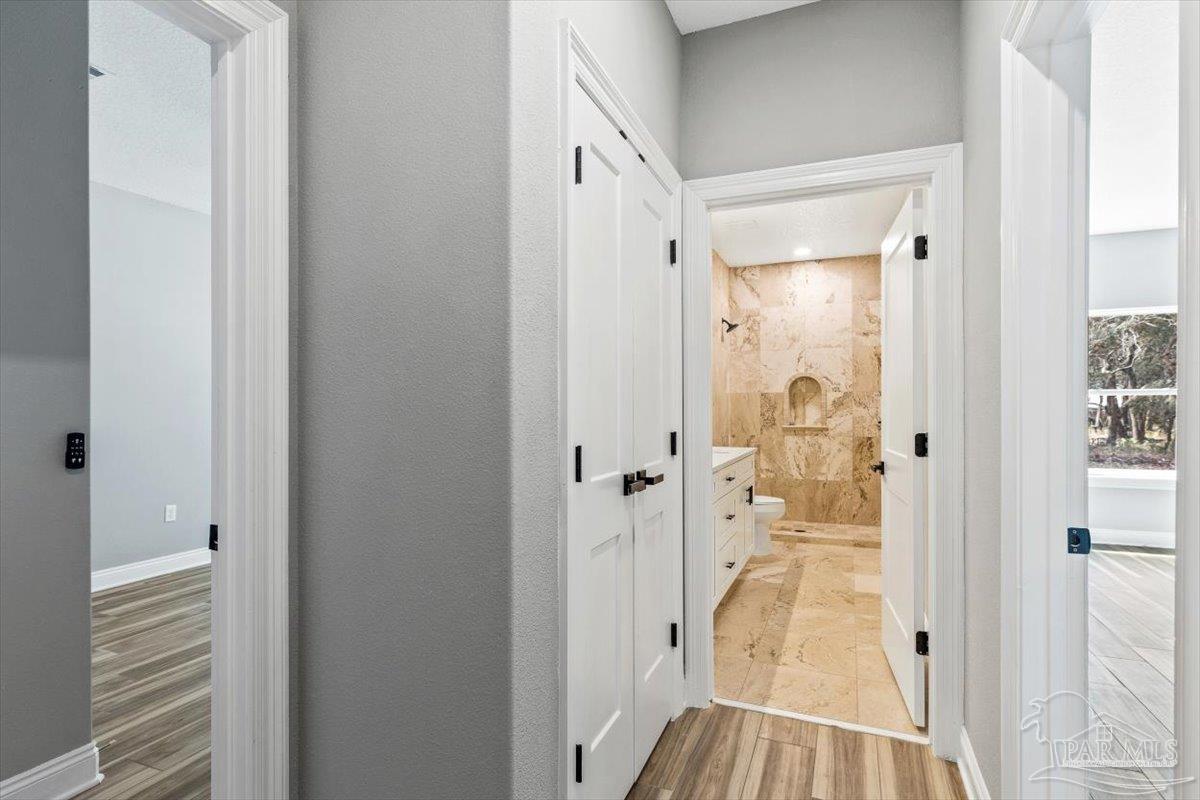 Impressive To-Be-Built 4,493 Sq-Ft Home with Guest Suite and Bay Views! This stunning to-be-built custom home offers 4 bedrooms, 5 baths, a separate guest suite, and a 3-car garage on a spacious one-acre lot across from East Bay and the Holley by the Sea boat ramp. Designed with an open-concept layout, this home features soaring 9–20 ft ceilings, elegant porcelain tile flooring throughout, and 7-ft interior doors. The second-floor Guest Suite includes one bedroom, two baths, a huge bonus room with kitchenette, and a covered balcony with beautiful East Bay views — perfect for extended family or guests. On the main level, the expansive living room flows seamlessly into the dining area and breakfast bar island, with access to a covered porch ideal for outdoor entertaining. The gourmet kitchen boasts a large island, walk-in pantry, soft-close solid wood cabinetry with crown molding, quartz countertops, cooktop with custom hood, double ovens, microwave, dishwasher, and wine cooler. The luxurious master suite features dual walk-in closets and a spa-like bath with quartz double vanities and a large tiled walk-in shower with dual showerheads. Two additional guest bedrooms on the first floor share a full bath with quartz counters and a tiled tub. A separate pool bath with quartz vanity is conveniently located off the family room. Request Special Features list for many other custom features. Completion expected February–March 2026. The one-acre lot provides ample room for a future pool. This unique, well-planned design offers exceptional flexibility for growing or multi-generational families. Prime Location & Amenities: Convenient to schools, shopping, and the beaches of the Emerald Coast. Ownership includes membership to Holley by the Sea’s 45-acre recreational center, featuring 8 clay tennis courts, pickleball, 3 swimming pools, a full gym, aerobics center, summer camp, lighted basketball courts, sauna, and & steam room. Coastal living at its best.