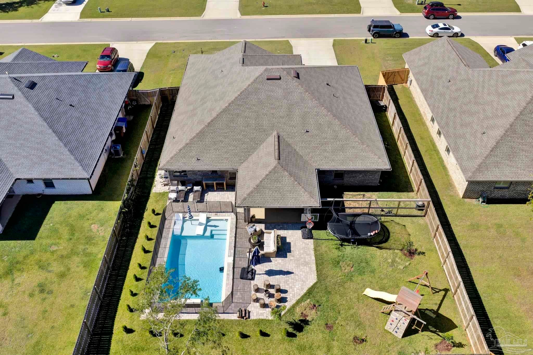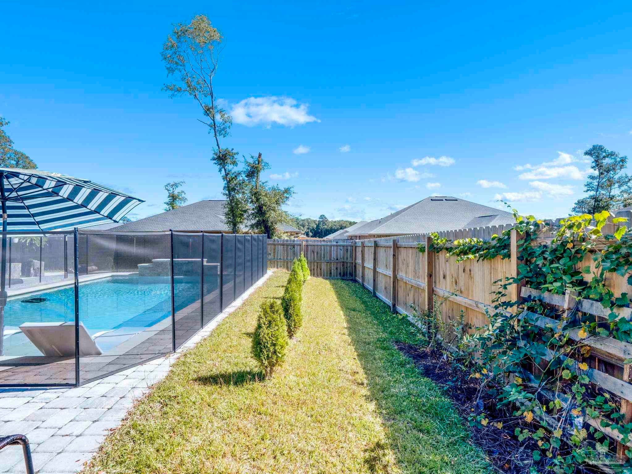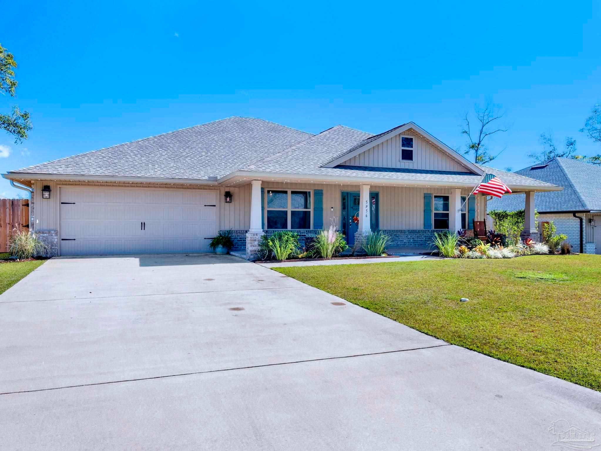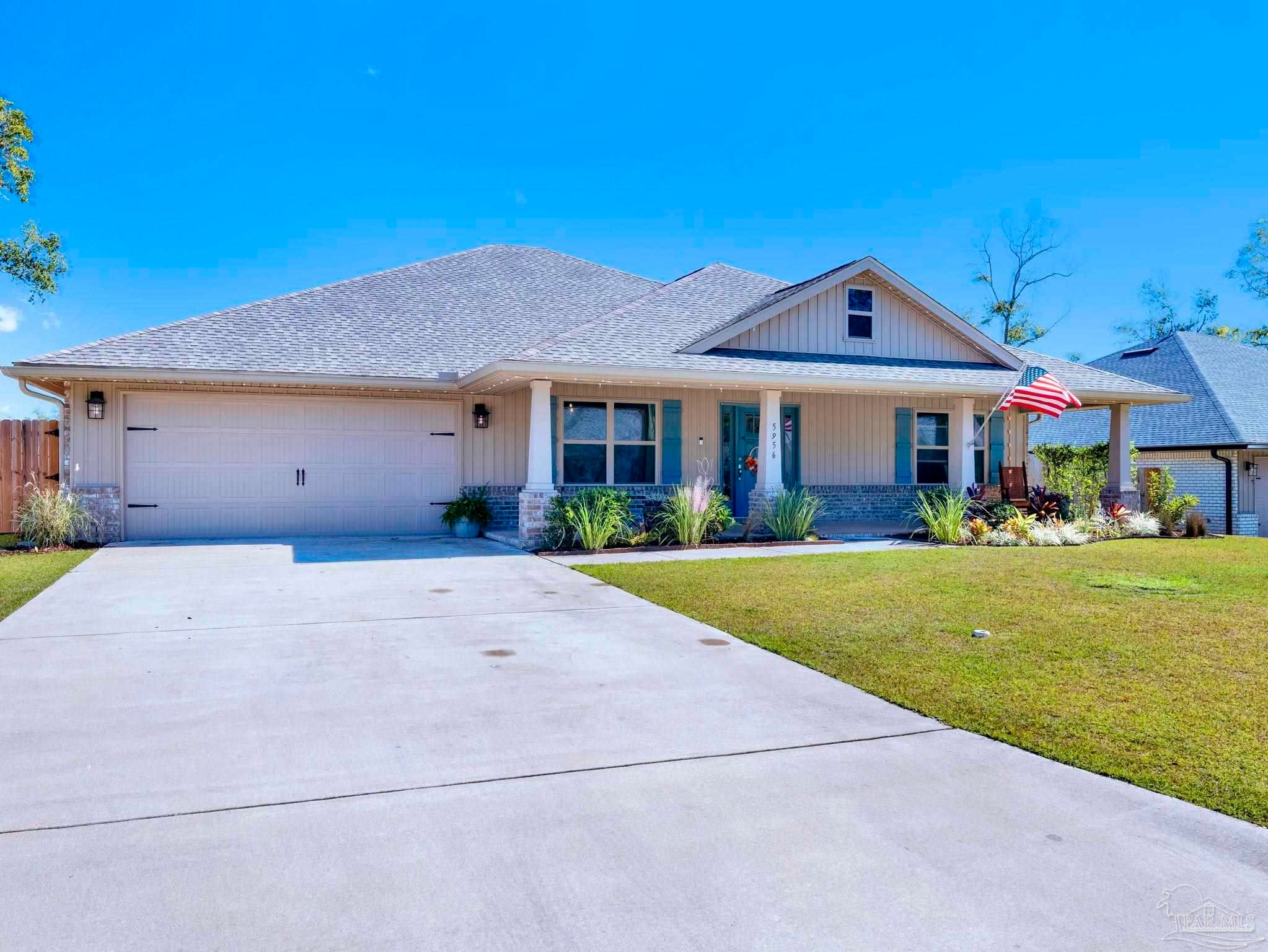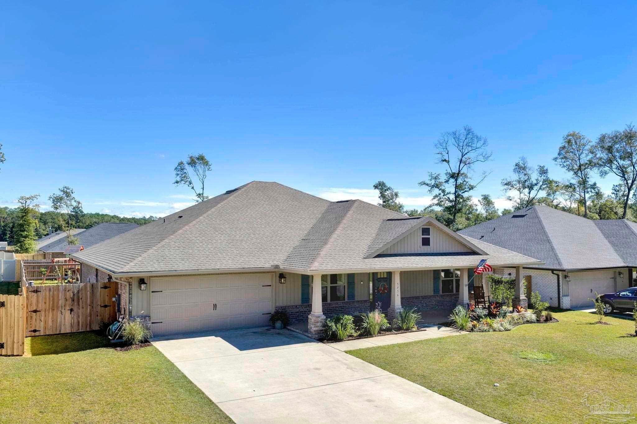 Welcome to your dream oasis, built in 2023, resort saltwater pool in 2025. This stunning five-bedroom, three-bathroom Craftsman style home offers 2,685 square feet of luxurious living space, perfectly blending comfort and elegance. Upon entering the foyer you’ll be drawn to the open concept living space and kitchen by a boldly colored accent wall that frames your outdoor view. Cathedral ceilings and soaring plant ledge create architectural interest for your unique design embellishments. Features include Cortex LVP throughout with carpet in bedrooms. The gourmet kitchen features white quartz countertops, large island, stainless steel appliances, custom shaker cabinets, abundant storage, including pantry. The master suite is a true retreat with trace ceilings, nook sitting area, walk-in closet, double vanities, garden tub, and a separate water closet. Outdoors, enjoy a resort-style saltwater pool with a peaceful waterfall, bubbler, tanning ledge, water loungers, and all the smart app features you want, including LED lighting. Relax in your backyard sanctuary enjoying the Tuscan inspired landscape, from a sweet naval orange, Gem Magnolia," natural wall” of Arborvitaes that will blend seamlessly to create privacy and enhance natural simplicity and function. Blue berry bushes and grape vines add to that rustic charm. Additional highlights include a Jack-and-Jill bedroom setup, generous laundry room, two-car garage with storage racks, custom dog-run, and charming craftsman-style details throughout. Washer/ dryer and refrigerator included, this home is ready for kids, adults, and everyone in between to enjoy! *Close to shopping, top rated schools, doctors, Whiting Field, beautiful parks, Blackwater River, and 30-minute drive to beach. Owner is a Lic. Real Estate Agent.