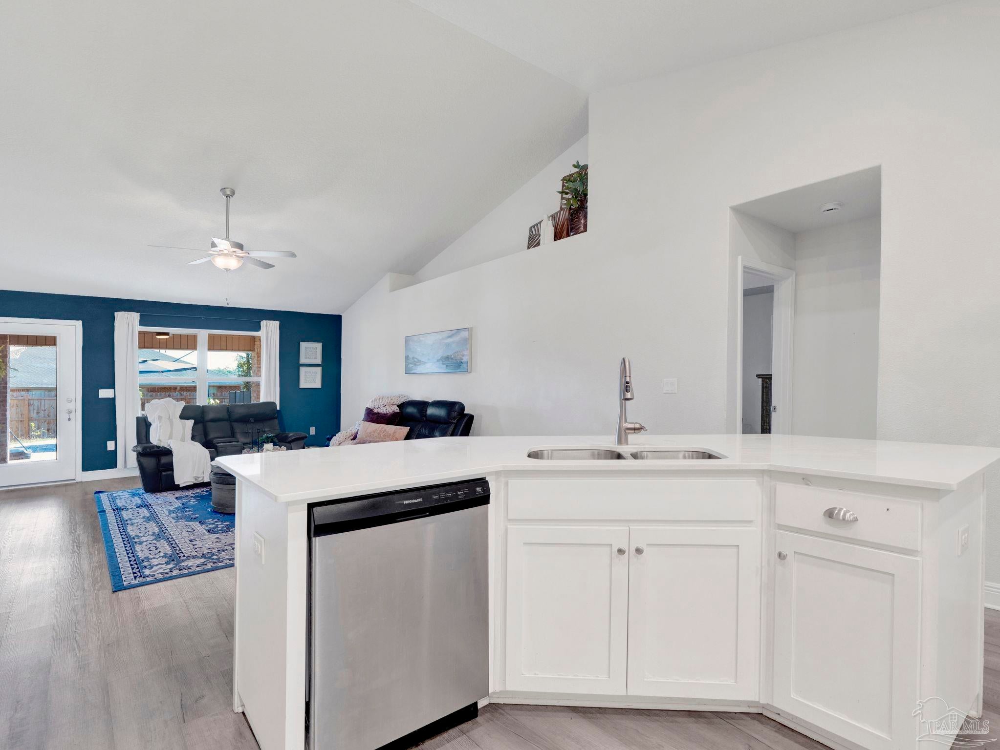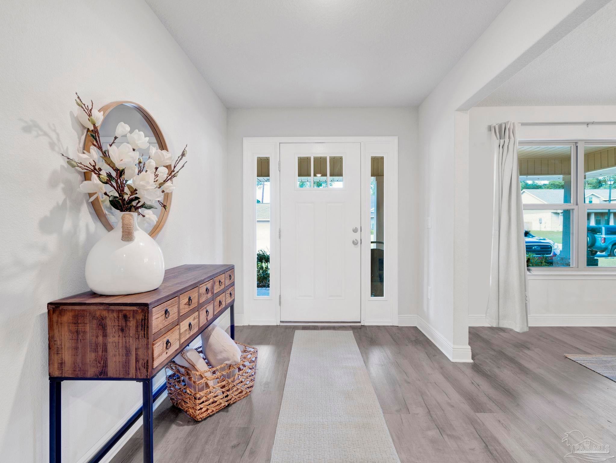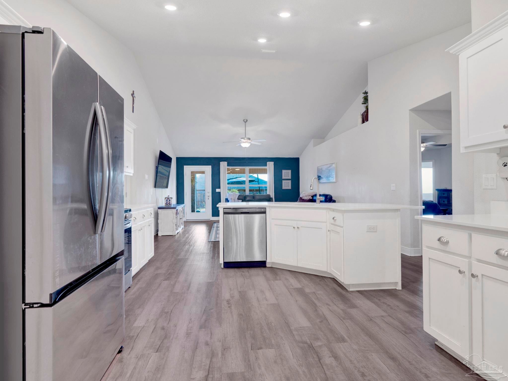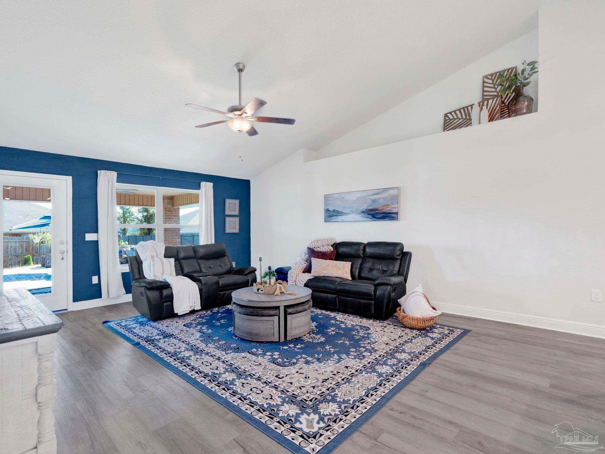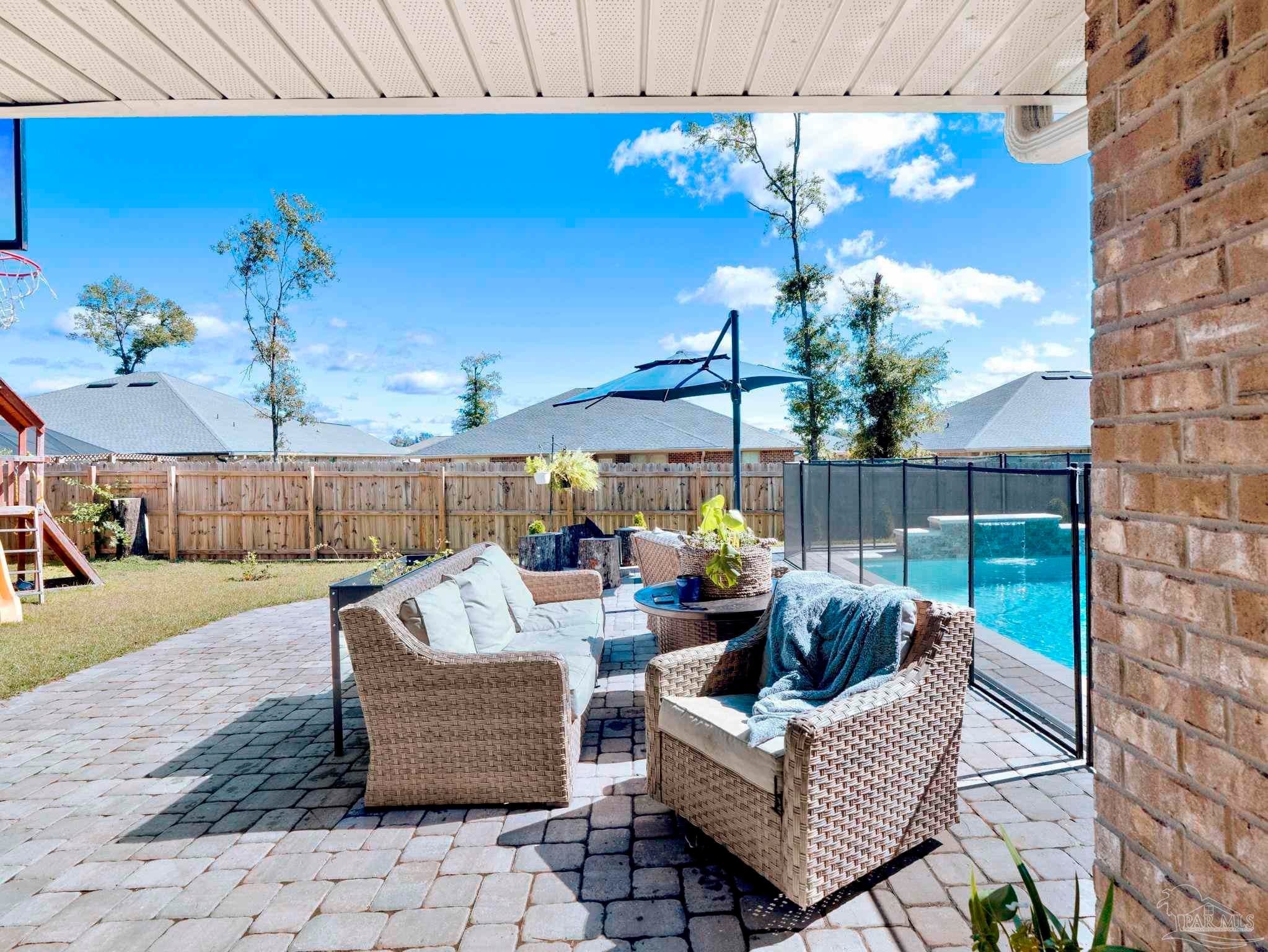 Welcome to your dream oasis, built in 2023, resort saltwater pool in 2025. This stunning five-bedroom, three-bathroom Craftsman style home offers 2,685 square feet of luxurious living space, perfectly blending comfort and elegance. Upon entering the foyer you’ll be drawn to the open concept living space and kitchen by a boldly colored accent wall that frames your outdoor view. Cathedral ceilings and soaring plant ledge create architectural interest for your unique design embellishments. Features include Cortex LVP throughout with carpet in bedrooms. The gourmet kitchen features white quartz countertops, large island, stainless steel appliances, custom shaker cabinets, abundant storage, including pantry. The master suite is a true retreat with trace ceilings, nook sitting area, walk-in closet, double vanities, garden tub, and a separate water closet. Outdoors, enjoy a resort-style saltwater pool with a peaceful waterfall, bubbler, tanning ledge, water loungers, and all the smart app features you want, including LED lighting. Relax in your backyard sanctuary enjoying the Tuscan inspired landscape, from a sweet naval orange, Gem Magnolia," natural wall” of Arborvitaes that will blend seamlessly to create privacy and enhance natural simplicity and function. Blue berry bushes and grape vines add to that rustic charm. Additional highlights include a Jack-and-Jill bedroom setup, generous laundry room, two-car garage with storage racks, custom dog-run, and charming craftsman-style details throughout. Washer/ dryer and refrigerator included, this home is ready for kids, adults, and everyone in between to enjoy! *Close to shopping, top rated schools, doctors, Whiting Field, beautiful parks, Blackwater River, and 30-minute drive to beach. Owner is a Lic. Real Estate Agent.