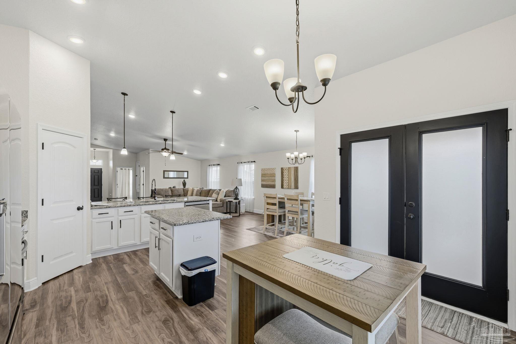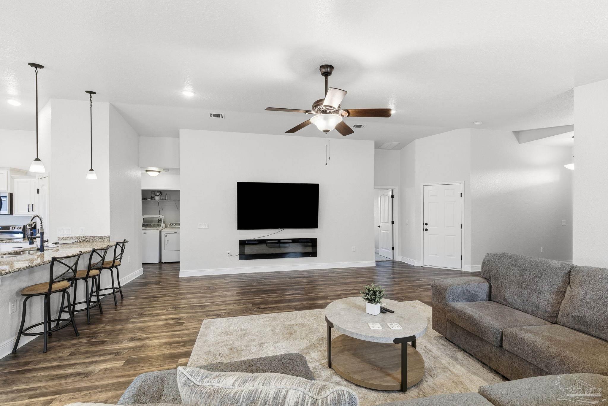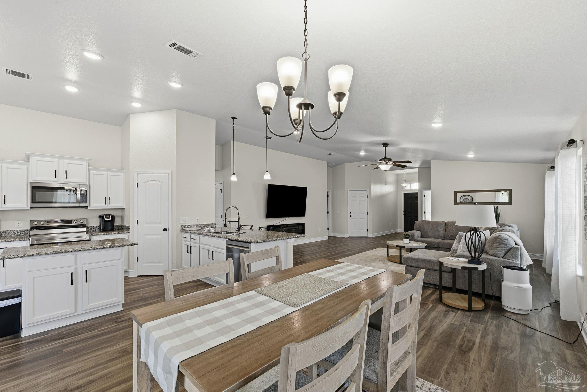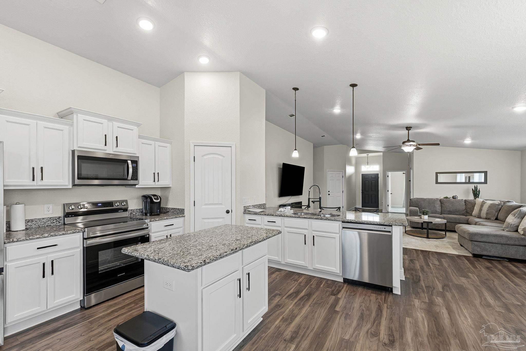 Welcome home to this beautifully maintained 3-bedroom, 2-bath residence, perfectly situated on a spacious .31-acre corner lot. Offering 1,786 square feet of thoughtfully designed living space, this home combines comfort, functionality, and style—and comes fully furnished with all brand-new décor and furnishings included. Inside, an open-concept floor plan, soaring ceilings, and light neutral colors create a bright and inviting atmosphere ideal for both everyday living and entertaining. The kitchen is the heart of the home, featuring crisp white cabinetry, granite countertops, a breakfast bar, pantry, and dining area—now complete with a new dishwasher, refrigerator, and stove. The interior has been freshly painted, and the bedrooms feature brand-new carpet, adding a touch of comfort and a move-in-ready feel throughout. The primary suite offers a peaceful retreat, while the additional bedrooms provide flexibility for guests, a home office, or a playroom. Step outside to a covered patio overlooking the fully fenced backyard, where there’s ample space for grilling, gardening, or simply relaxing at the end of the day. With its corner lot setting, beautifully curated new furnishings, upgraded finishes, and seamless blend of indoor comfort and outdoor living, this move-in ready home is the perfect combination of style, convenience, and value—ready for you to call your own.