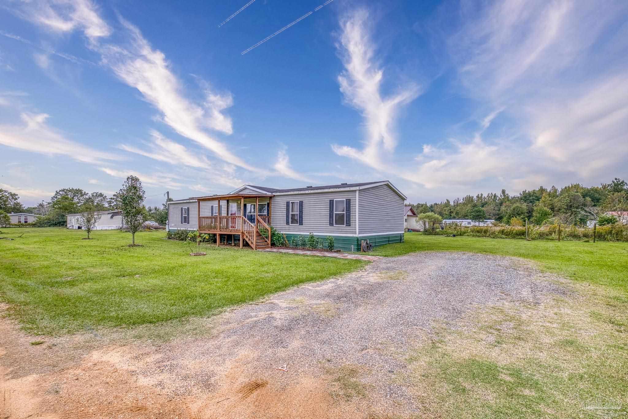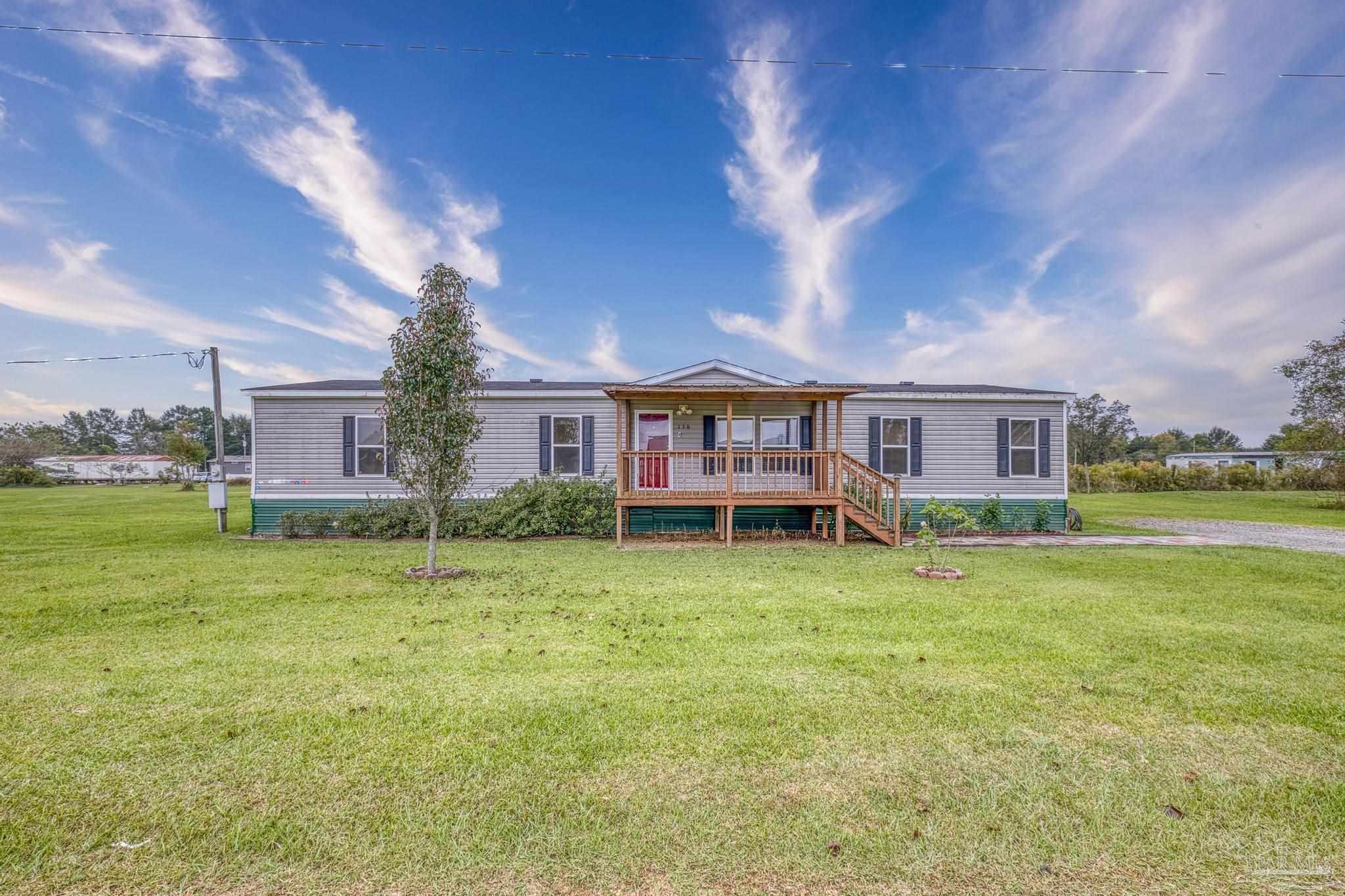 Welcome home! This beautiful 4-bedroom, 2-bath doublewide is tucked away from highway noise yet just 10 minutes from the heart of Atmore. With approximately 1,709 square feet of living space, this home features a spacious layout with a separate dining area and open kitchen. Enjoy quiet mornings on the front porch or unwind in the evening on the back porch overlooking the open view. Whether you’re looking for comfort, convenience, or a little extra breathing room, this home has it all.