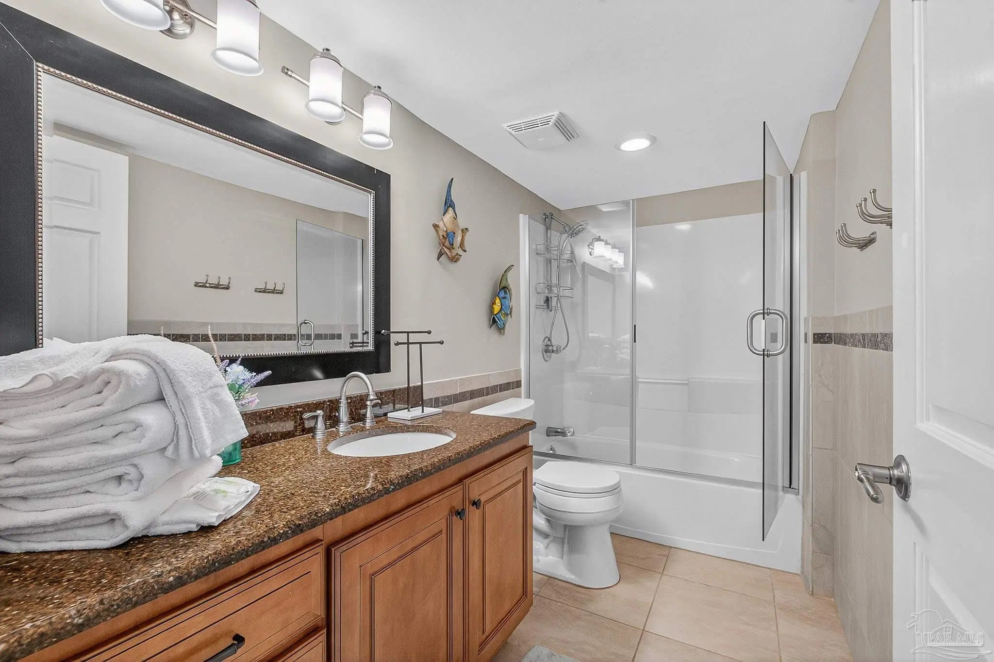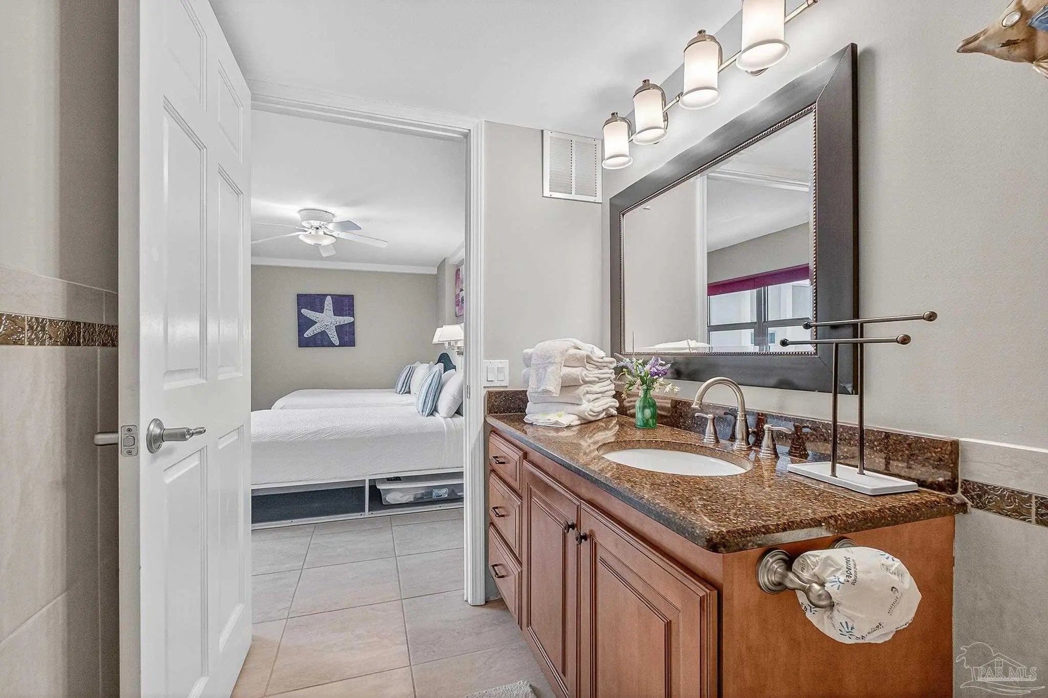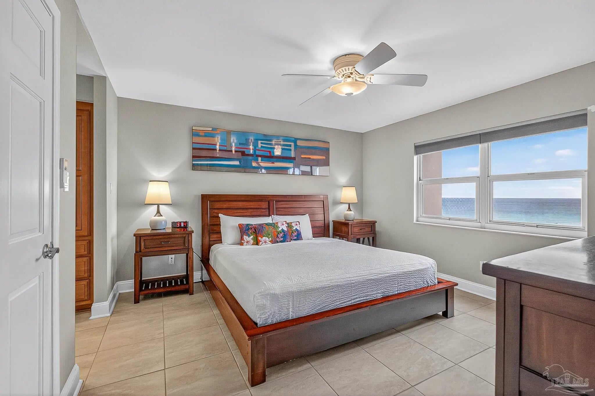 Experience the pinnacle of coastal luxury in this beautifully updated Gulf-front condo at Regency Towers on Pensacola Beach. This spacious residence offers 3 bedrooms and 3 bathrooms, featuring an open-concept living area framed by wall-to-wall windows that fill the space with natural light and open to a private beachfront balcony—perfect for morning coffee or sunset views. The home showcases a modern kitchen with granite countertops, under-cabinet lighting, stainless steel appliances including a new range and dishwasher. Recent upgrades also include a new water heater, four new split HVAC units (2025), and fresh paint throughout. Need a place to work, There is a two person workspace opposite of the dining room table. Designed with comfort and accessibility in mind, the condo offers extra-wide doorways, a wheelchair-accessible layout, and a balcony off the living room. The primary suite highlights breathtaking Gulf views. Offered fully furnished with linens belonging to Southern, this turnkey property is ideal as a full-time residence, second home, or short-term rental. Regency Towers provides top-tier amenities including a beachfront pool, tennis court, gym, recreation room, and lush landscaping—all within one of Pensacola Beach’s most desirable Gulf-front communities.
