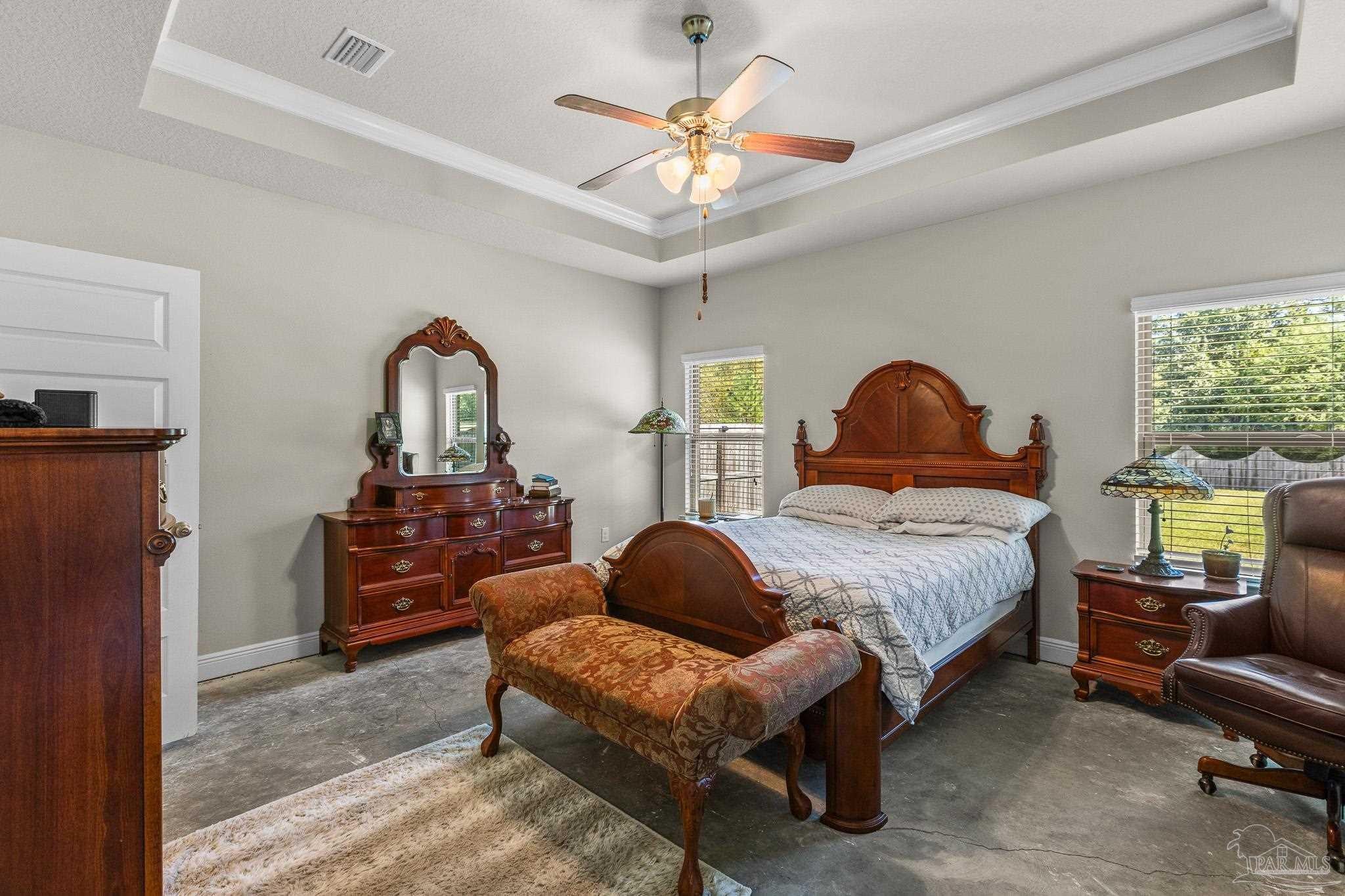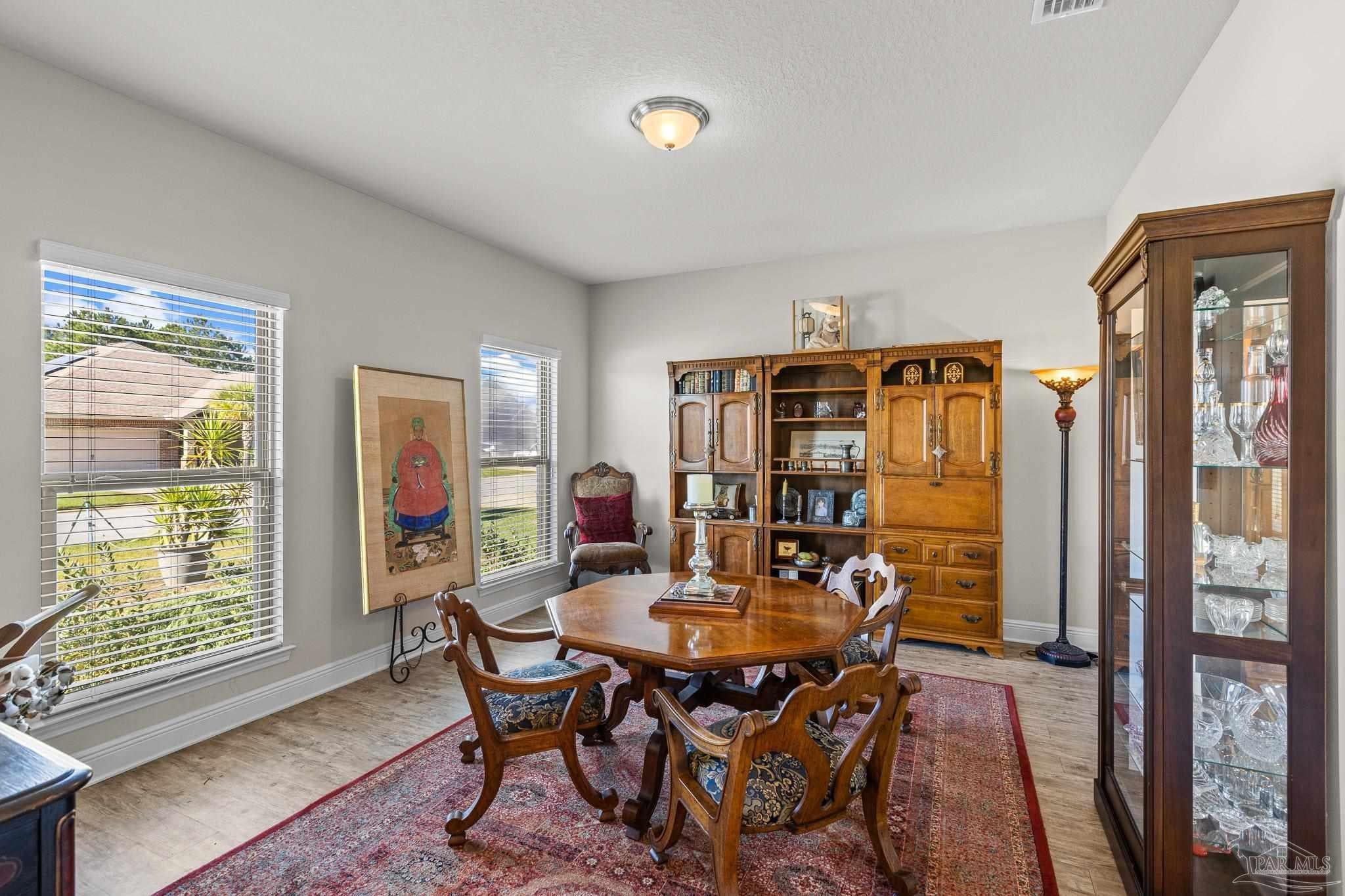 Experience the perfect blend of coastal charm, modern comfort, and timeless design in this beautifully maintained brick ranch home located in the heart of Navarre, Florida—a friendly seaside town known for its pristine white-sand beaches and laid-back lifestyle. Just a short drive from the sparkling Gulf of Mexico, this spacious 5-bedroom, 3-bathroom home welcomes you with manicured landscaping and a bright, open floor plan designed for easy living and entertaining. Step inside to find a sunlit home office and an elegant formal dining room, ideal for hosting family dinners or holiday gatherings. The living room features a tray ceiling and flows seamlessly into the well-appointed kitchen, complete with granite countertops, abundant cabinetry, stainless steel appliances, and a large eat-in island that’s perfect for casual meals or morning coffee. Retreat to the primary suite, where you’ll find a peaceful sanctuary with a spa-like en suite bathroom and generous walk-in closet. Outside, a large covered patio overlooks a private, fenced backyard—perfect for relaxing evenings, playtime, or weekend barbecues. Recent updates also include a newer water heater installed in 2024. Located just minutes from the vibrant Navarre Parkway corridor, you’ll have quick access to local favorites like waterfront dining, boutique shops, and everyday conveniences. Top-rated schools, nearby shopping, and the iconic Navarre Beach—known as “Florida’s Most Relaxing Place”—make this home an exceptional find for anyone seeking comfort, community, and coastal living at its best. You don't want to miss this one!