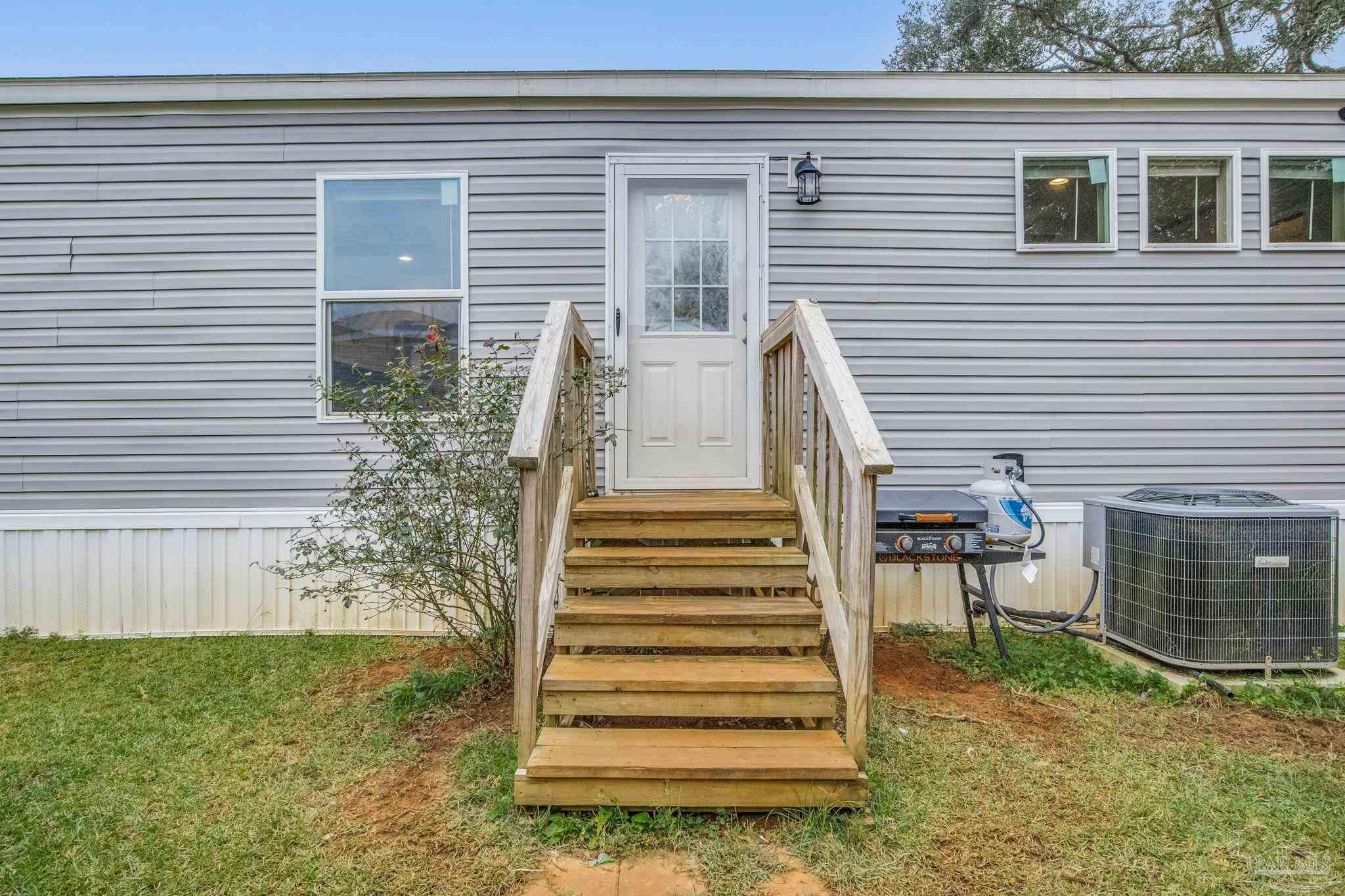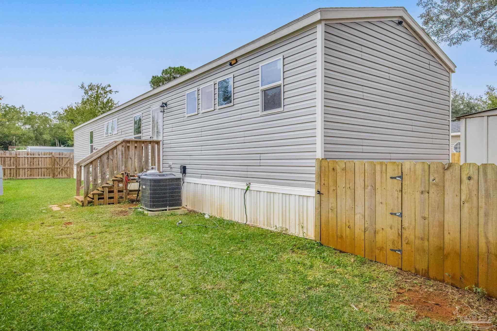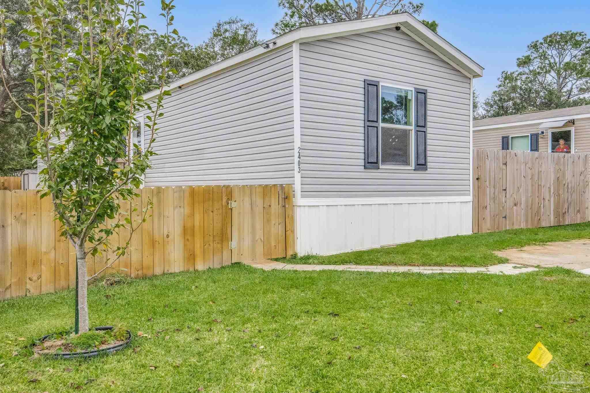 Built in 2022, this beautifully maintained 3-bedroom, 2-bath mobile home offers the perfect blend of comfort and Florida coastal living. With approximately 1,150 square feet of open-concept space, the home features a thoughtful split floor plan that provides both privacy and flow. The bright family room opens seamlessly to the kitchen, where stainless steel appliances, a center island, and ample cabinet space make everyday living and entertaining easy. The primary suite is tucked at the back of the home and includes a walk-in closet and private bath. A dedicated laundry room off the kitchen adds convenience and features a secondary door leading to the fenced yard. Your other two bedrooms and hall bathroom are located at the front of home. Outside, you’ll find a completely fenced yard and a tool shed for added storage. The community offers a true Florida lifestyle with a pool, clubhouse, secure boat storage, and private boat launch and pier—perfect for enjoying the outdoors. Conveniently located off Gulf Beach Highway, this home provides easy access to Perdido Beach, Pensacola Beach, NAS Pensacola, and Downtown Pensacola. Call to schedule your showing today!