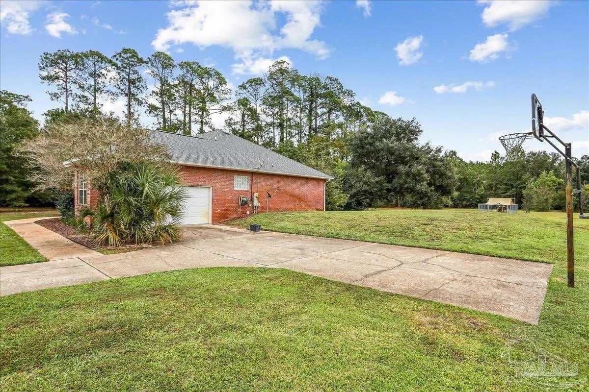 Wonderful opportunity to own a beautiful one-story 4 bed 2 bath home with a split floor plan sitting on over 2 acres of land. This lot provides ample space for storing your boat and RV. The rear of the 2-acre property connects to Garcon Shores Drive, potentially offering an opportunity to build another home. There is also room for accessory buildings. This beautiful home features a roof replaced in 2020, a side-entry garage, an alarm system, and a sprinkler system. The septic system has been recently inspected and pumped. The home is located in a subdivision with a long entrance, creating a private community feel, nestled among million-dollar waterfront homes. Enter this wonderful floor plan through a grand entrance with a formal dining area on your right. The home includes a large family room with a beautiful wood-burning fireplace, perfect for chilly evenings, and a spacious kitchen ideal for entertaining or gatherings. The large owner's bedroom is situated off the kitchen, while the other rooms are located down a hall off the living room on the opposite side of the home. Located less than 5 min to 1-10 and less than 30 minutes to Pensacola's award winning downtown! Make your appointment to view this home today!