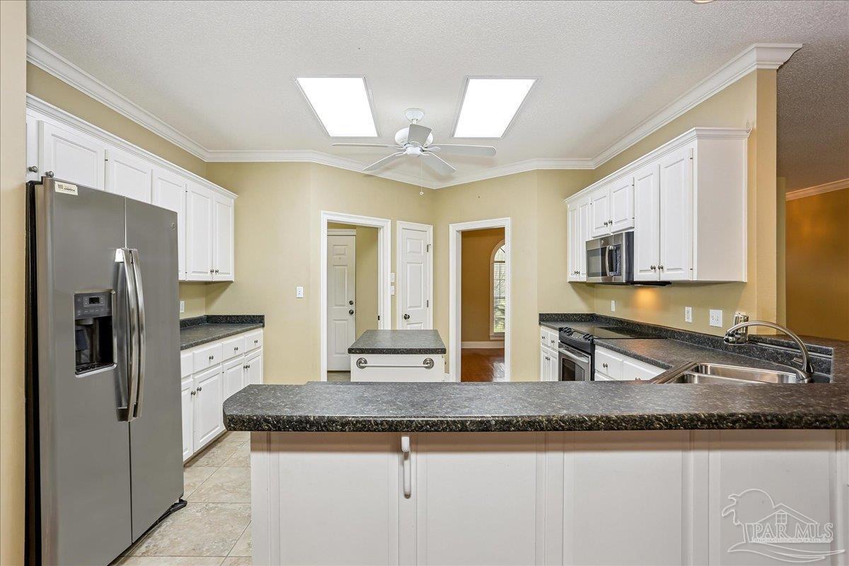 Wonderful opportunity to own a beautiful one-story 4 bed 2 bath home with a split floor plan sitting on over 2 acres of land. This lot provides ample space for storing your boat and RV. The rear of the 2-acre property connects to Garcon Shores Drive, potentially offering an opportunity to build another home. There is also room for accessory buildings. This beautiful home features a roof replaced in 2020, a side-entry garage, an alarm system, and a sprinkler system. The septic system has been recently inspected and pumped. The home is located in a subdivision with a long entrance, creating a private community feel, nestled among million-dollar waterfront homes. Enter this wonderful floor plan through a grand entrance with a formal dining area on your right. The home includes a large family room with a beautiful wood-burning fireplace, perfect for chilly evenings, and a spacious kitchen ideal for entertaining or gatherings. The large owner's bedroom is situated off the kitchen, while the other rooms are located down a hall off the living room on the opposite side of the home. Located less than 5 min to 1-10 and less than 30 minutes to Pensacola's award winning downtown! Make your appointment to view this home today!