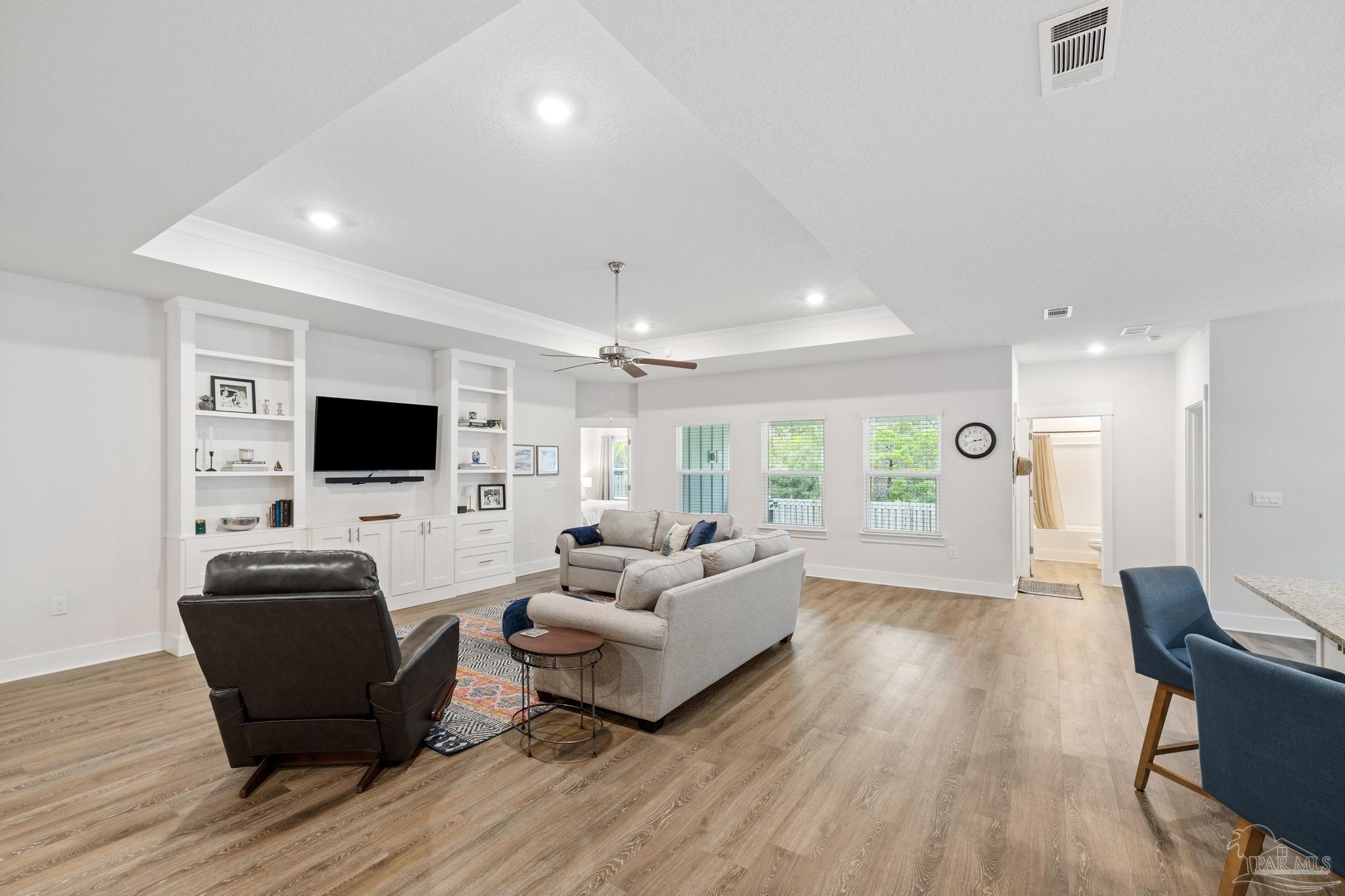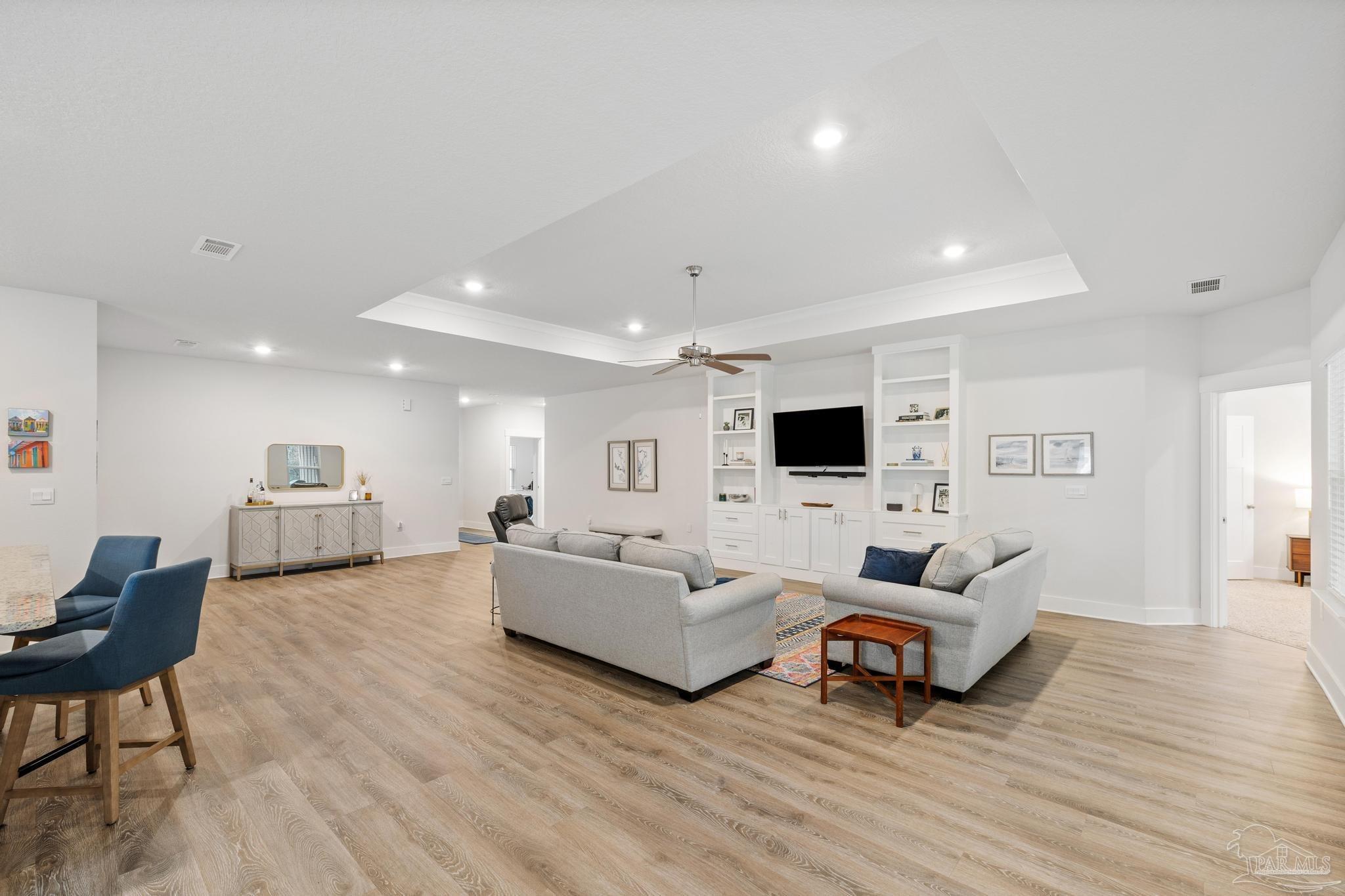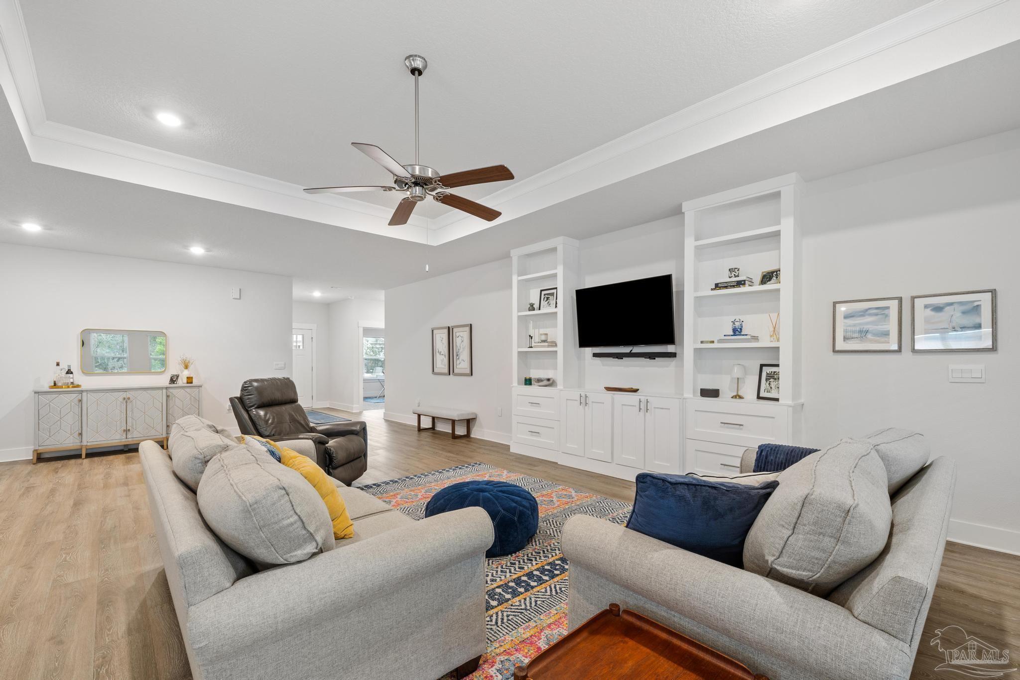 - Storage, Baseboards, Bookcases, Ceiling Fan(s), Crown Molding, High Ceilings, Recessed Lighting