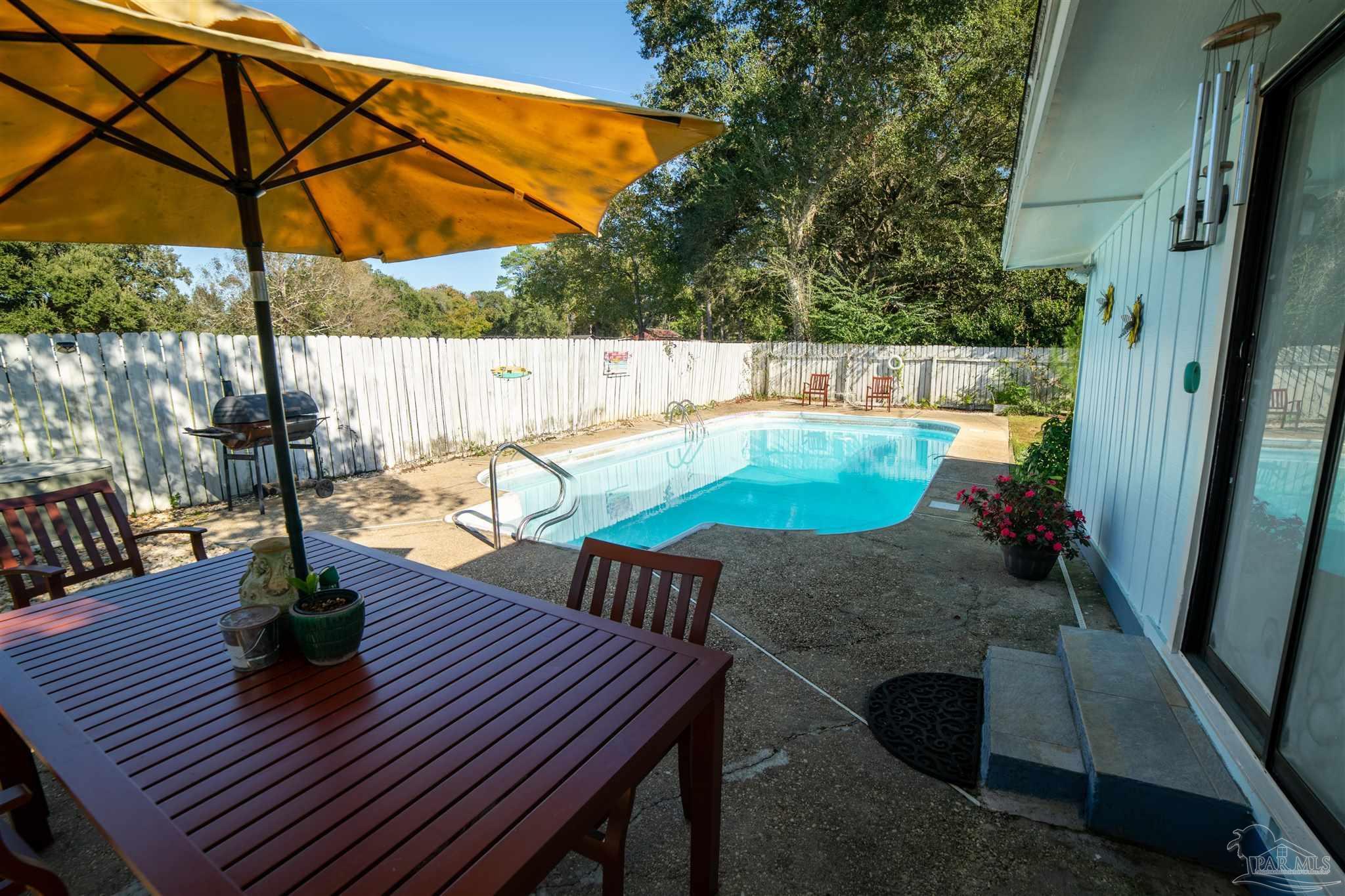 Small cottage with a pool! This 2 bedroom home in a quiet neighborhood would make a great starter home or investment property! Many updates have been done by the current owner including kitchen & bathroom updates, flooring, painting, & landscaping. Great location- 15 minutes to Naval Air Station Pensacola and 10 minutes to I-10.
