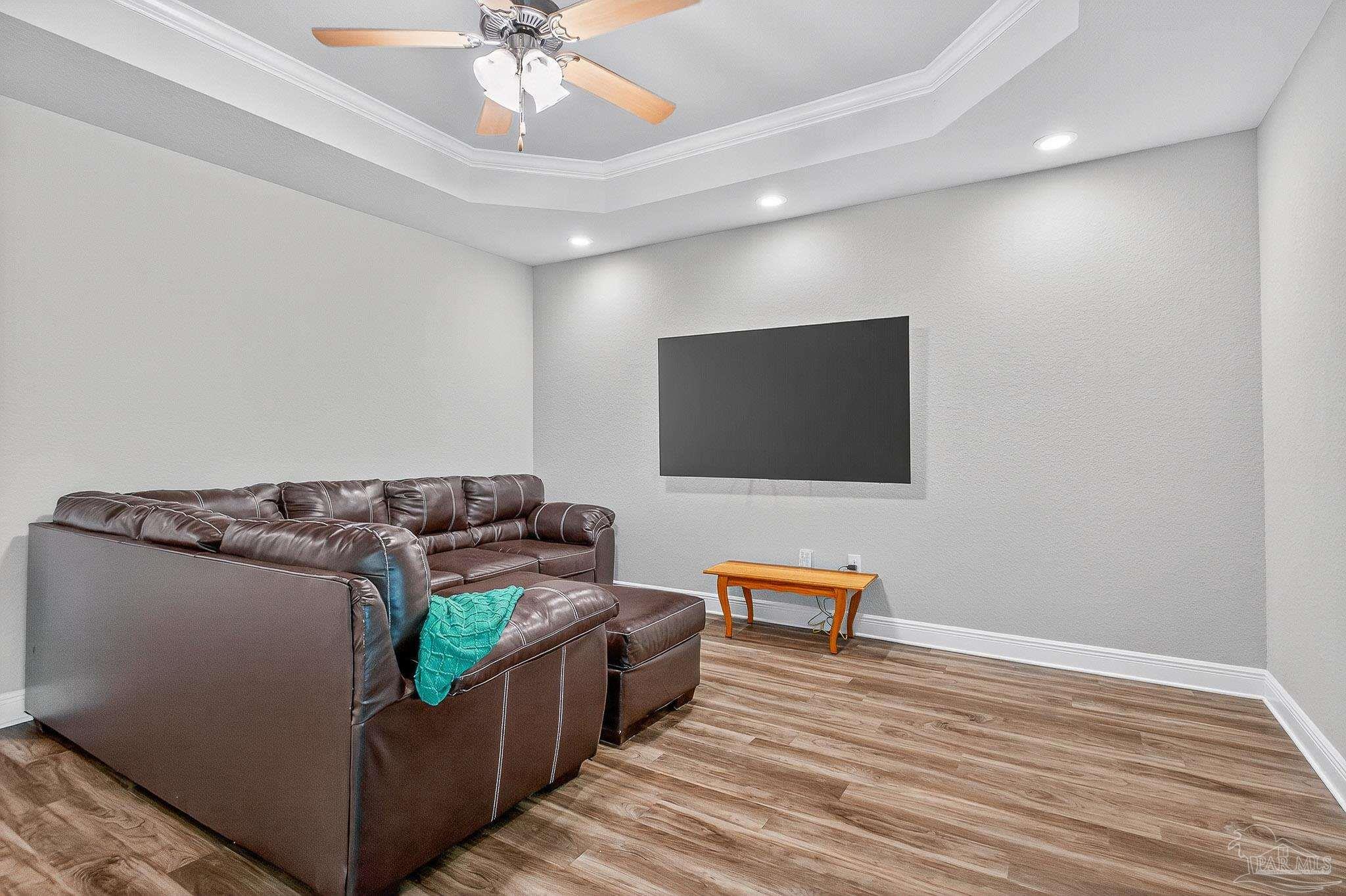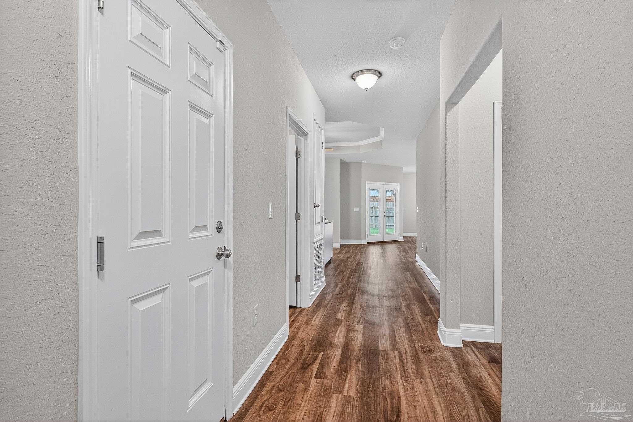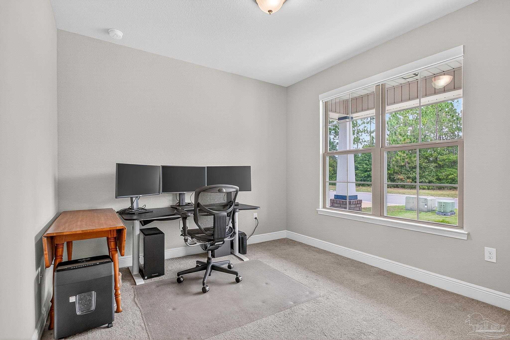 Step inside this exceptionally clean and well-maintained home in Millview Estates! This beautiful property features a bright, open floor plan with tall ceilings and a wide foyer that creates an inviting first impression. Natural light enhances the neutral color palette, highlighting the Spanish lace textured walls and elegant rounded corners. The kitchen is open to the living and dining areas, offering a spacious layout perfect for entertaining. Enjoy the large center island for your morning coffee or casual meals. The kitchen is equipped with stunning maple cabinets, granite countertops, stainless steel appliances, a built-in microwave, pantry, and plenty of workspace. The split-bedroom design ensures privacy, with generously sized secondary bedrooms and a spacious primary suite. The primary bedroom features a tray ceiling for added architectural interest and a custom look, along with a large walk-in closet. The en-suite bathroom includes a double vanity, separate shower, relaxing garden tub, and private water closet. Additional highlights include a full guest bath, interior laundry room, and manicured landscaping professionally maintained (sprinkler system recently installed). The privacy-fenced backyard features a covered porch and a hot tub that conveys with the sale—perfect for relaxing evenings at home. Recent upgrades include spray foam insulation for improved energy efficiency and soundproofing, additional gutters, privacy fencing, and blackout blinds. The water heater was replaced in 2025, along with new toilets, dishwasher, microwave, and kitchen faucet. A Reme Halo whole-home in-duct air purifier enhances indoor air quality, and a termite bond provides added peace of mind. Conveniently located near shopping, dining, NAS Pensacola, downtown, and the area’s beautiful white sandy beaches. No HOA. Call today to schedule your personal tour!