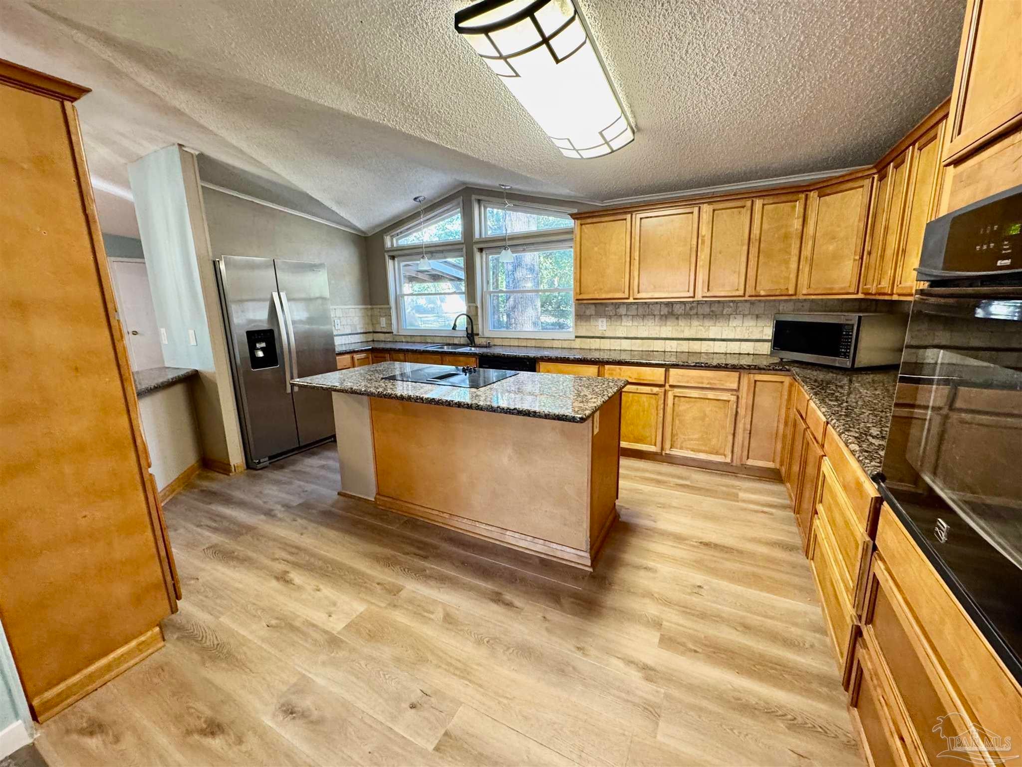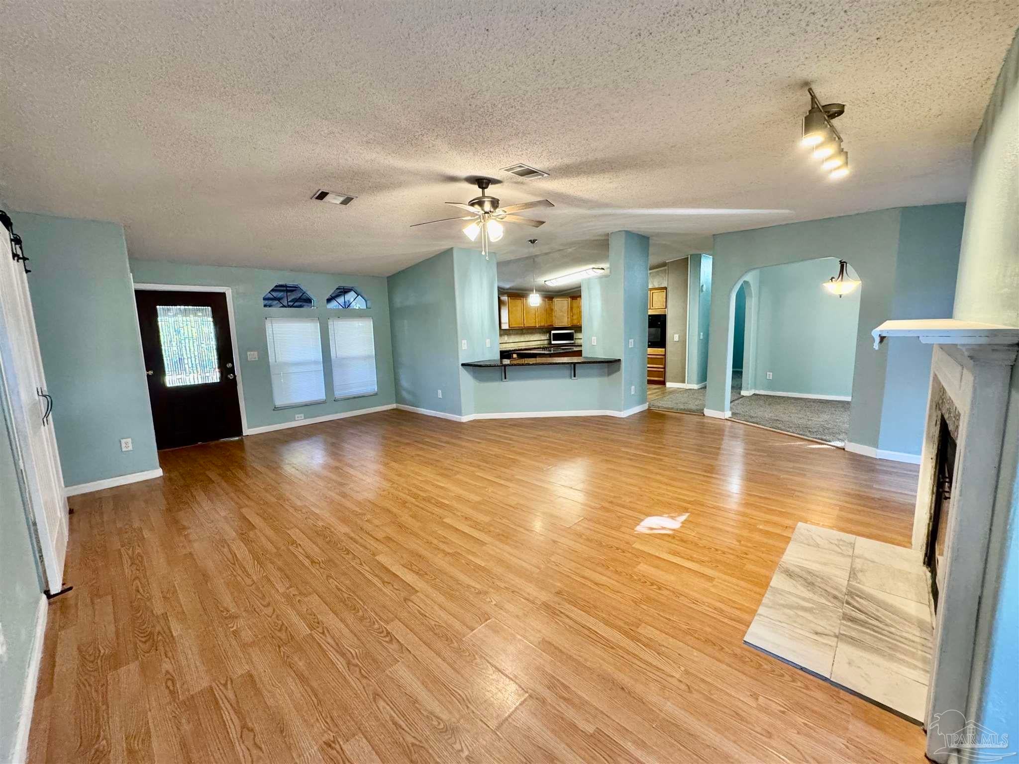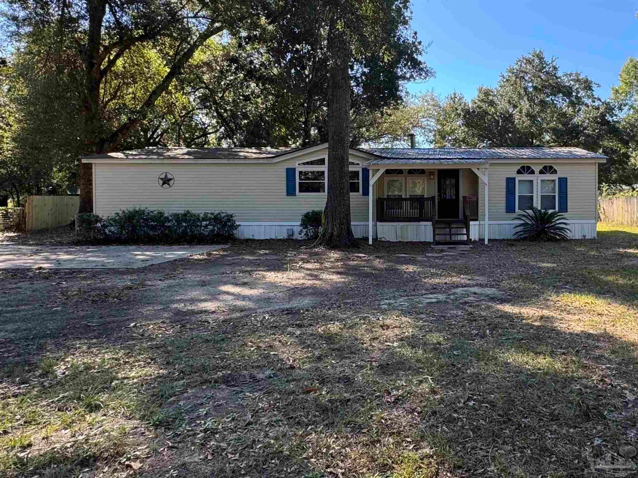 4017 Scottsdale Ave. is a charming 3-bedroom, 2-bath home that sits on a sprawling .46 acre lot that offers both privacy and plenty of outdoor space to enjoy with mature trees and a peaceful atmosphere. Located in one of the most desirable areas of Pace, just off of W. Spencer Field Rd. It is zoned for some of the best schools in the area with Pace High, Sims Middle, and Dixon Elementary all within 5 minutes. Benny Russell playground/splashpad is only 1 mile away. All shopping/amenities Pace and Milton have to offer are within a 10 minute drive. Downtown Pensacola, Whiting Field, UWF, PSC, airports and more are all within a 30 minute drive. Step onto the inviting front porch, perfect for morning coffee or relaxing evenings, and walk into a spacious open living area filled with natural light. The cozy fireplace, wood-style floors, and cheerful paint tones make this space warm and welcoming. The kitchen features granite countertops, tons of cabinet storage, and a center island with a cooktop…ideal for preparing meals while staying connected with family or guests. The large primary bedroom includes a large walk in closet and spacious master bathroom with separate shower/tub and oversized double vanity. The fenced backyard provides a perfect retreat for kids, pets, or weekend gatherings. There’s plenty of room to garden or add a shed or fire pit! Don’t miss out on the opportunity to own nearly a half acre in the heart of Pace!!