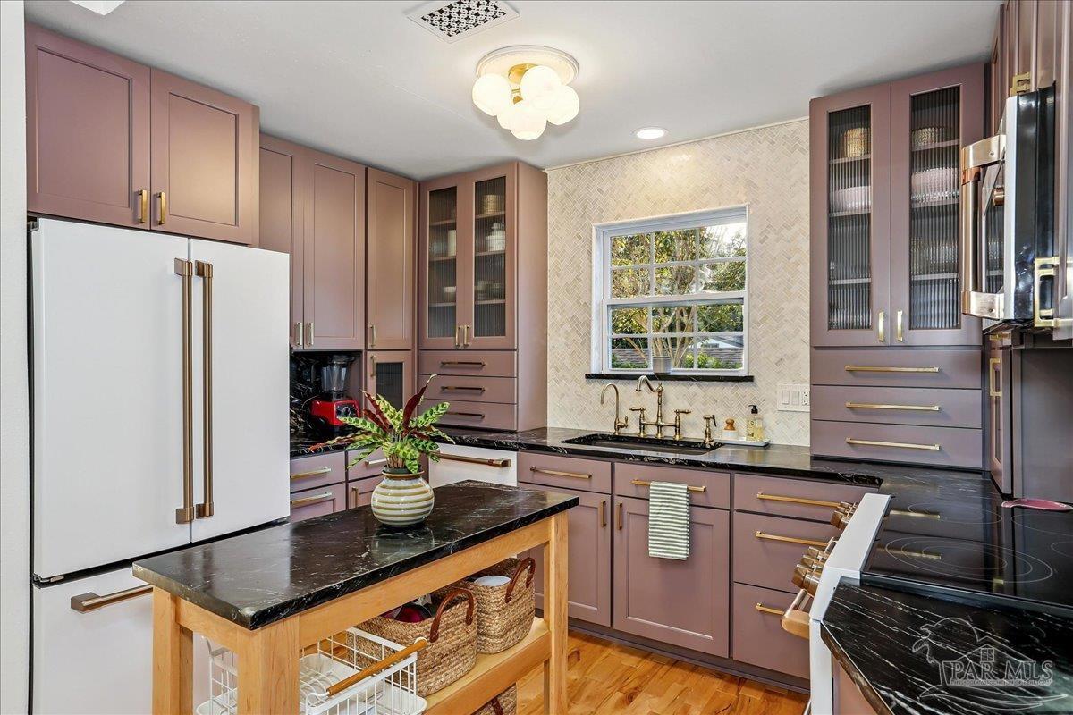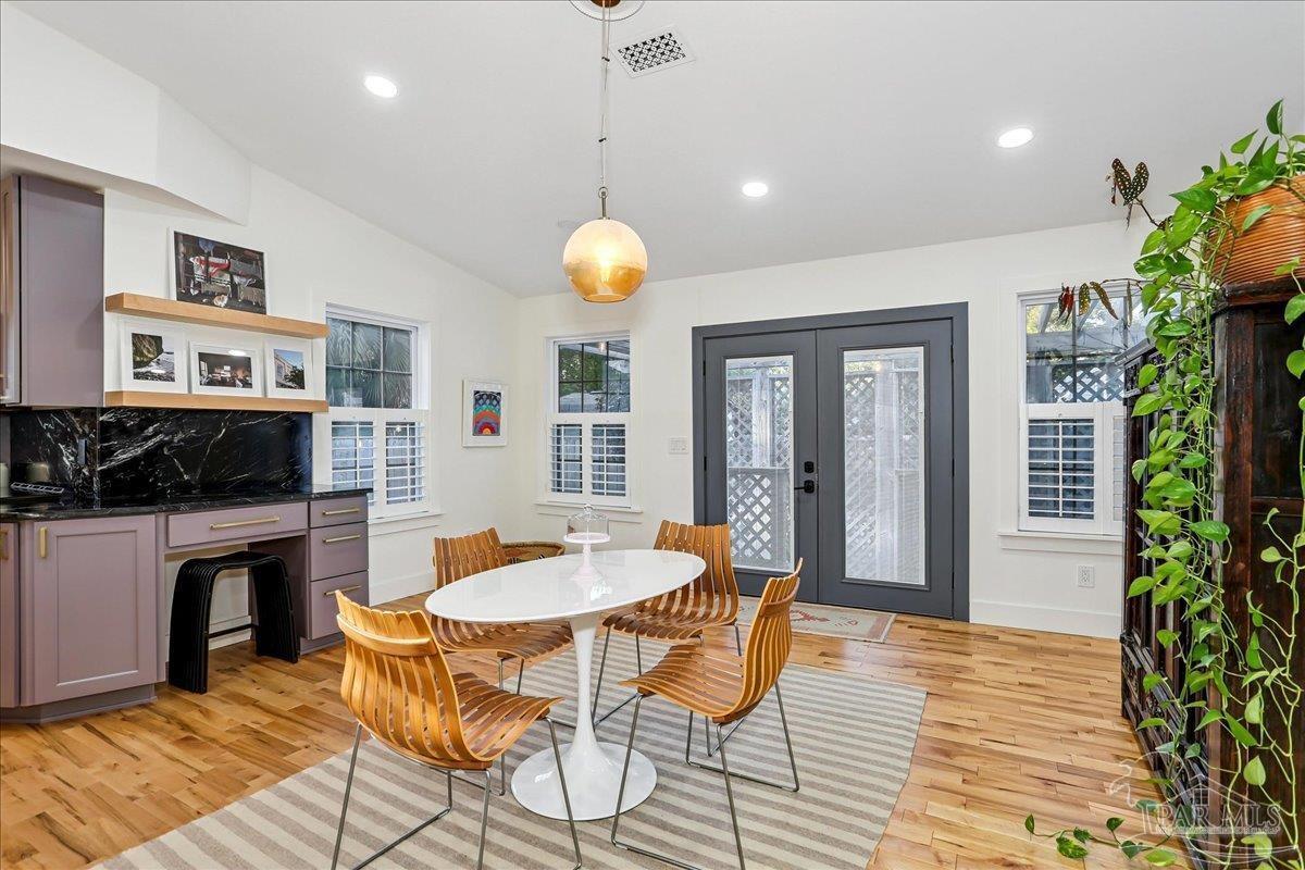 I am delighted to present a truly charming cottage located in the highly sought-after East Hill neighborhood. From the moment you approach the inviting front porch, you'll immediately sense the meticulous care and love that has been poured into this beautiful home. This property boasts a range of impressive upgrades, including elegant Soapstone kitchen countertops and luxurious Italian white marble throughout the master bathroom. You'll find solid hardwood floors in the main living areas, complemented by designer newer appliances that enhance both style and functionality. For your comfort and peace of mind, the home features a 20 SEER HVAC System with UV purification and a Reverse Osmosis drinking water system. The bedrooms are appointed with plantation shutters, decorative ceiling medallions with newer ceiling fans, and modern new outlets that include a USB connection, all finished with decorative covers and detailed air vent covers. The exterior offers a comfortable and private retreat, complete with a pergola that provides ample shade and comfort, perfect for enjoying the patio. For your storage needs, there is a convenient yard building with shingle roof. The location offers unparalleled convenience, being super close to Publix, a local bakery, various restaurants, essential hospitals and healthcare facilities and within 5 minutes of our award winning downtown. Furthermore, the vibrant Bayview Park is just moments away, providing residents with a playground, tennis courts, picnic areas, dog parks, a boat launch, and much more for recreation and enjoyment.