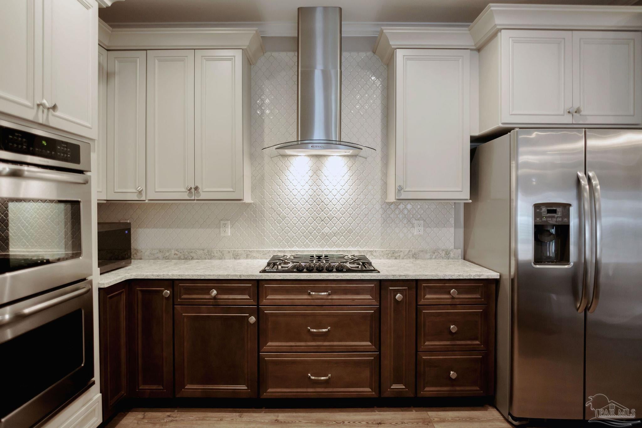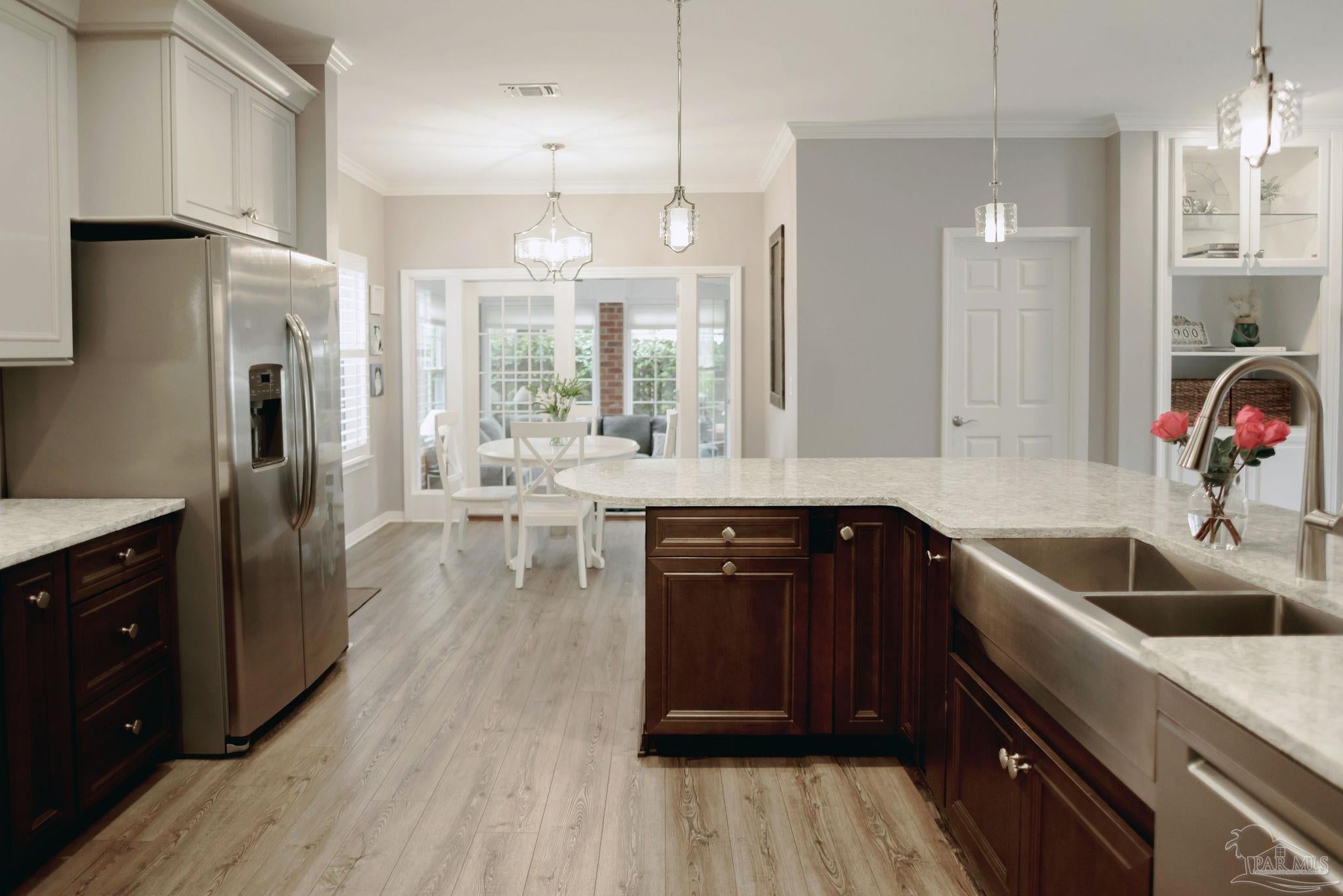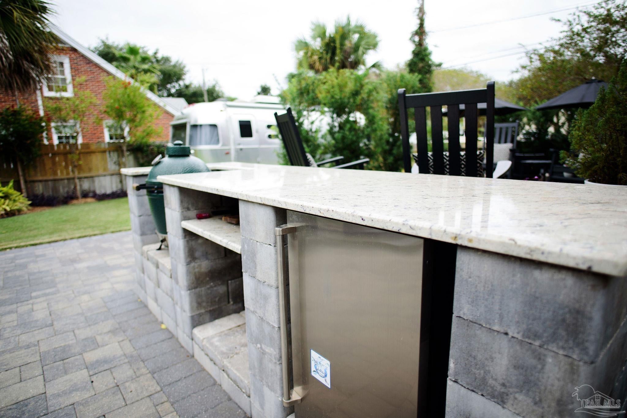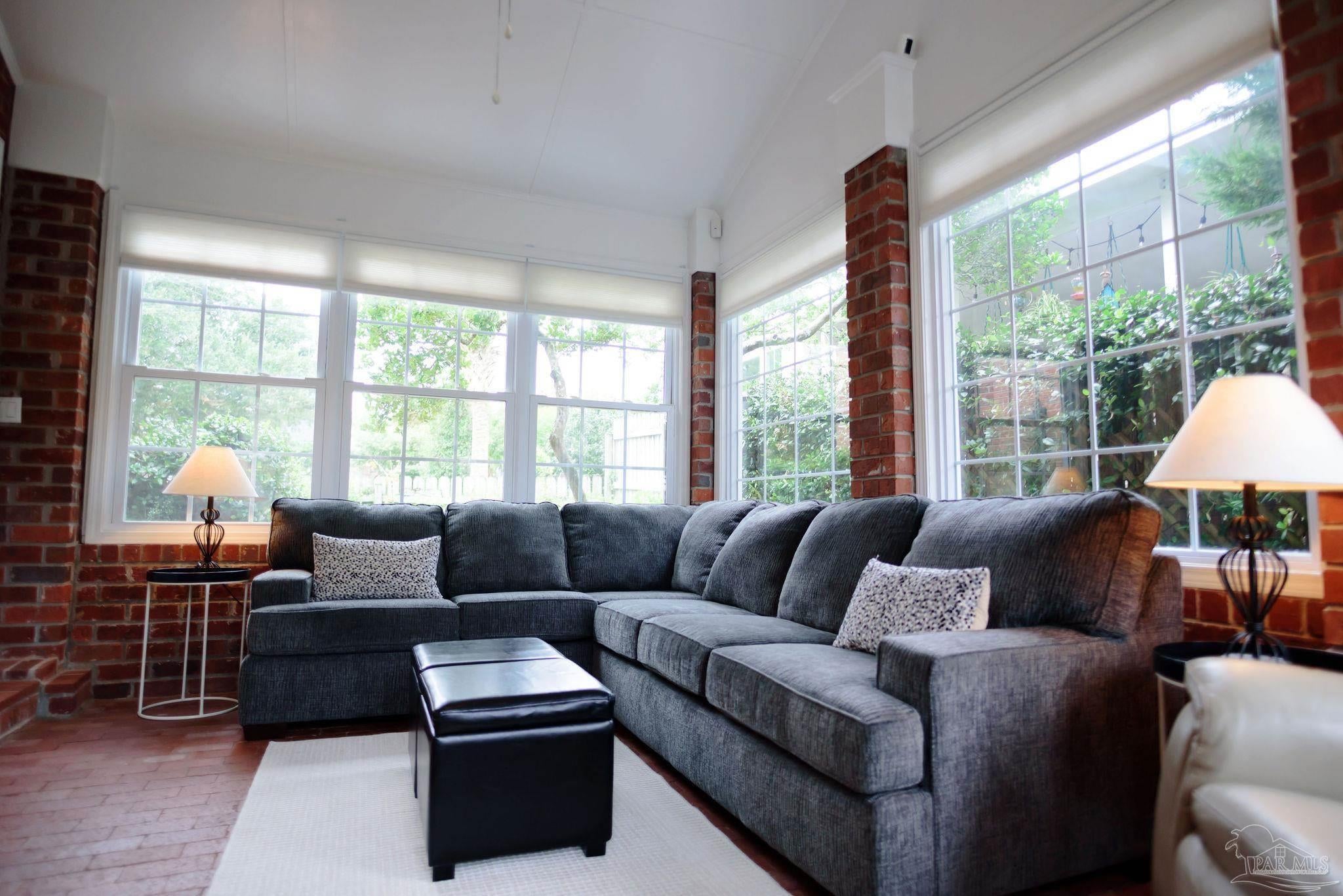 Welcome to this beautifully updated 4-bedroom, 3.5-bath home in the heart of East Hill, offering 3,380 sq. ft. of refined living space. Every detail has been thoughtfully renovated — including a brand-new roof and siding (Oct 2025) and a professionally designed backyard hardscape (2023). Step into the bright, open-concept kitchen featuring Cambria Quartz countertops, a gas cooktop, and sleek stainless-steel appliances. Just off the kitchen, a spacious dining room awaits — complete with a newly added dry bar (March 2025), perfect for entertaining. The kitchen flows seamlessly into a large family room with custom-built-ins and a striking fireplace, ideal for gatherings or quiet evenings in. Adjacent to the living room, a separate room currently serves as a generous home office, offering privacy and flexibility for remote work or creative pursuits. Upstairs, you'll find three spacious bedrooms plus a versatile bonus/media room that easily serves as a fourth bedroom. The luxurious primary suite includes a spa-like bathroom with a soaking tub, walk-in shower (tankless water heater added 2023) and dual quartz vanities. Enjoy year-round comfort in the charming brick sunroom — fully heated/air-conditioned (April 2025) and filled with natural light. Outside, the backyard is an entertainer’s dream: complete with an outdoor kitchen, hot tub, and gas fireplace. The yard is RV-ready with a 30-amp hookup and can be converted into a pool oasis if desired. Nestled in a warm, family-friendly neighborhood, this East Hill gem offers unbeatable access to the best of Pensacola. Take a leisurely stroll to Bayside Park or hop on your bike for a quick ride to downtown’s vibrant restaurants, breweries, and shops. With its perfect blend of elegance, comfort, and convenience, this home puts coastal living right at your doorstep. All that’s left to do is move in and start living your best life!