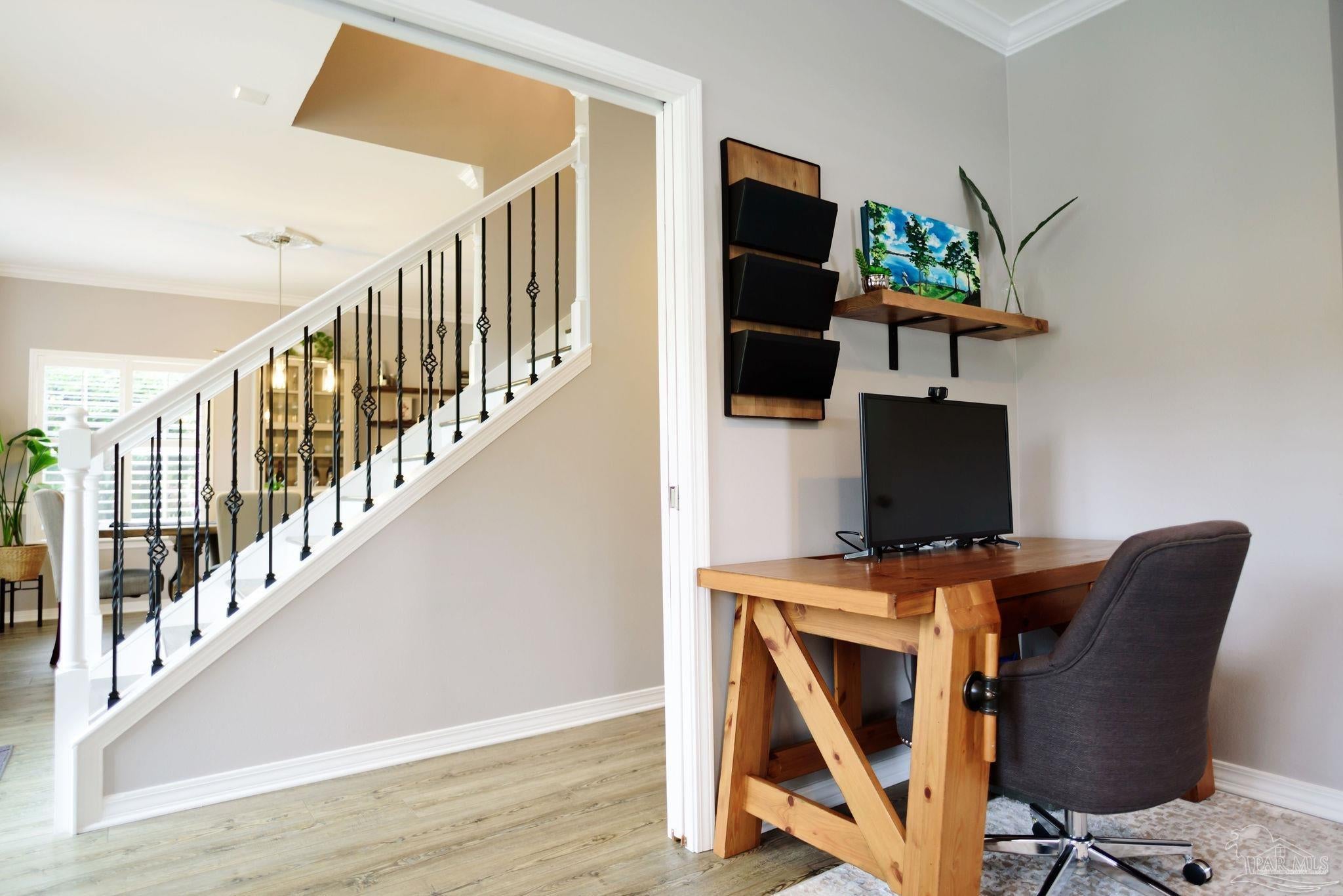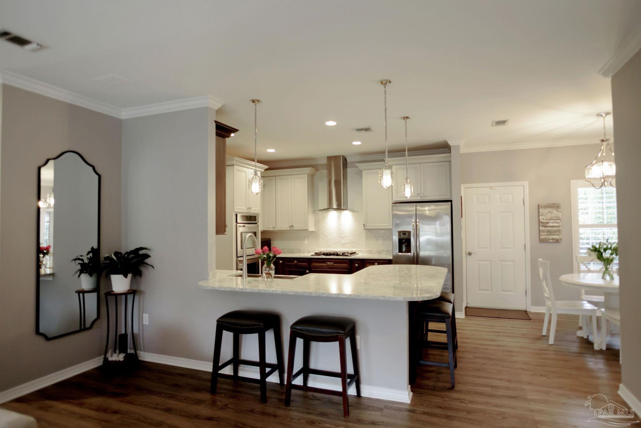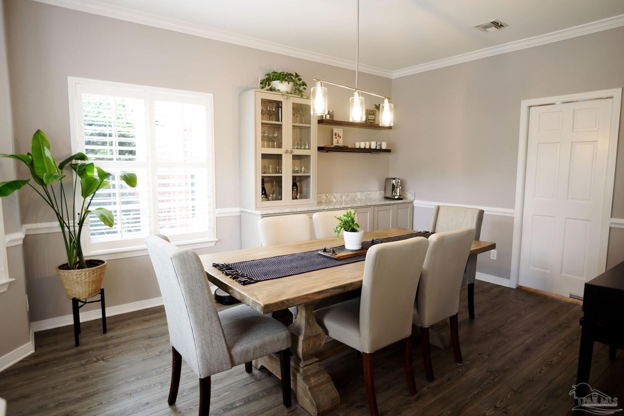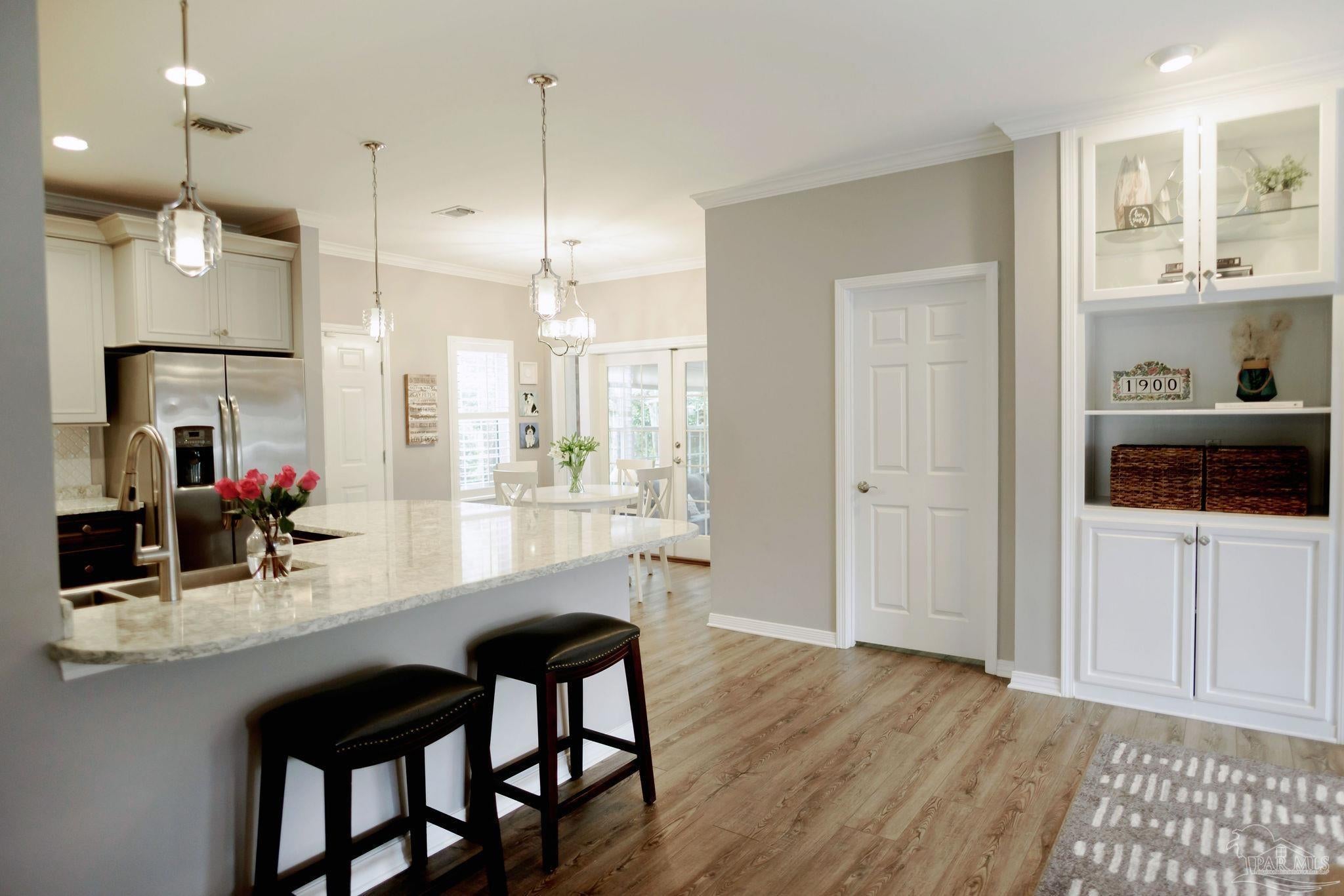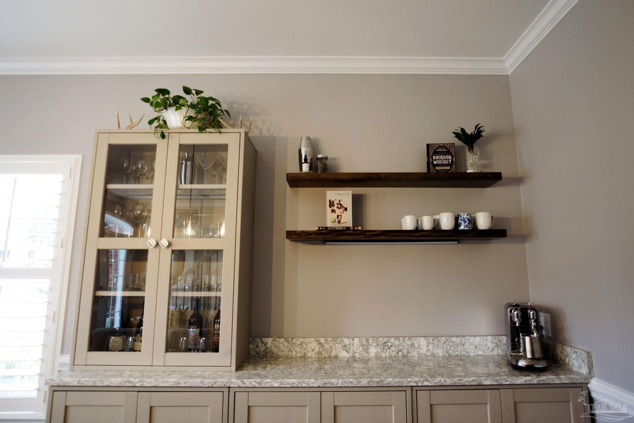 Welcome to this beautifully updated 4-bedroom, 3.5-bath home in the heart of East Hill, offering 3,380 sq. ft. of refined living space. Every detail has been thoughtfully renovated — including a brand-new roof and siding (Oct 2025) and a professionally designed backyard hardscape (2023). Step into the bright, open-concept kitchen featuring Cambria Quartz countertops, a gas cooktop, and sleek stainless-steel appliances. Just off the kitchen, a spacious dining room awaits — complete with a newly added dry bar (March 2025), perfect for entertaining. The kitchen flows seamlessly into a large family room with custom-built-ins and a striking fireplace, ideal for gatherings or quiet evenings in. Adjacent to the living room, a separate room currently serves as a generous home office, offering privacy and flexibility for remote work or creative pursuits. Upstairs, you'll find three spacious bedrooms plus a versatile bonus/media room that easily serves as a fourth bedroom. The luxurious primary suite includes a spa-like bathroom with a soaking tub, walk-in shower (tankless water heater added 2023) and dual quartz vanities. Enjoy year-round comfort in the charming brick sunroom — fully heated/air-conditioned (April 2025) and filled with natural light. Outside, the backyard is an entertainer’s dream: complete with an outdoor kitchen, hot tub, and gas fireplace. The yard is RV-ready with a 30-amp hookup and can be converted into a pool oasis if desired. Nestled in a warm, family-friendly neighborhood, this East Hill gem offers unbeatable access to the best of Pensacola. Take a leisurely stroll to Bayside Park or hop on your bike for a quick ride to downtown’s vibrant restaurants, breweries, and shops. With its perfect blend of elegance, comfort, and convenience, this home puts coastal living right at your doorstep. All that’s left to do is move in and start living your best life!