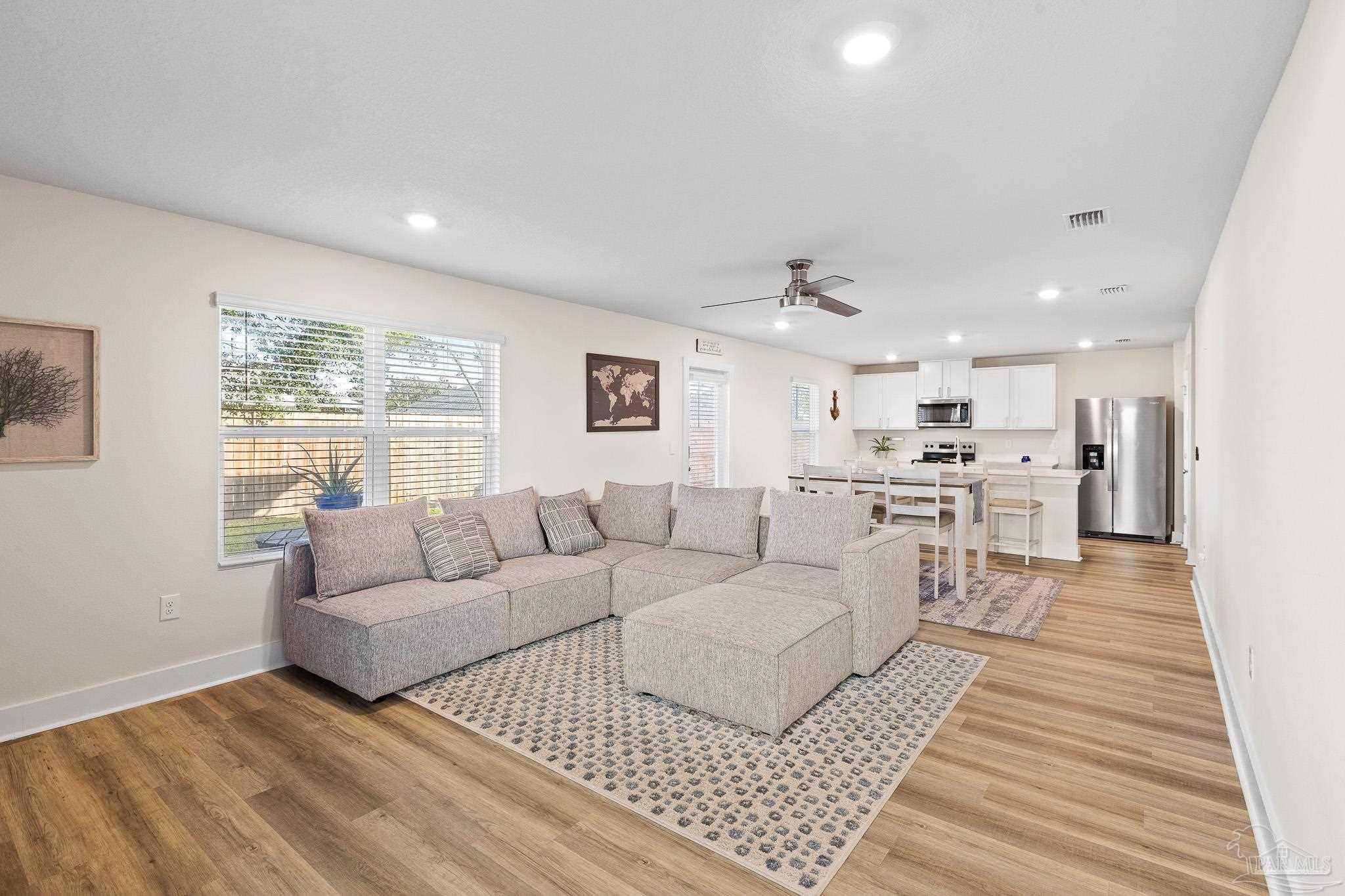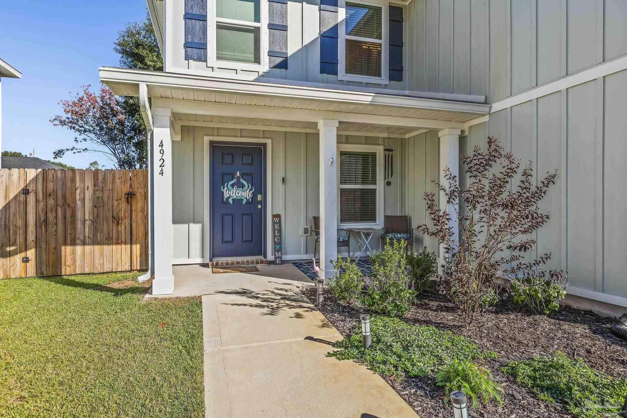 Welcome home to 4924 Valor Ct in Pace's desirable Pandion Place Community! This newer 4 bedroom, 2.5 bath home offers nearly 2000 square feet of modern living with an open concept layout. Featuring quartz countertops, stainless appliances and spacious kitchen island perfect for entertaining. With large baths and walk in closets, you will find well-appointed storage throughout. Smart home features keep your alarm, thermostat and lighting at your fingertips. Convenient location will keep you close to top rated Santa Rosa schools, shopping and dining. Move in ready and built for today's lifestyle! Furnishings are negotiable. Improvements include gutters, custom paver patio extension and termite bond.