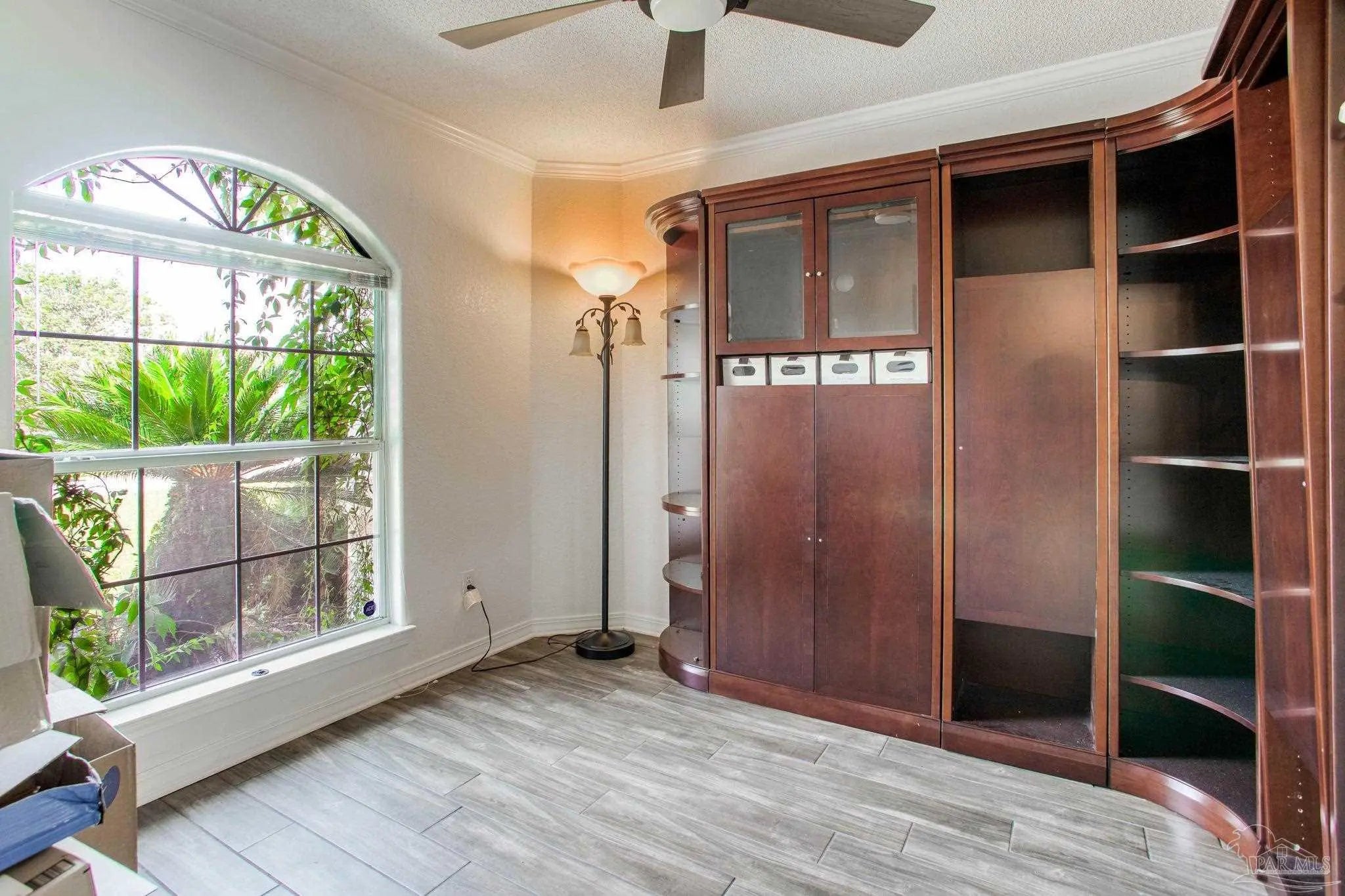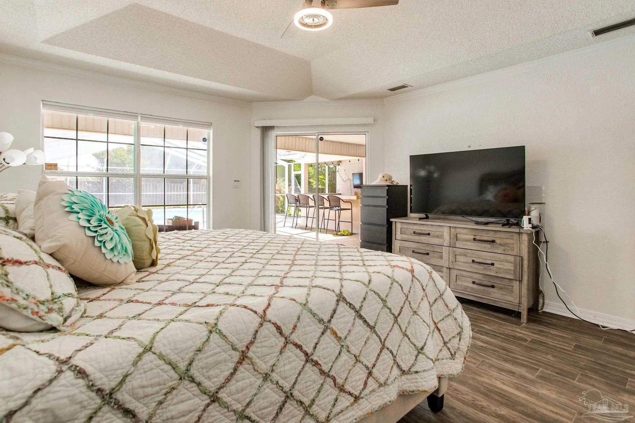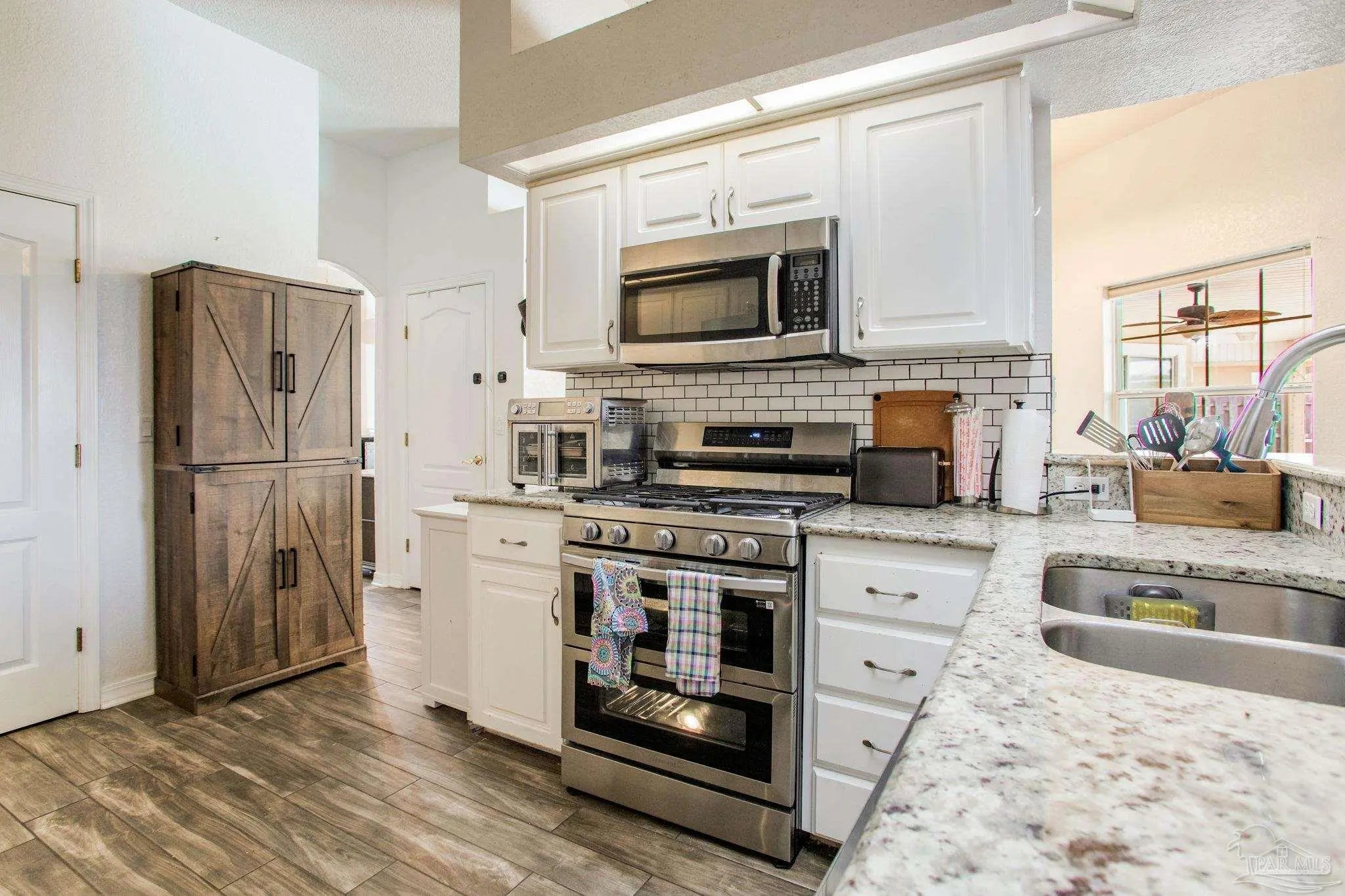 Energy-Efficient Pool Home in the Creekwood subdivision! Welcome to 8042 Mossy Creek, a beautifully maintained 3-bedroom, 2-bath home with an office tucked away in the desirable Creekwood subdivision in Northwest Pensacola. At the front of the home sits the office which can be used as a 4th bedroom if needed. This home blends modern finishes, luxurious outdoor living, and year-round energy efficiency thanks to fully paid for solar panels, keeping your power bill at or near zero. Interior Features include wood-look plank tile flooring throughout main living areas—durable, stylish, and low-maintenance. The kitchen features stainless steel appliances, gas stove, sleek granite counters, large breakfast bar and pantry. The master suite has a spacious en-suite bath with double vanities and a walk-in closet. Elegant tray ceiling. And private access to the pool area which bring in plenty of natural light. The open concept layout with high ceilings, gas fireplace, and large windows for natural light make this property feel like a home. If the inside isn't impressive enough, check out the outside! In-ground saltwater pool with screened enclosure, perfect for year-round enjoyment. Covered lanai with outdoor bar and lounging space. Fully fenced backyard with room to entertain or let pets roam freely. 3-car garage with RV parking pad, generator transfer switch, and attic storage. No need to worry about $400 to $600 power bills with this efficient home. Schedule your showing today to see it for yourself!