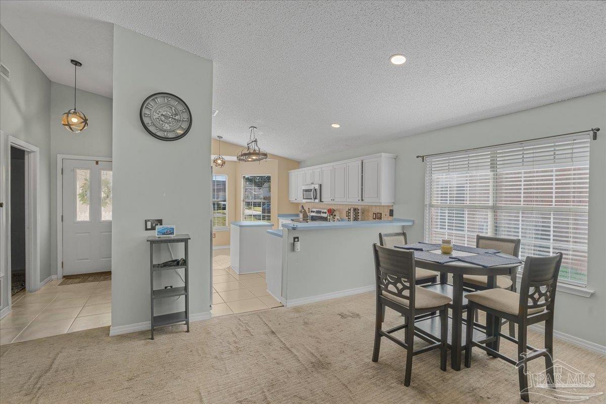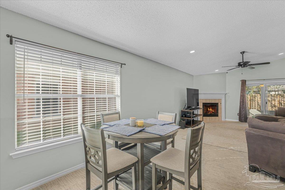 Location, comfort, and low-maintenance living — all wrapped into one! This charming 3 bedroom, 2 bath patio home sits in the heart of Northeast Pensacola, just minutes from the University of West Florida, Pensacola State College, I-10, major shopping, dining, and the sugar-white sands of Pensacola Beach. Whether you’re commuting, studying, or soaking up the coastal lifestyle, this address keeps you close to everything you love. Step inside to a bright, welcoming kitchen — the perfect spot for morning coffee with bay windows overlooking the peaceful cul-de-sac. You’ll love the functional design featuring a prep island, breakfast bar, pantry storage, vaulted ceiling, and a stylish custom backsplash. The open dining and living area is ideal for both relaxing and entertaining, complete with soaring ceilings and a cozy gas fireplace. Slide open the glass doors and expand your living space to the 13x11 screened patio with a ceiling fan for year-round enjoyment. The large fenced backyard offers room to play, garden, or host gatherings under the open sky. The spacious primary suite features a double vanity, a custom walk-in closet, a private water closet, and a separate soaking tub. Two additional bedrooms and a beautifully styled hall bath provide flexibility for guests, a home office, or hobbies. A new roof was installed in 2021, and the home also offers a two-car garage, inside laundry, and an extra-long driveway for plenty of parking. This home is the perfect blend of convenience, comfort, and easy coastal living — ready for you to make it your own!