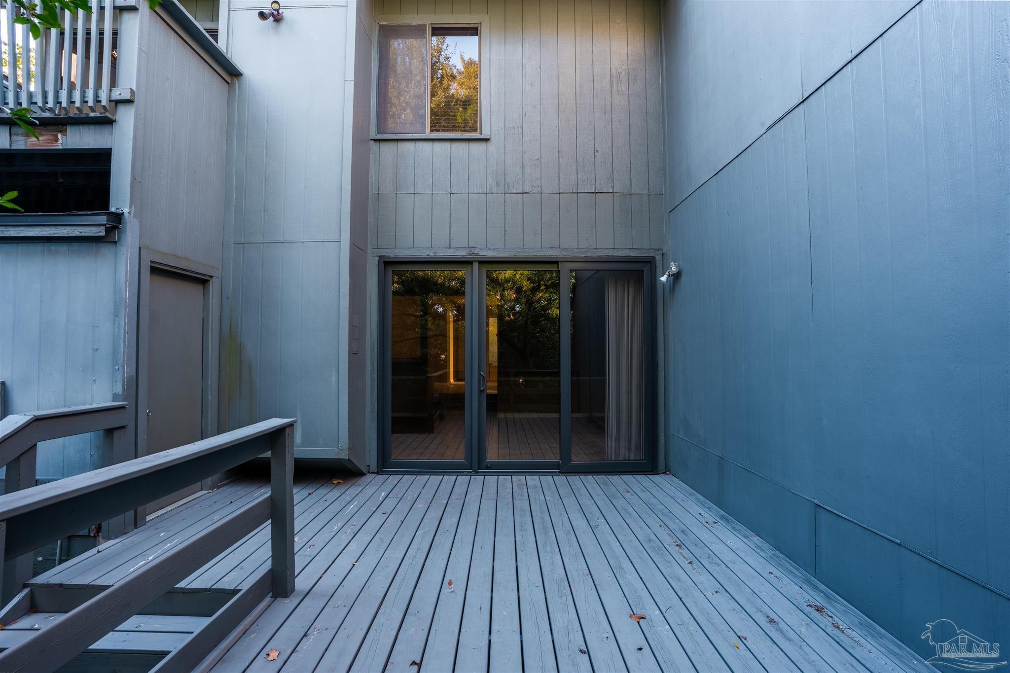 This beautifully updated condo is a must-see end unit, 1,653 sq. ft., with 2 bedrooms and 2.5 baths. It offers the look and space of a townhome while providing all the benefits of the association taking care of exterior maintenance for easy living. Brand-new oversized sliding glass doors (replaced fall 2025) open to a large back deck which was recently replaced (2023), perfect for morning coffee or evening gatherings. Open living area with fireplace, high ceilings, and a floor-to-ceiling mirrored wall for added light and space. Kitchen, bathrooms, and most of the flooring was updated in 2023 as well. Laundry closet with washer and dryer is located upstairs for easy access. The large primary suite has its own balcony, large bathroom with two vanities, and a large closet area. An extra storage room is located to the left the front door on the porch. Unit is located directly across from the community pool, tennis courts, fitness center, and clubhouse, so you’ll have resort-style amenities just steps from your front door. Swim morning laps, work on your tennis game, or unwind by the pool after a long day—this home makes it all effortless. Located 4 minutes from Cordova Mall and Sacred Heart Hospital, 7 minutes from the airport, 10 minutes to Palafox St. downtown, and 22 minutes from beautiful Pensacola Beach! Call today to schedule your private viewing!