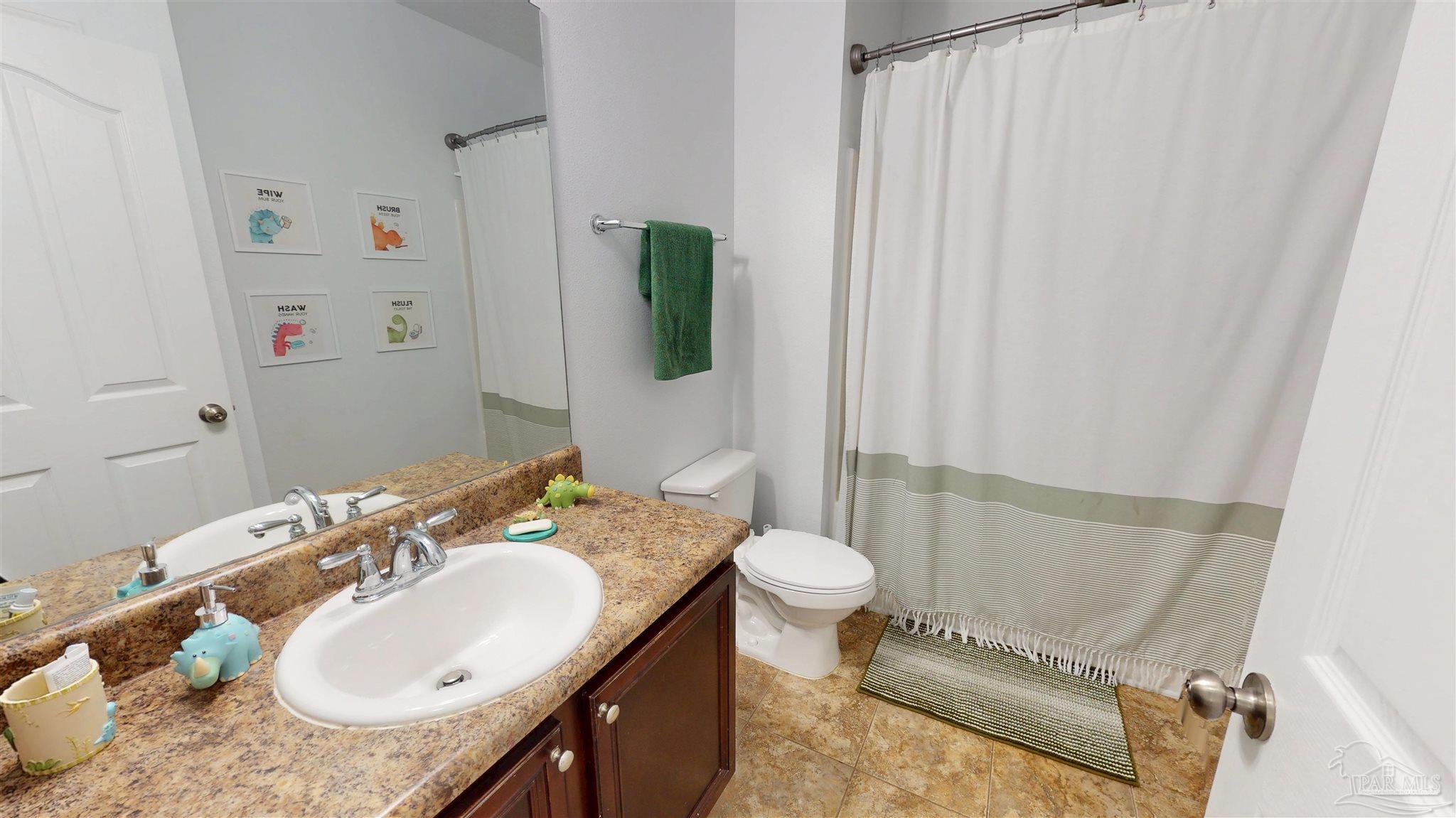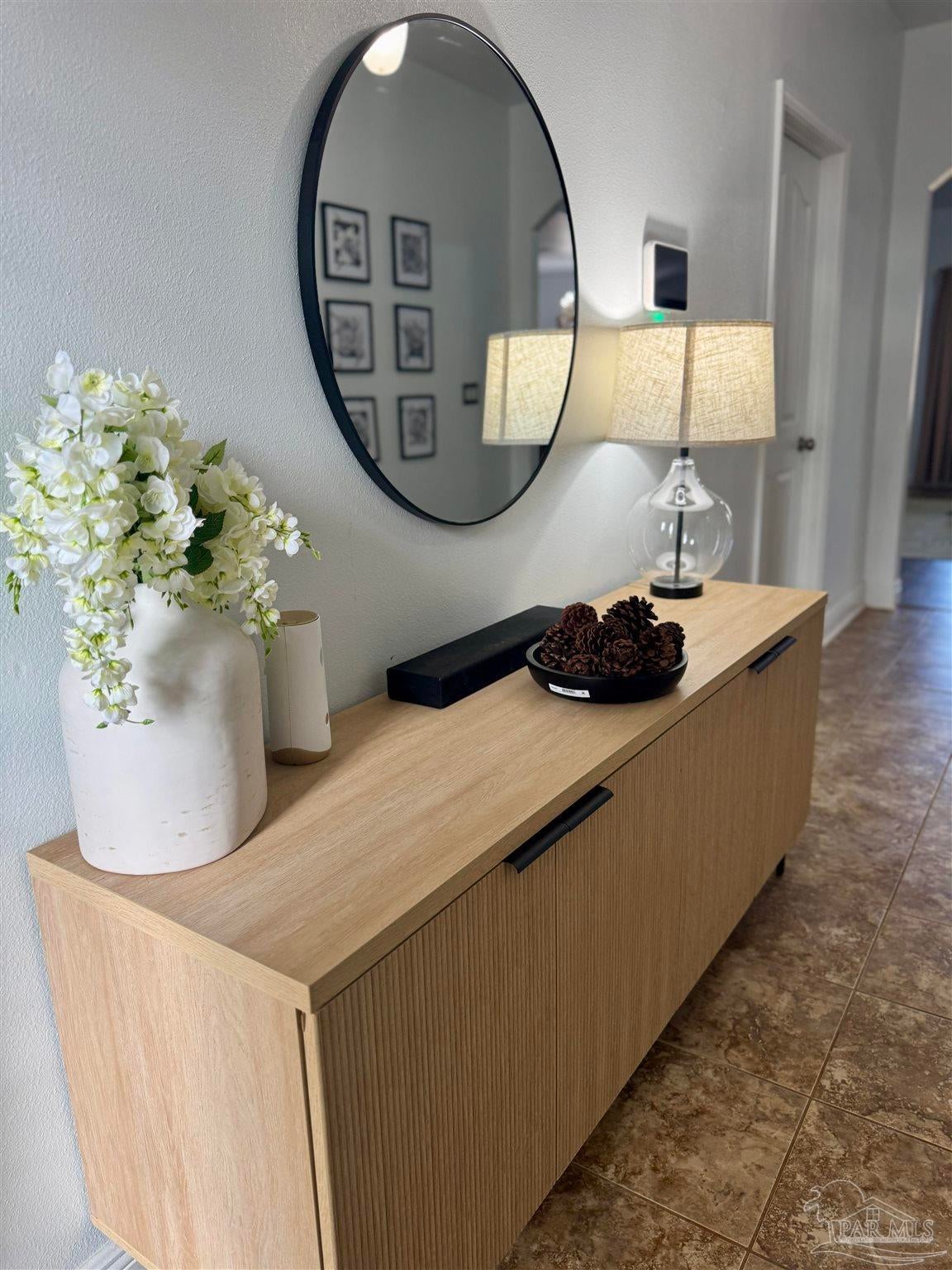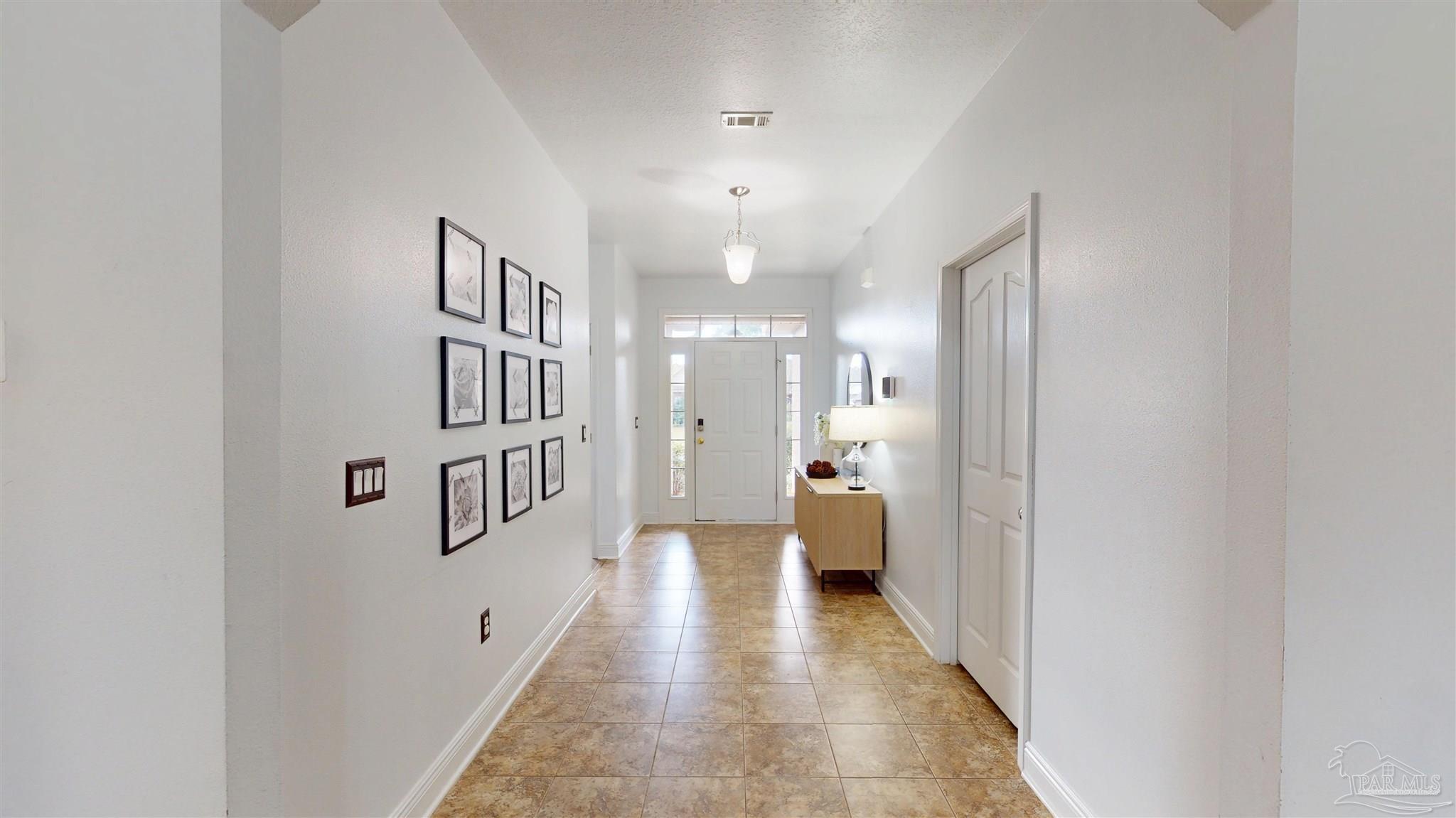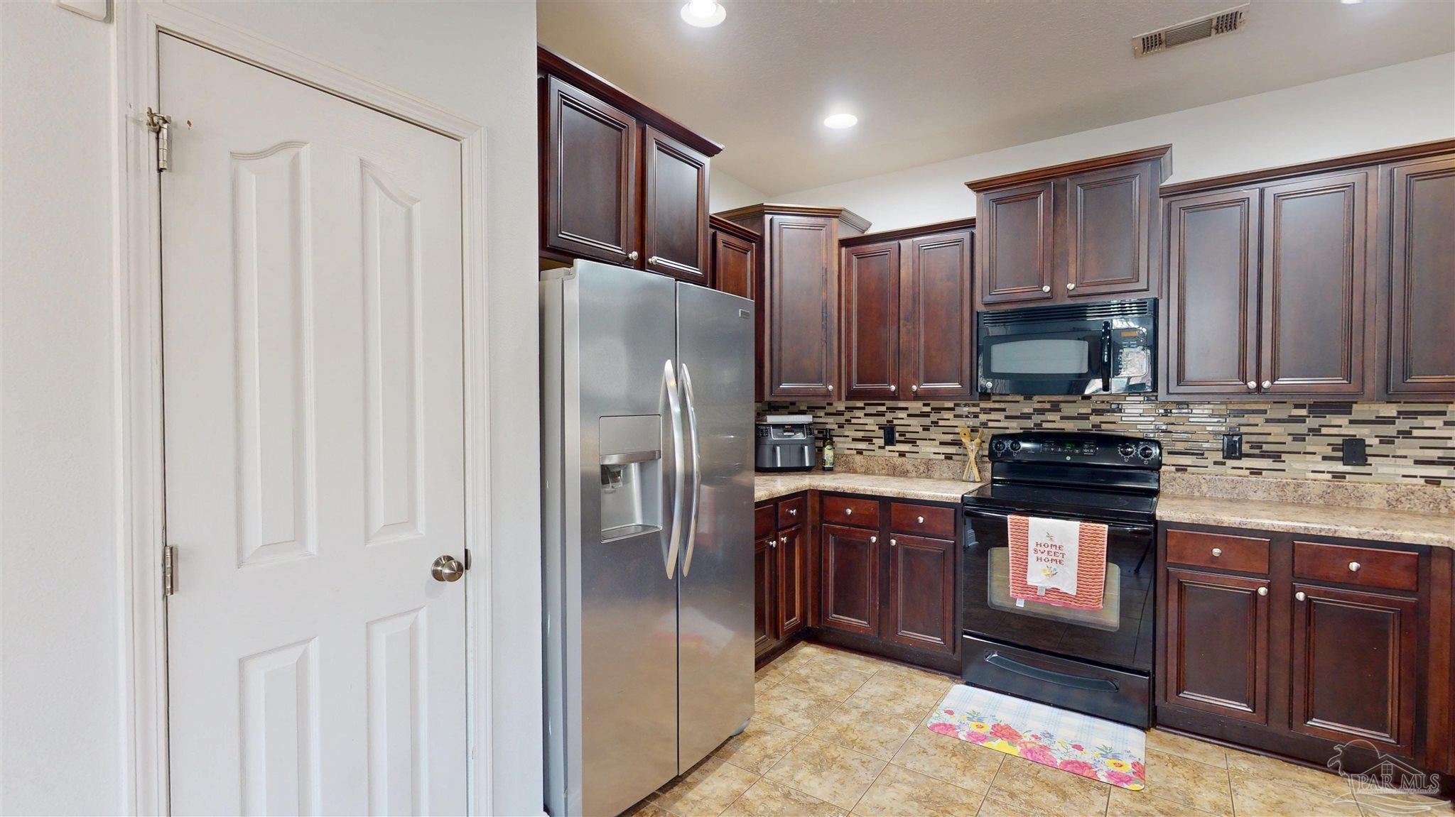 Welcome Home to this gorgeous all brick home in Rustic Ridge! This spacious split plan has ceiling heights from 9' - 13' giving a wonderful open feel! The living room features a vaulted ceiling and newly installed custom electric fireplace for those cozy nights. It is open to the kitchen, complete with hop up bar and dining area. Step into the kitchen & notice the staggered Espresso cabinets with crown molding, brushed nickle pulls and a modern glass tile backsplash! It is a chef's dream with the deep stainless steel double sink with retractable faucet & disposal, large pantry, and lots of recessed lighting. The dining area is spacious and will accommodate a large table & buffet. Step into the spacious main suite at the back of the home & enjoy a large walk-in closet and sitting area. Double windows provide lots of natural light to this space! The master bathroom features a comfort height double vanity, separate shower, garden tub, linen closet and tile flooring. The 2 additional bedrooms are at the front of the home, with the second bath also on this side of the home. Additional features include a 10 X 15 covered lanai, 6' privacy fence, and gutters. Rustic Ridge is just minutes to Whiting Field, medical facilities & major shopping. Short drive to beaches.