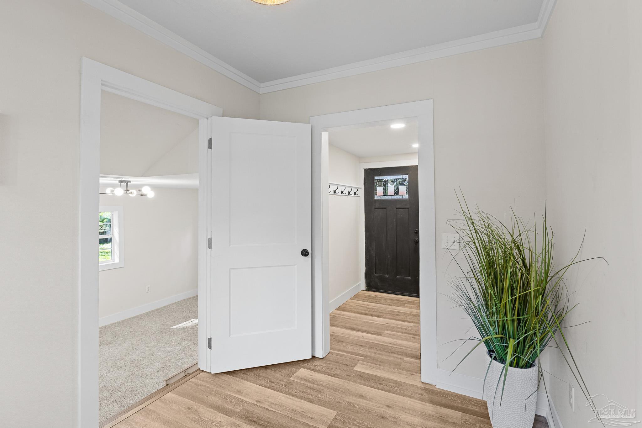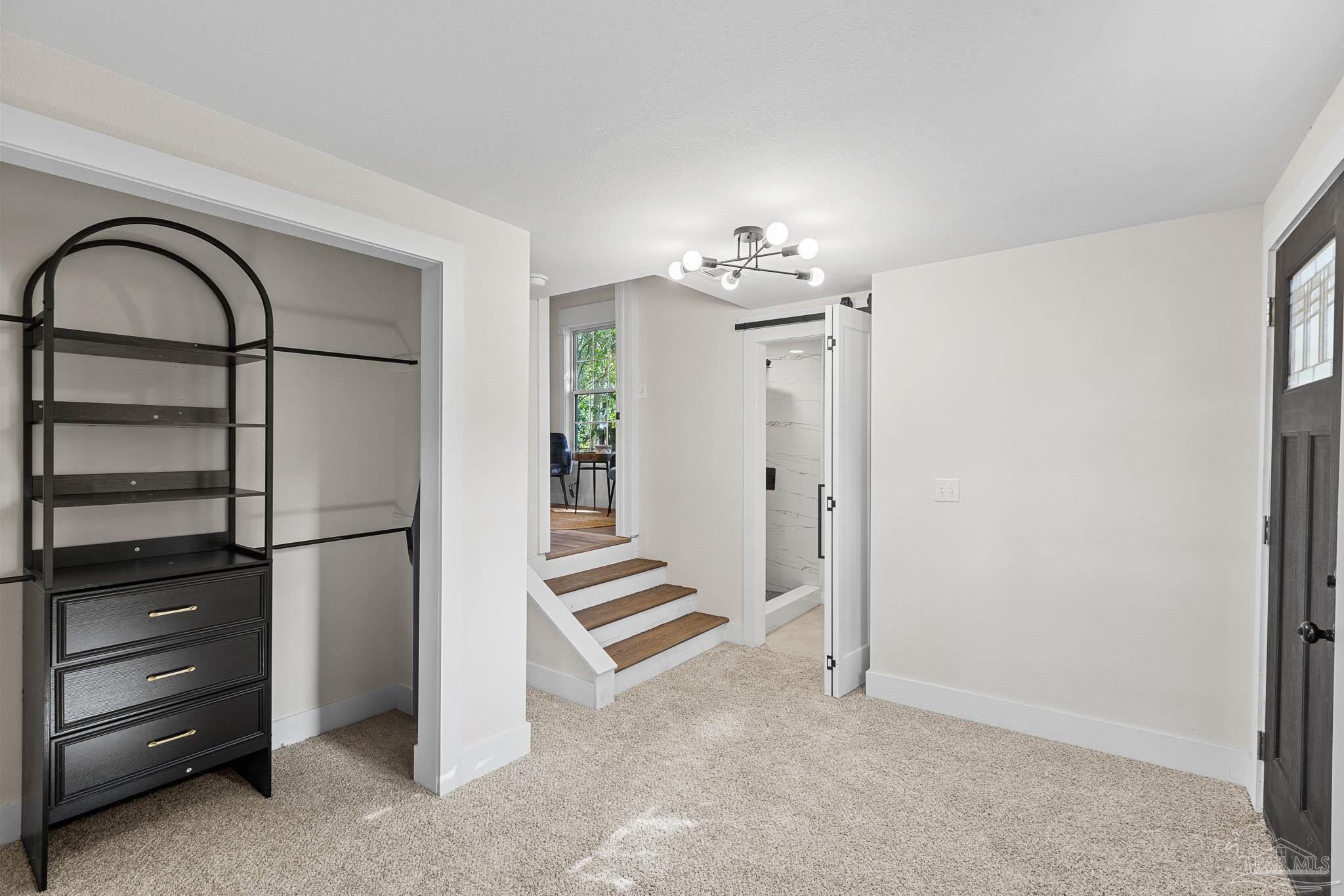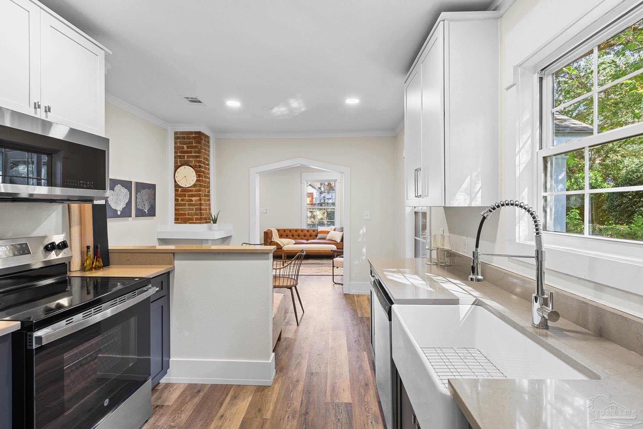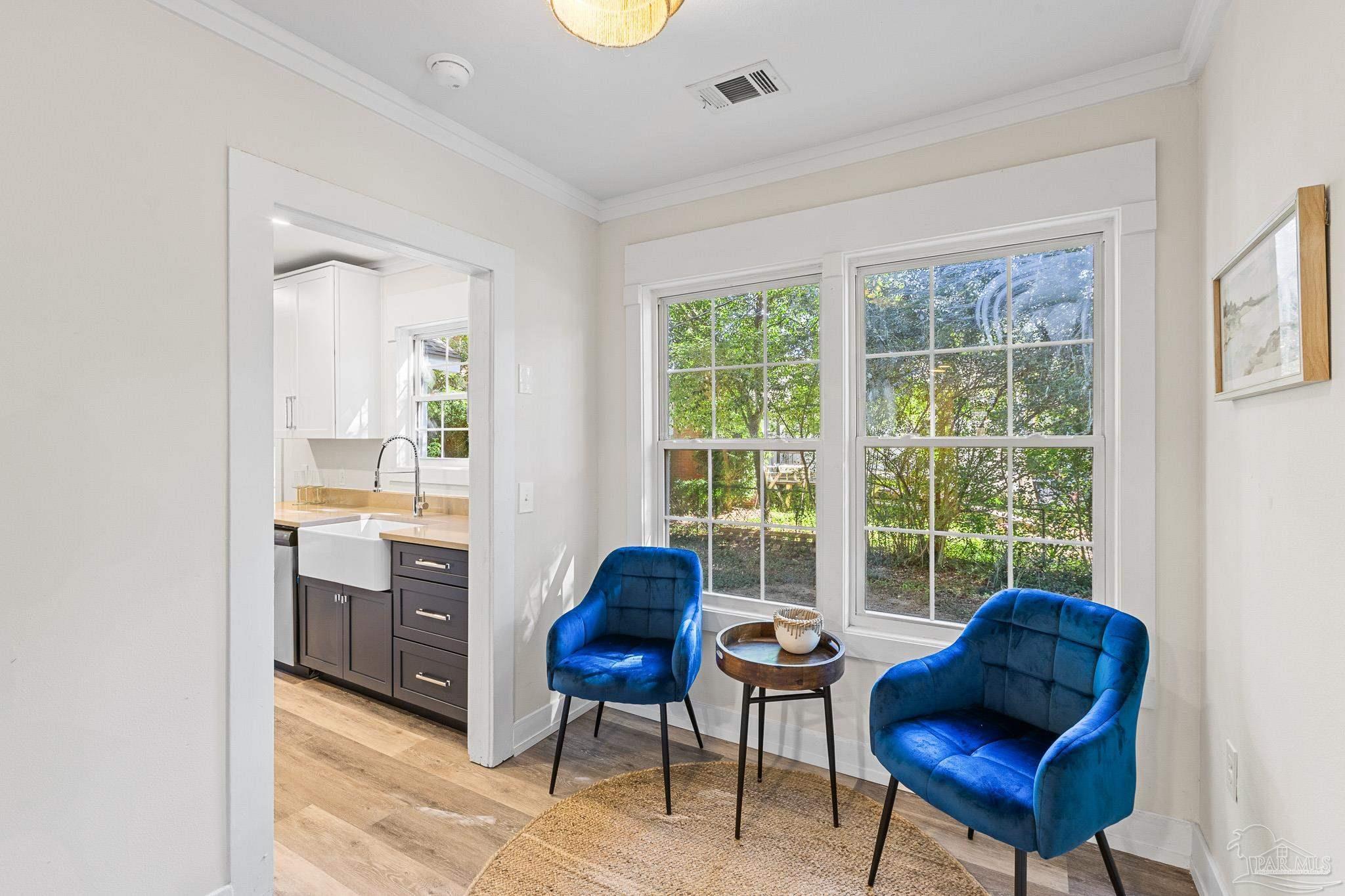 This beautiful, remodeled 3-bedroom, 2-bathroom cottage with office and laundry space, offers a truly magical setting, nestled among mature live oaks that lend a peaceful, enchanting atmosphere. The home skillfully preserves its original charm while being completely updated for today's standard of convenience, low maintenance, and high functionality. Enjoy maximum peace of mind with a new roof and hot water heater, plus a home warranty included! You'll love the screened-in porch located right off the main living room making it the perfect spot to enjoy your morning coffee or let a refreshing breeze flow through the house. The desirable split floor plan features a separate primary suite that features its own exterior entry and ensuite bathroom, giving the home fantastic rental unit potential for an Airbnb short term rental or Mother-in-Law suite. Situated on a quarter-acre lot, this unique cottage is ideally located just 3 miles from downtown, making it a quick bike ride or less than a ten-minute drive, and offers easy access to the nearby base. This is a brilliant chance to make a great investment on the outskirt of the quickly expanding downtown.