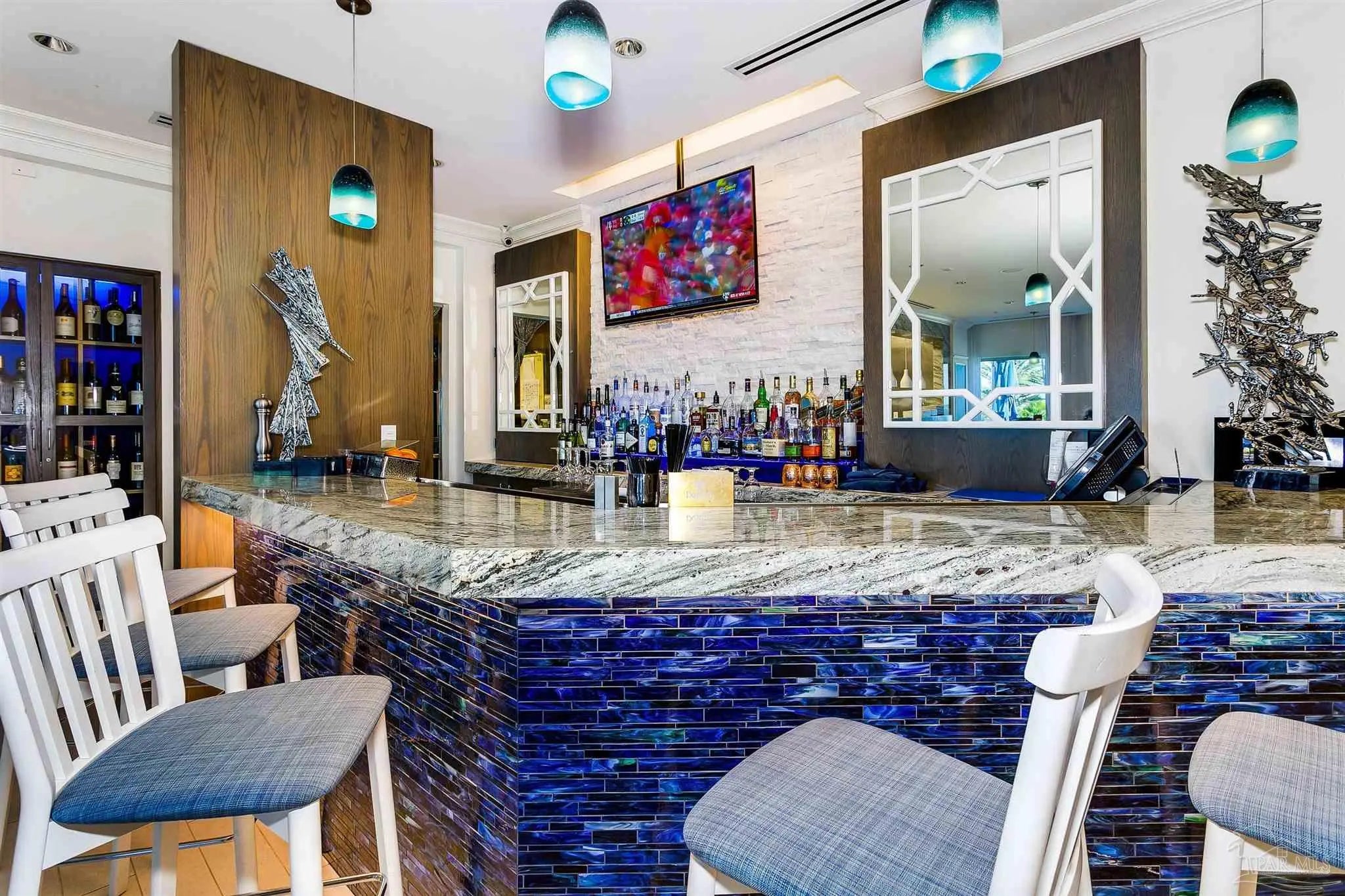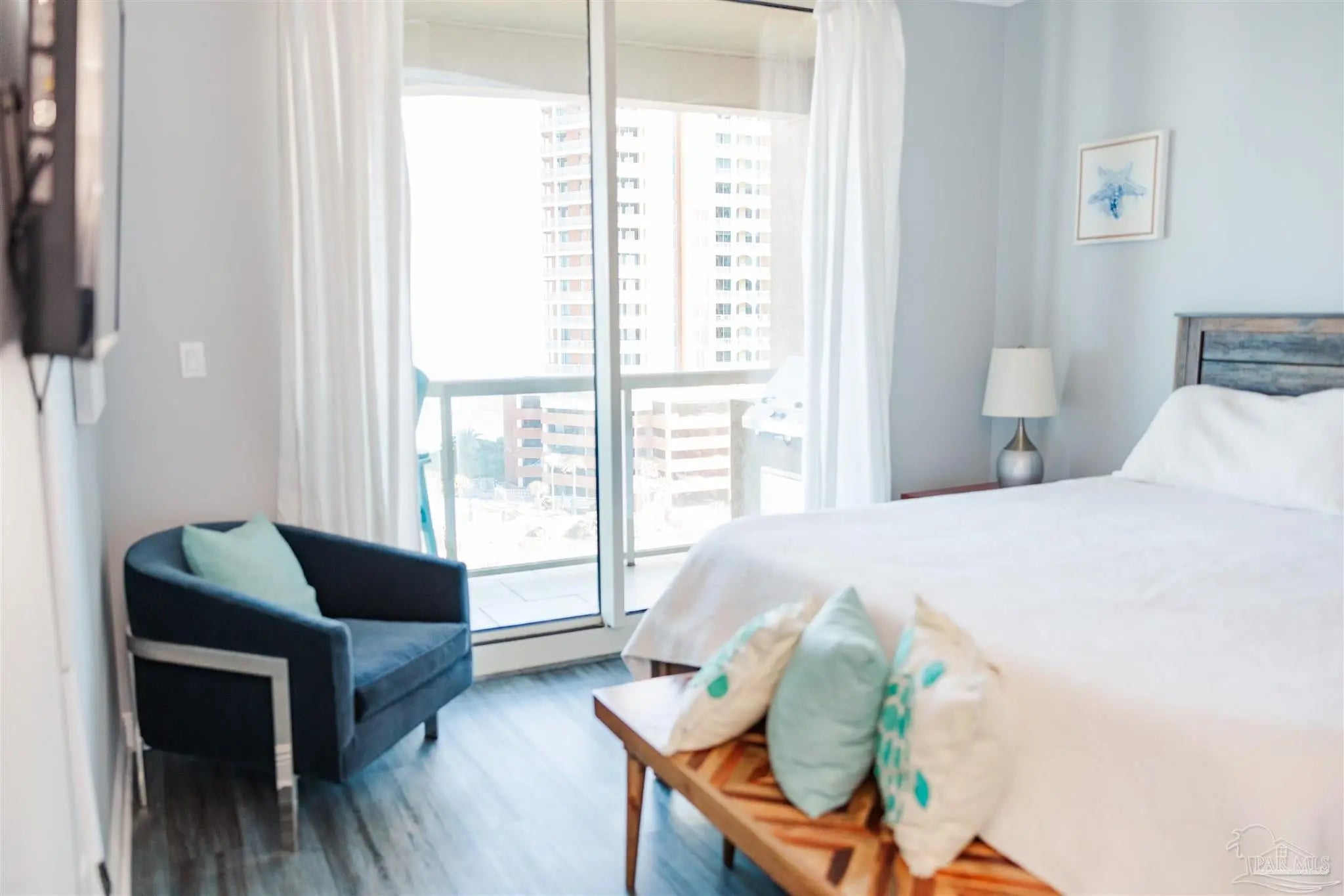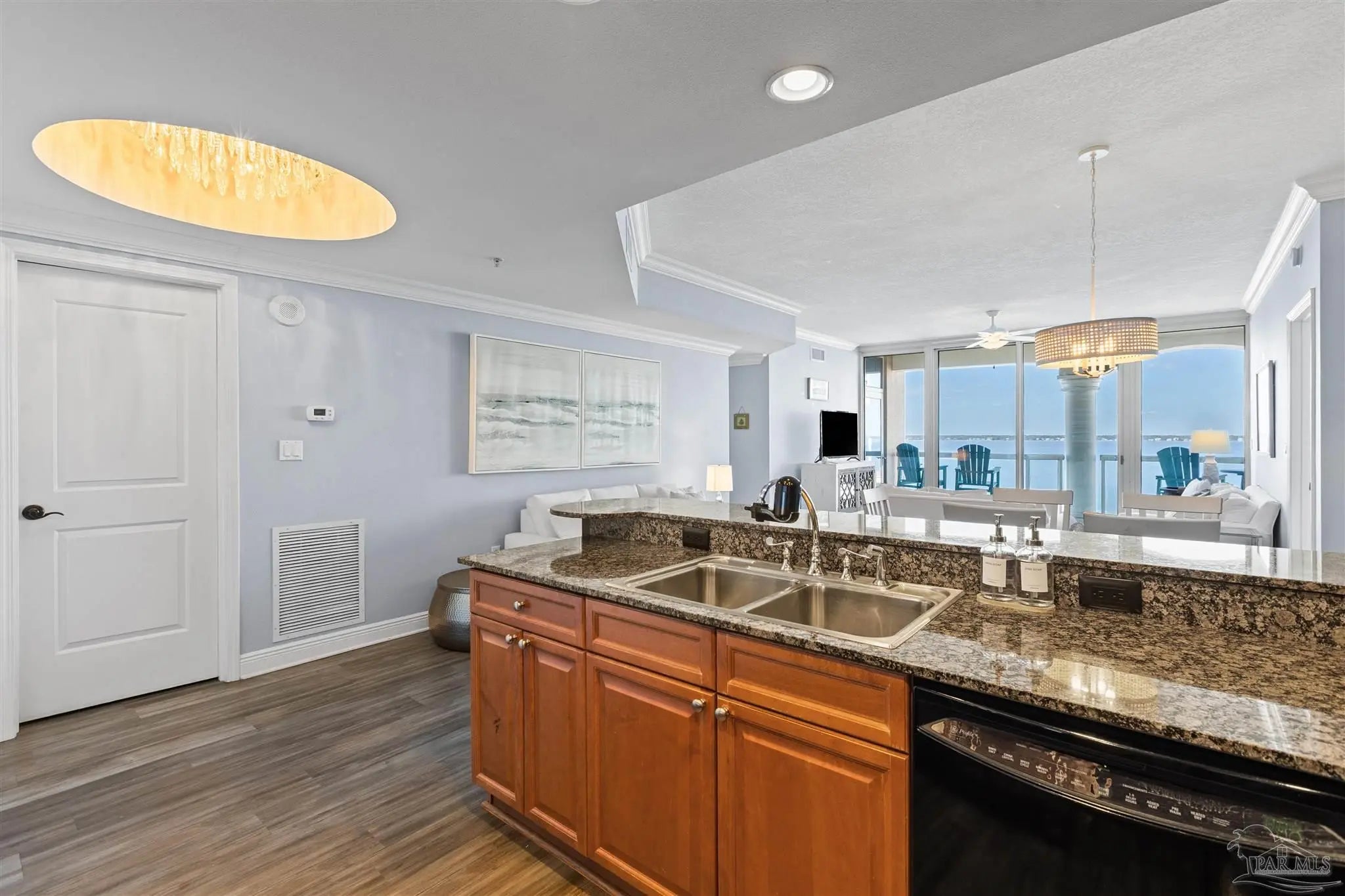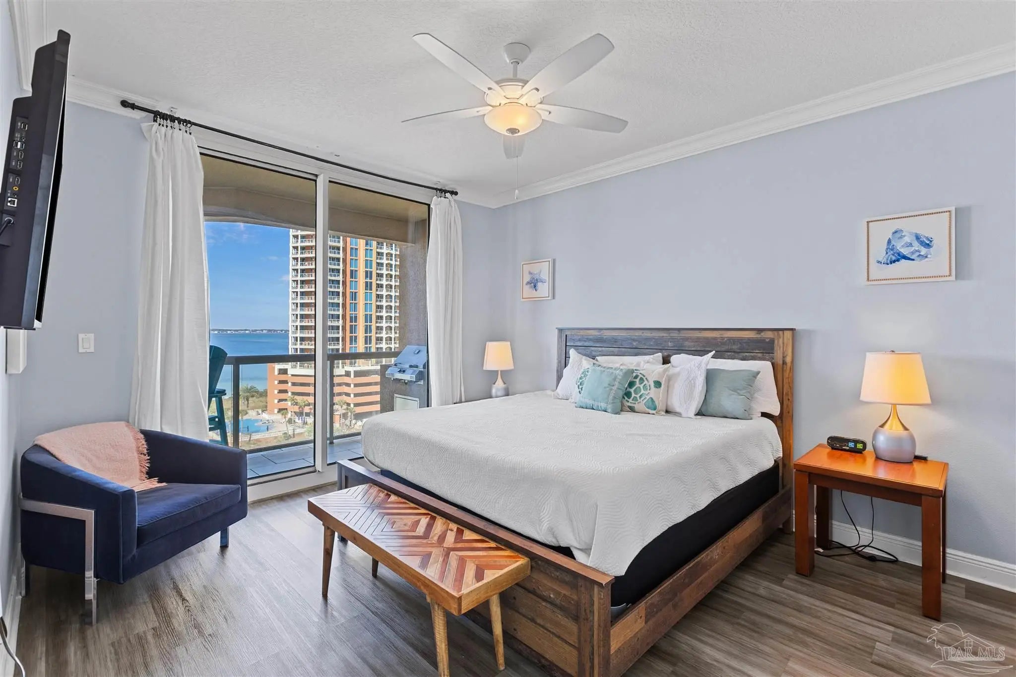 Experience elegant coastal living in this exceptional Portofino Island Resort sky home with sweeping beach-to-bay views, five-star resort amenities, and the unmatched serenity of life above the water. This is a turnkey, high-performing rental, with current bookings to convey if the buyer elects to honor them. This is a rare opportunity for investors to earn substantial rental income and also enjoy the beach lifestyle themselves. In this 8th-floor residence, the open-concept living/dining area is framed by floor-to-ceiling windows showcasing endless views of the Gulf and Santa Rosa Sound. The building’s unique triangular design ensures breathtaking water views from every room. Designed for both convenience and entertaining, the chef-inspired kitchen features granite countertops, rich wood cabinetry, s sleek tile backsplash, and a spacious breakfast bar. Newly remodeled, wood-style tile flows throughout, adding to the ambiance of this coastal retreat. The primary suite offers private balcony access and a spa-like bath with dual vanities, soaking tub, and walk-in shower. The guest suite also enjoys water views and balcony access. Nestled on 28 acres of pristine beach property, Portofino Island Resort delivers an unparalleled resort experience. The 40,000-square-foot Lifestyle Center features a state-of-the-art fitness facility, full-service spa with steam and sauna rooms, an indoor 35-meter lap pool, and two lagoon-style infinity pools overlooking the Intracoastal Waterway. Outdoor recreation includes five lighted Rubico tennis courts, beach and bay water sports, and a catamaran for dolphin and sunset cruises. Enjoy coastal dining at the newly redesigned Coastal Restaurant or casual poolside fare at Al Fresco Bar & Grill. With unmatched amenities, resort-style indulgence, and strong rental performance, this home embodies the ultimate Portofino lifestyle - luxurious, effortless, and captivating. Includes two private covered parking spaces and one storage unit.