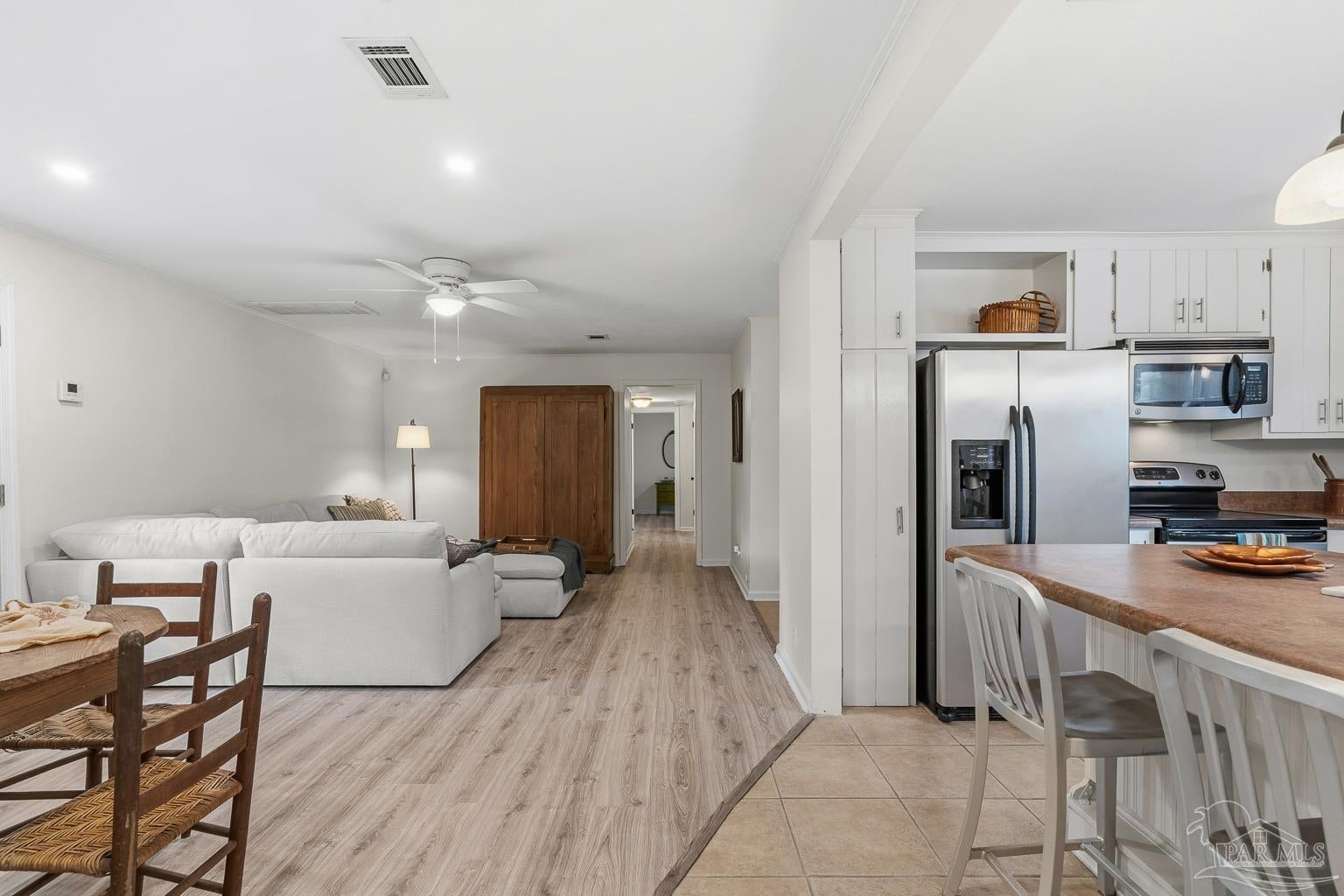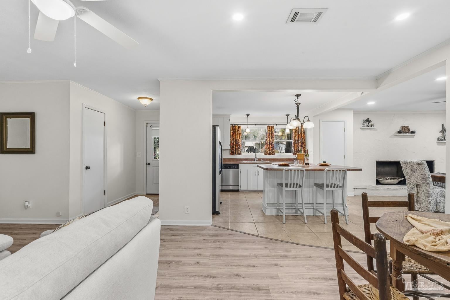 Welcome to this charming, updated single-family home in Milton, FL, ideally located just minutes from historic downtown, Whiting Field NAS (about 15 minutes away), and the Blackwater River boat launch. This move-in-ready property features a bright, open living area with modern flooring and neutral walls, a well-appointed kitchen with green cabinetry, a stylish island, stainless steel appliances, and a stone fireplace, plus a spacious lot surrounded by mature oak trees draped in Spanish moss. Recent upgrades include a new architectural shingle roof that is under warranty and a new 4-ton AC unit, ensuring comfort and efficiency. Inside the home, new wood laminate flooring has been installed as well as fresh paint. With its prime location, classic Southern charm, and ample outdoor space, this Milton gem is perfect for anyone seeking a peaceful yet convenient lifestyle—schedule a showing today!