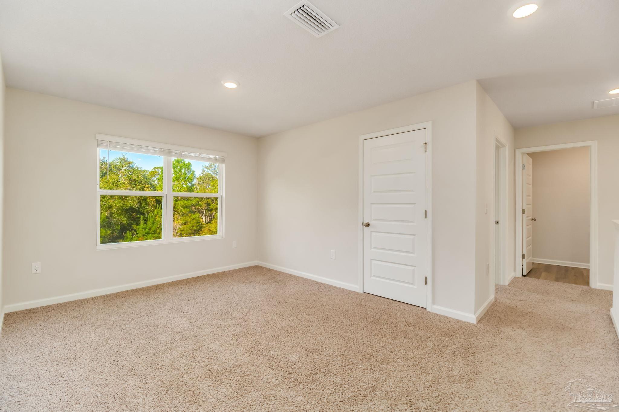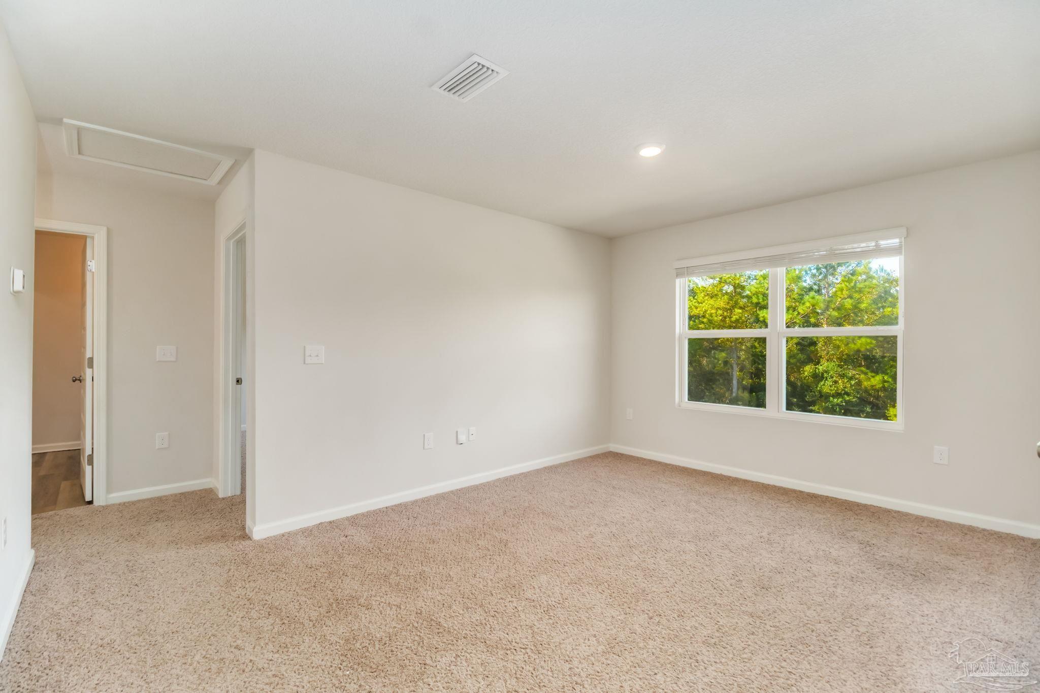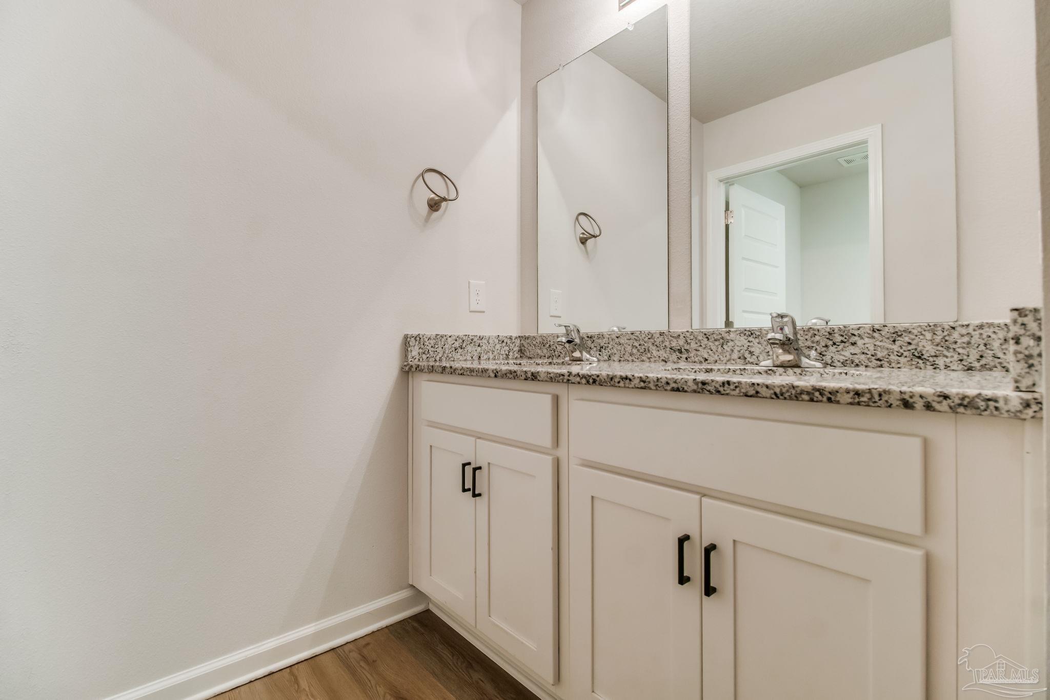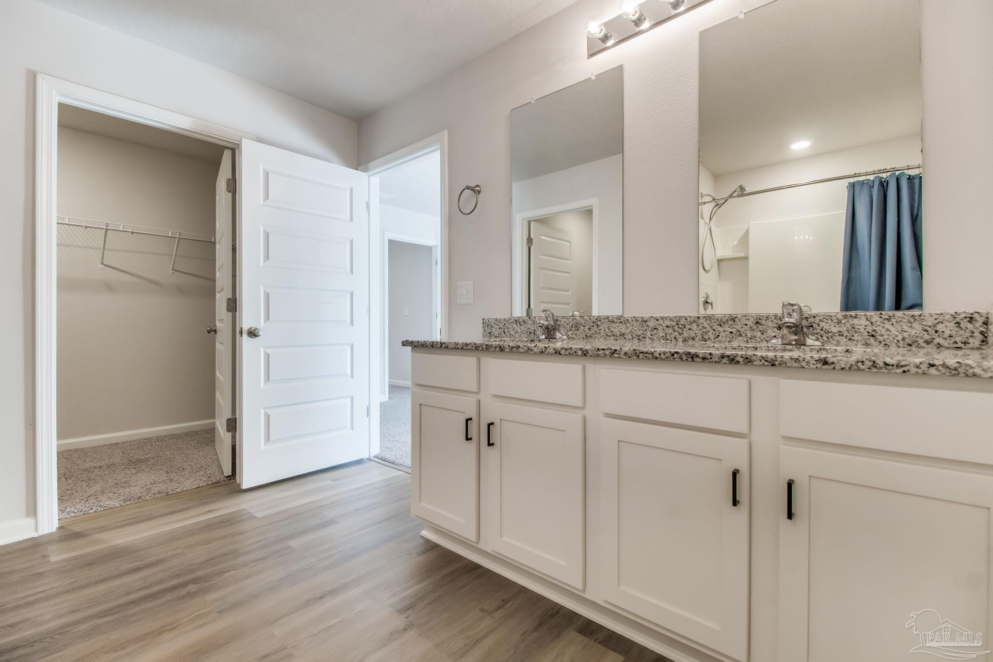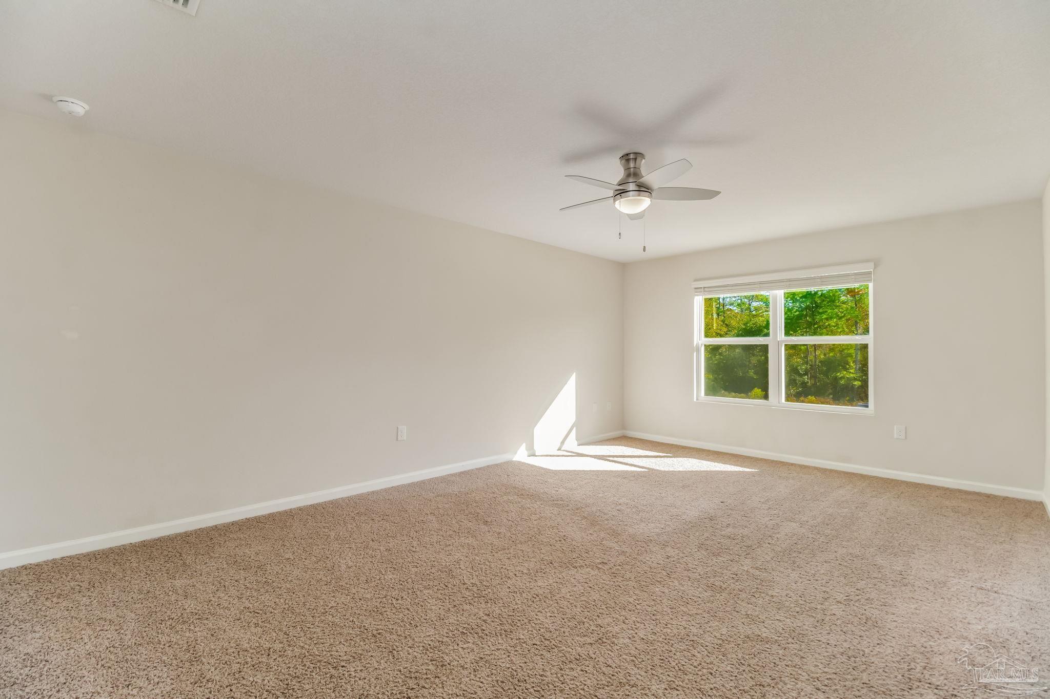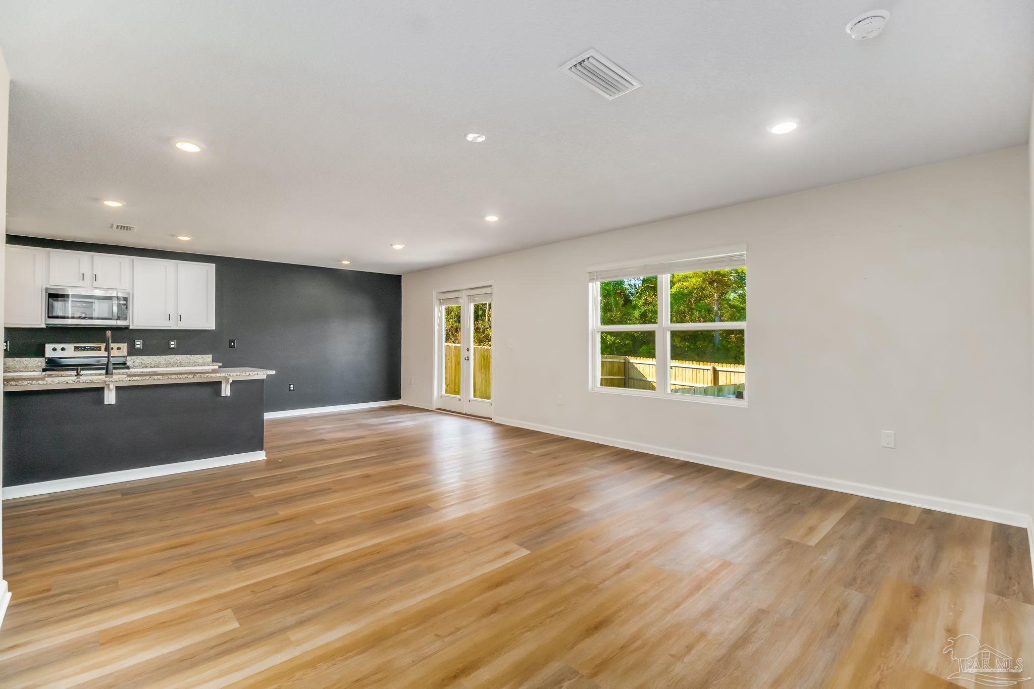 Located on a quiet cul-de-sac near the back entrance of Deer Run, this beautiful 5-bedroom, 3-bath home offers over 2,500 square feet of modern living space with convenience and style. Built in 2022, it features an open floor plan perfect for gatherings, with bright natural light and designer finishes throughout. The stunning kitchen showcases granite countertops, a massive center island with bar seating, stainless steel appliances, and abundant cabinet space, ideal for cooking and entertaining alike. The adjoining living and dining areas flow seamlessly to a raised back patio overlooking the fully fenced backyard and wooded preserve, offering both privacy and charm. Upstairs, the spacious primary suite includes an elegant en-suite bath with dual granite vanities, separate shower, and walk-in closet. Three additional bedrooms, a full bath, laundry room, and bonus living area complete the upper level. A fifth bedroom and third full bath on the main floor provide an ideal setup for guests or multigenerational living. Enjoy access to Deer Run’s community amenities including a sparkling pool, outdoor grills, and cabana area. With easy access to shopping, I-10, and Navy Federal Credit Union, this home combines luxury, space, and location, all in one beautiful package. Call today to schedule your private tour!