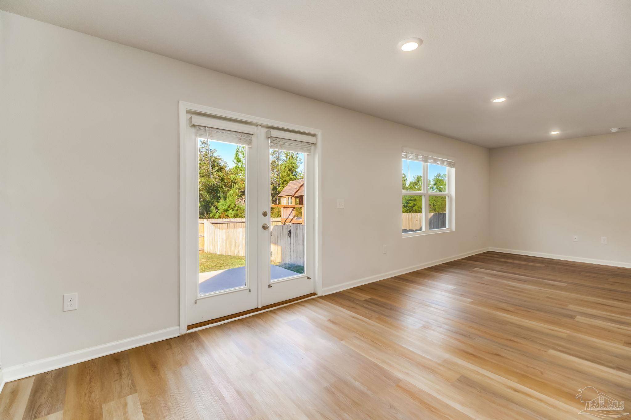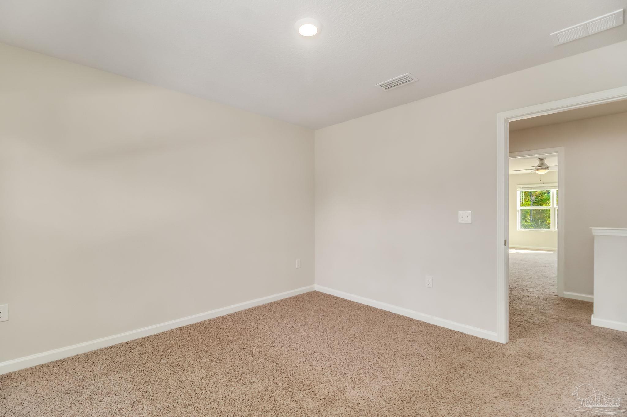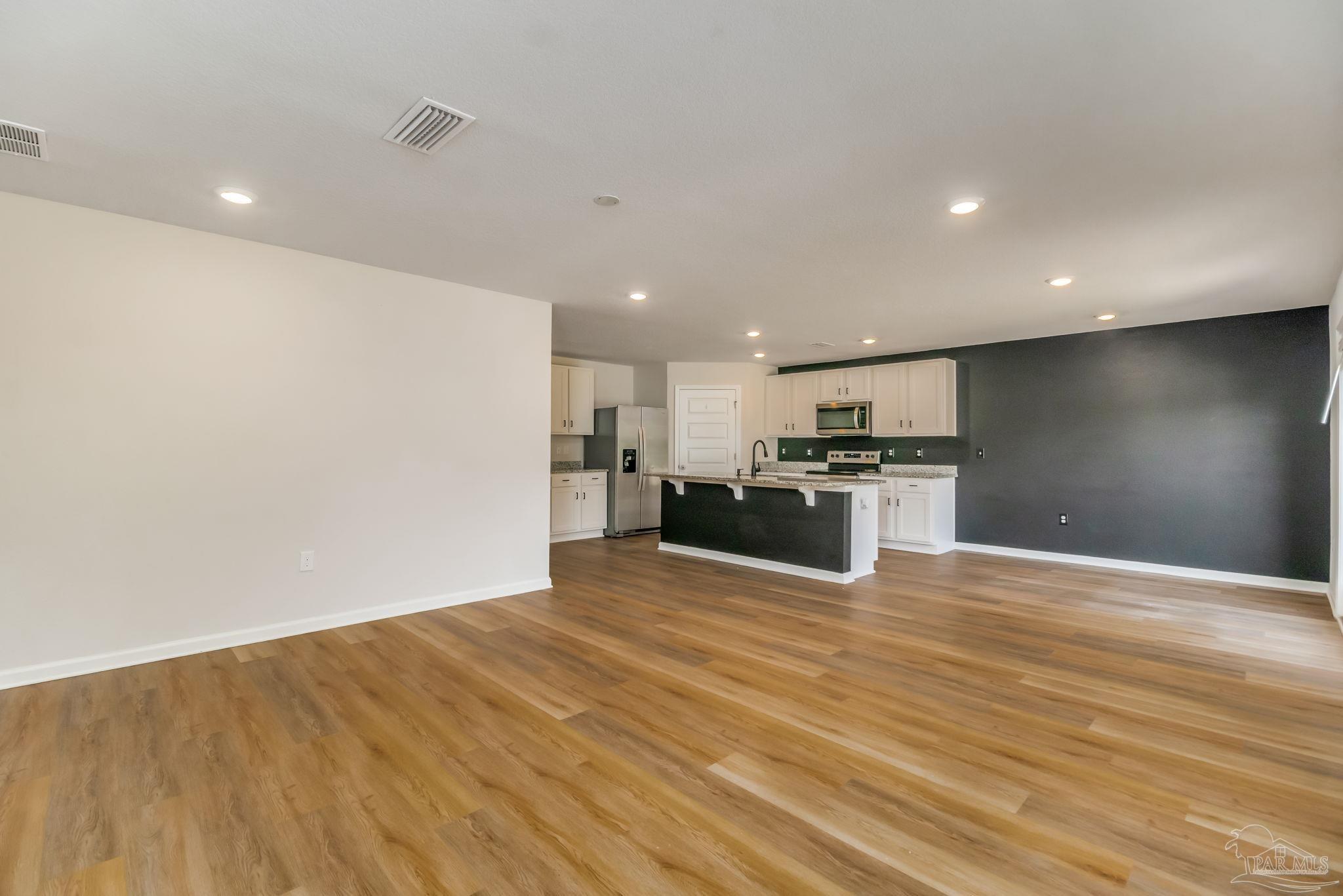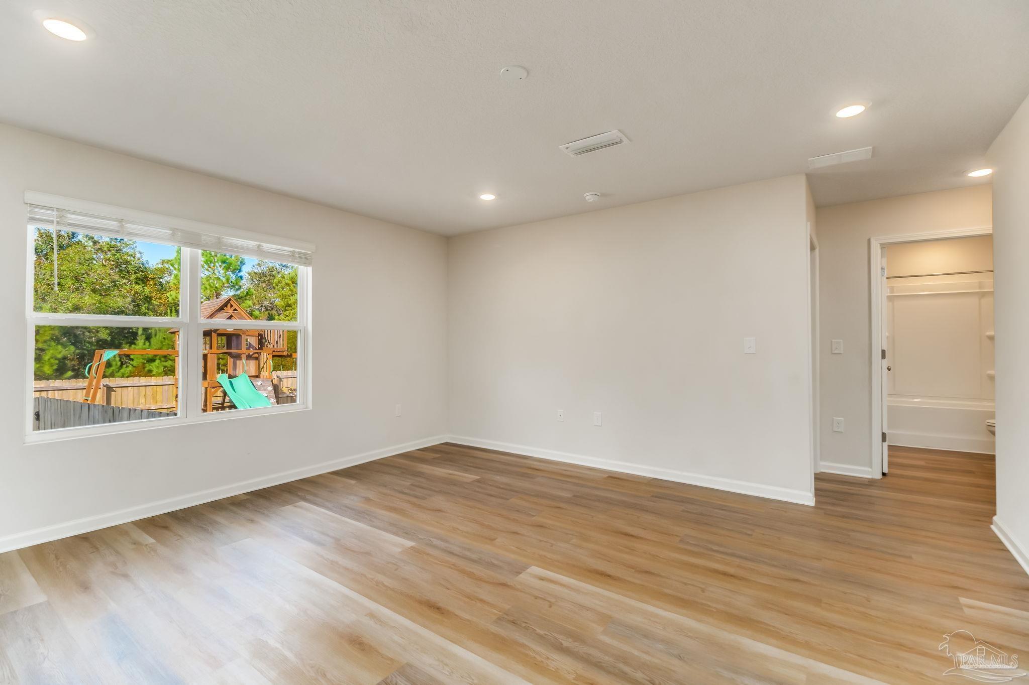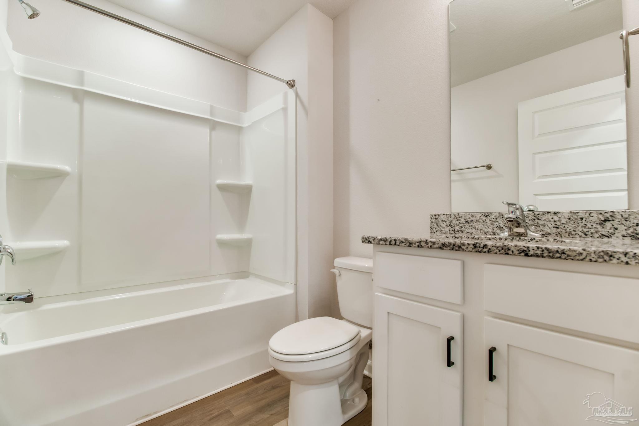 Located on a quiet cul-de-sac near the back entrance of Deer Run, this beautiful 5-bedroom, 3-bath home offers over 2,500 square feet of modern living space with convenience and style. Built in 2022, it features an open floor plan perfect for gatherings, with bright natural light and designer finishes throughout. The stunning kitchen showcases granite countertops, a massive center island with bar seating, stainless steel appliances, and abundant cabinet space, ideal for cooking and entertaining alike. The adjoining living and dining areas flow seamlessly to a raised back patio overlooking the fully fenced backyard and wooded preserve, offering both privacy and charm. Upstairs, the spacious primary suite includes an elegant en-suite bath with dual granite vanities, separate shower, and walk-in closet. Three additional bedrooms, a full bath, laundry room, and bonus living area complete the upper level. A fifth bedroom and third full bath on the main floor provide an ideal setup for guests or multigenerational living. Enjoy access to Deer Run’s community amenities including a sparkling pool, outdoor grills, and cabana area. With easy access to shopping, I-10, and Navy Federal Credit Union, this home combines luxury, space, and location, all in one beautiful package. Call today to schedule your private tour!