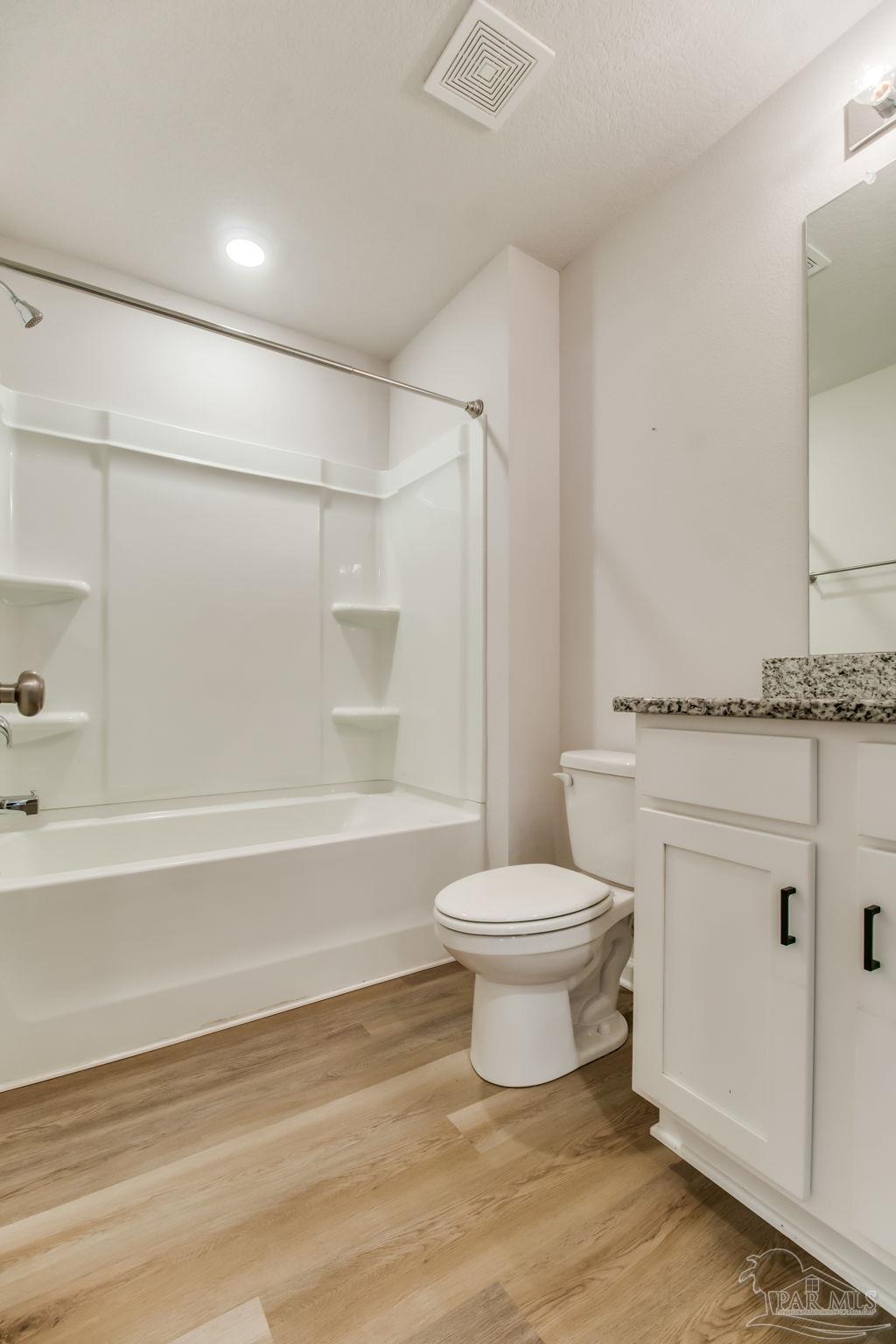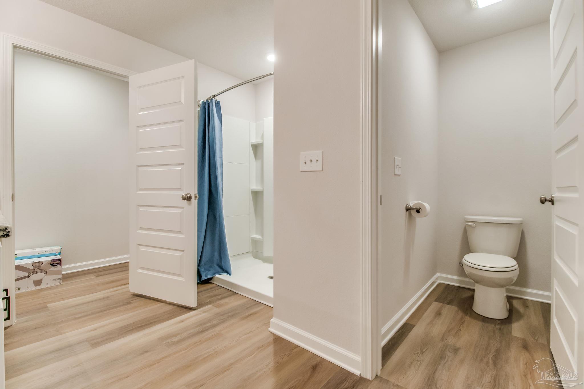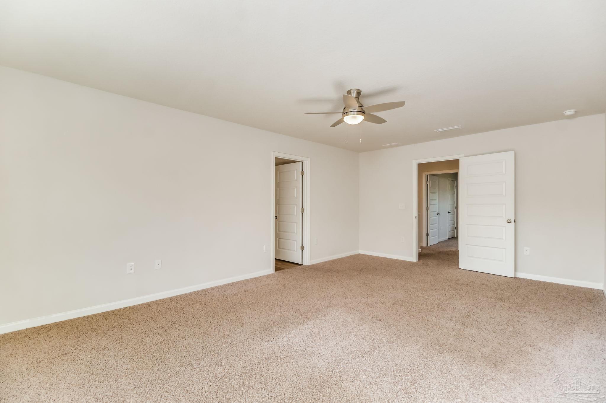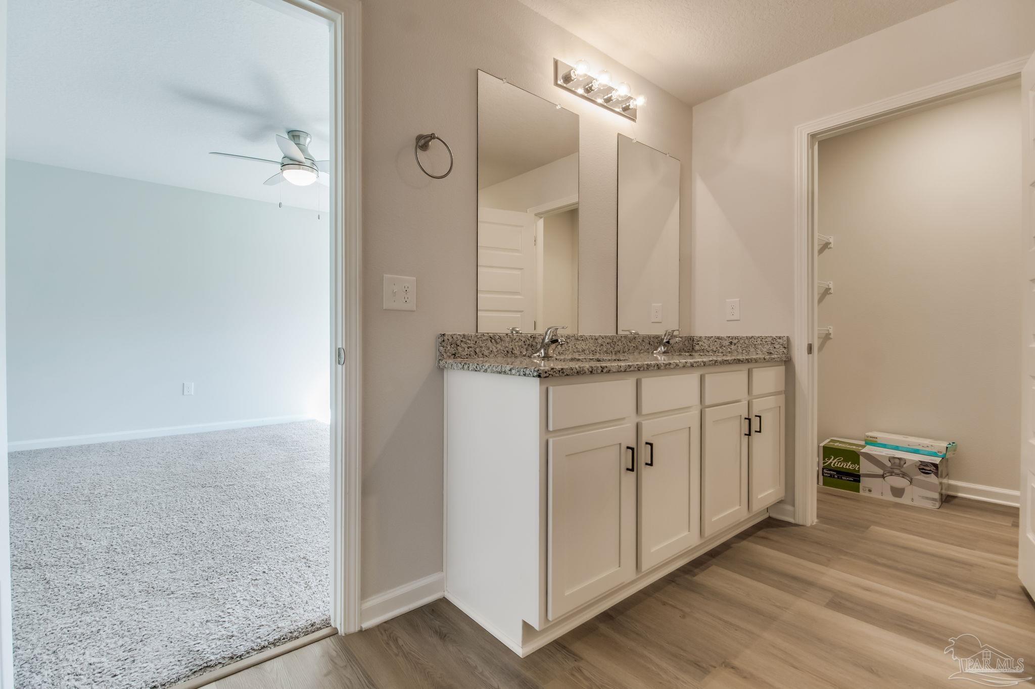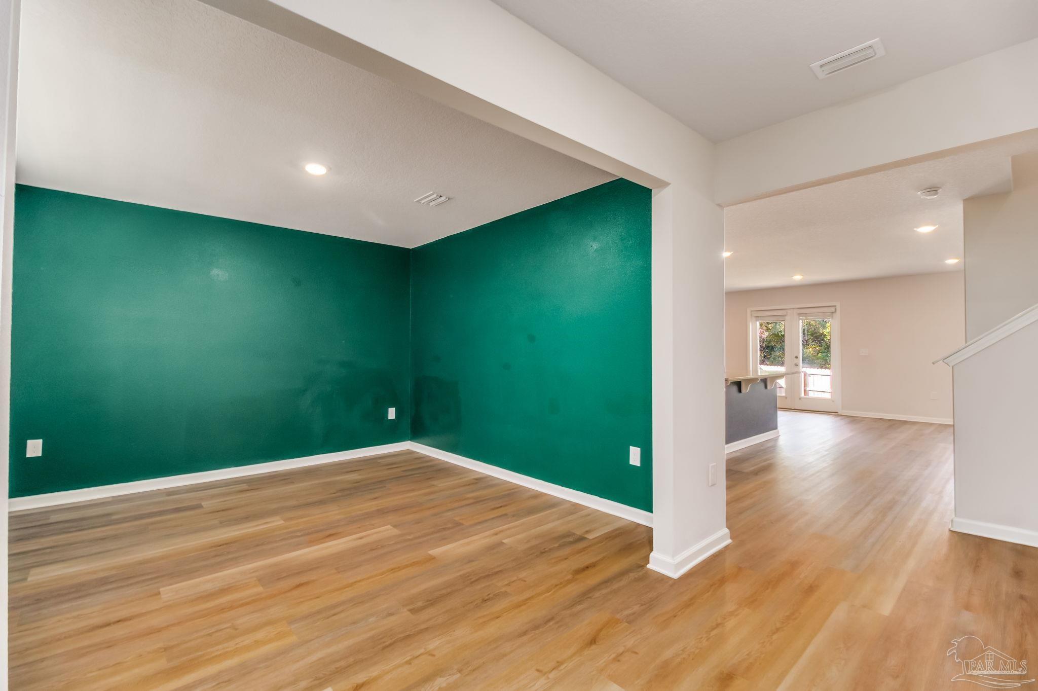 Located on a quiet cul-de-sac near the back entrance of Deer Run, this beautiful 5-bedroom, 3-bath home offers over 2,500 square feet of modern living space with convenience and style. Built in 2022, it features an open floor plan perfect for gatherings, with bright natural light and designer finishes throughout. The stunning kitchen showcases granite countertops, a massive center island with bar seating, stainless steel appliances, and abundant cabinet space, ideal for cooking and entertaining alike. The adjoining living and dining areas flow seamlessly to a raised back patio overlooking the fully fenced backyard and wooded preserve, offering both privacy and charm. Upstairs, the spacious primary suite includes an elegant en-suite bath with dual granite vanities, separate shower, and walk-in closet. Three additional bedrooms, a full bath, laundry room, and bonus living area complete the upper level. A fifth bedroom and third full bath on the main floor provide an ideal setup for guests or multigenerational living. Enjoy access to Deer Run’s community amenities including a sparkling pool, outdoor grills, and cabana area. With easy access to shopping, I-10, and Navy Federal Credit Union, this home combines luxury, space, and location, all in one beautiful package. Call today to schedule your private tour!