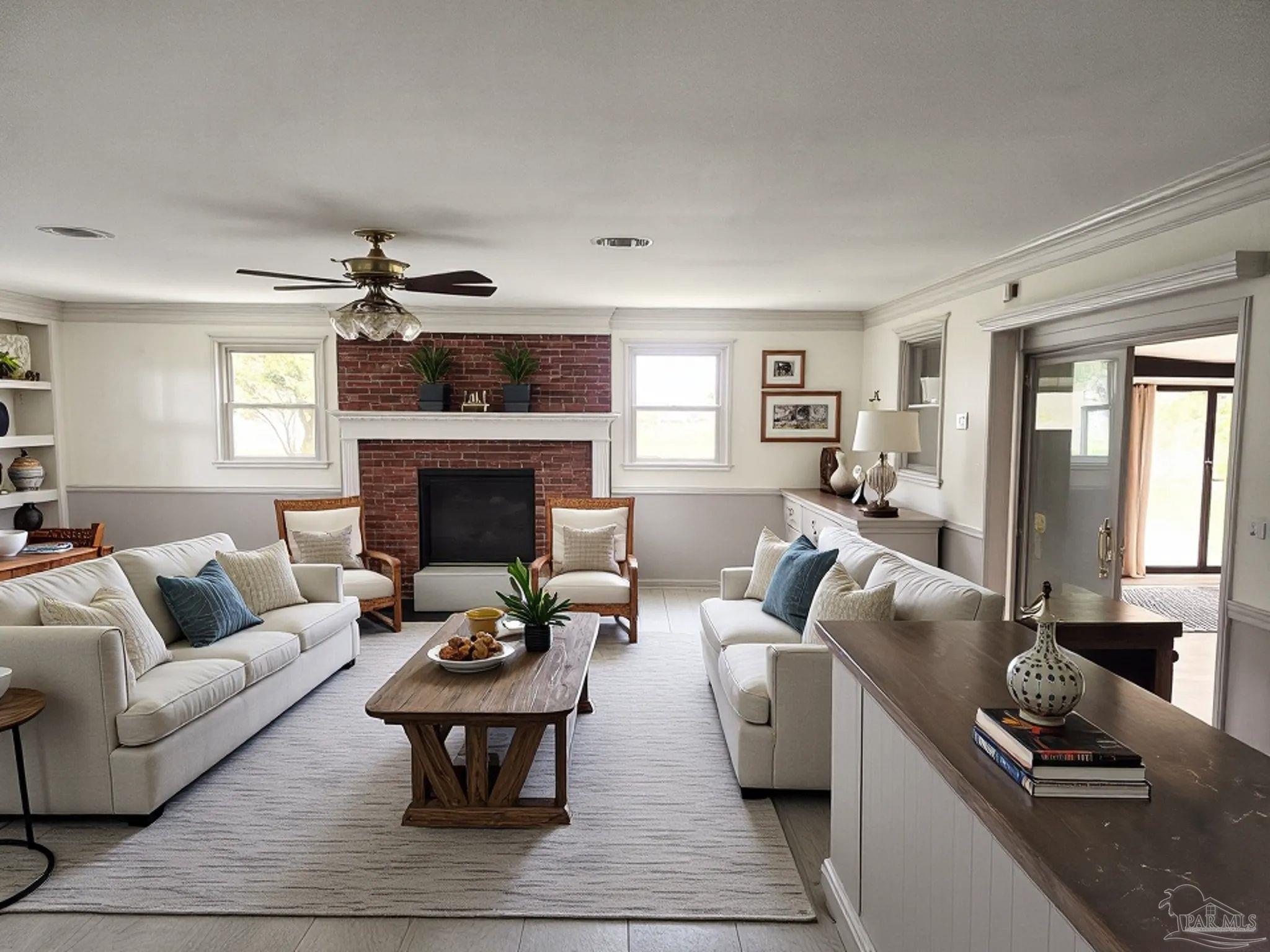 Welcome to this spacious 2-bedroom, 2-bath brick home set on a beautiful one-acre lot with mature trees and plenty of room to spread out. This property offers solid bones, generous living areas, and endless possibilities for updates and personalization. Inside, you’ll find a large family room with a brick fireplace, perfect for cozy gatherings, and an enclosed Florida room featuring a gas fireplace and kitchenette, ideal for entertaining. The home also includes an eat-in kitchen, two full bathrooms, and ample storage throughout. Enjoy the peaceful outdoor setting from the screened porch or the expansive backyard, complete with a detached carport and workshop/storage area. The property provides plenty of space for gardening, hobbies, or future expansion. With a little TLC, this home could shine again — whether you’re looking for your next investment, a family residence, or a rental property. Conveniently located just minutes from The Navy Federal Campus, shopping, dining, and schools, this is a great opportunity to own a solid home on a large lot in a desirable area.
