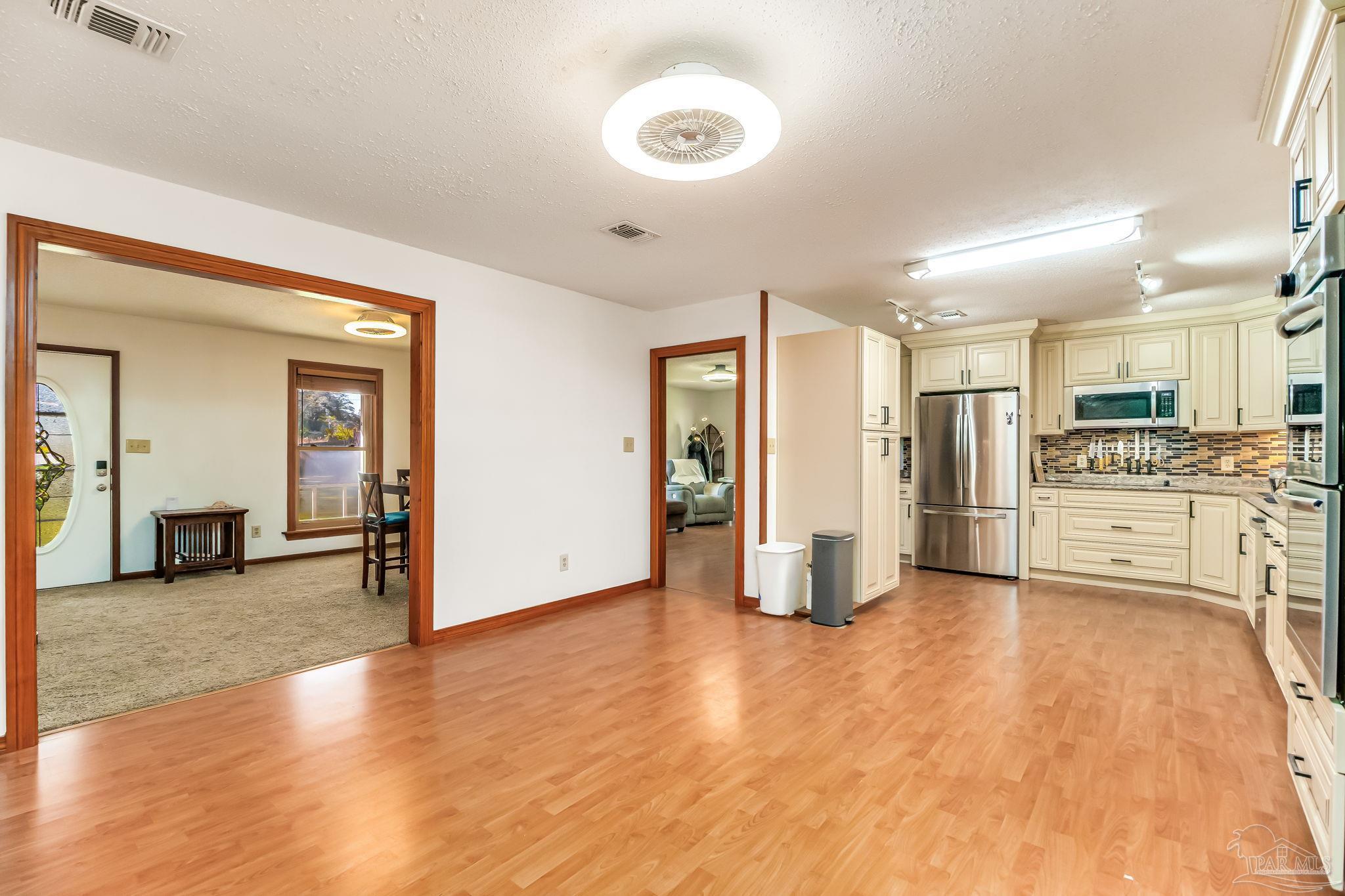 Welcome to this charming 4-bedroom, 2-bath brick home offering 2,179 square feet of comfortable living on 1.7 acres in the heart of Pace. Surrounded by gorgeous century-old oaks, this property blends privacy, space, and modern updates with everyday convenience. Inside, you’ll find a bright, welcoming layout with both a large family room and a flexible additional living area perfect for an office, playroom, or media space. The spacious, stylish kitchen features stainless steel appliances, updated cabinetry, and plenty of room for cooking and gathering. Outside, the expansive, beautiful yard offers endless room to spread out, and the oversized detached garage provides excellent storage and workshop potential. All just minutes from shopping, restaurants, and a short drive to Pensacola Beach. Schedule your showing today!