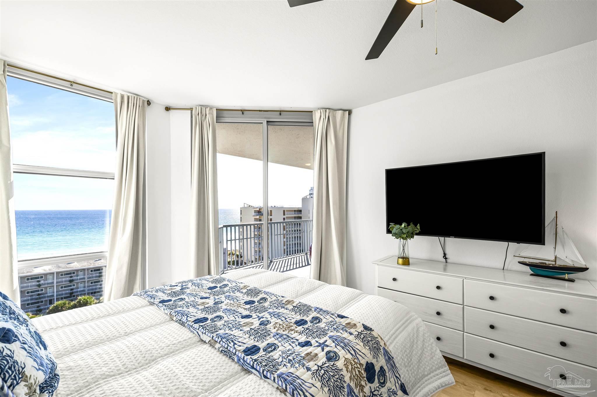 Wake Up to Coastal Bliss: Luxurious 10th-Floor Condo at Emerald Dolphin Wake up to breathtaking sunrises and unwind with stunning sunsets from this 10th-floor condo in the prestigious Emerald Dolphin community. Enjoy panoramic views of the Gulf of Mexico where dolphins play, eagles soar, and you’ll have front-row seats to the iconic Blue Angels Air Show. These gorgeous Gulf views extend seamlessly into the kitchen, living room, dining area, and bedrooms, while the front balcony offers additional Sound views. This spacious 2-bedroom, 2-bath residence is designed for comfort and elegance. The master suite features dual vanities, a jetted tub, separate shower, walk-in closet, and 9-foot ceilings. Enjoy the timeless sophistication of neutral paint tones, solid-surface countertops, and brand-new luxury flooring throughout, adding a fresh coastal-modern feel to every room. Sold fully furnished and with a projected rental income of $85,000+ annually, this property is ideal as a luxurious beach retreat or high-performing investment. Residents enjoy resort-style amenities including a sparkling pool, hot tub, fitness center, and secure gated access. Added conveniences include covered parking, climate-controlled storage, and direct access to the sugar-white sands and emerald waters of the Gulf. Built in 2006, Emerald Dolphin is one of Pensacola Beach’s newer developments, and 2024 renovations have elevated its appeal even further—with a resurfaced and repainted exterior, new roof, upgraded windows and doors, resurfaced pool and garage, and enhanced exterior lighting. This move-in-ready condo perfectly blends luxury, convenience, and investment potential.