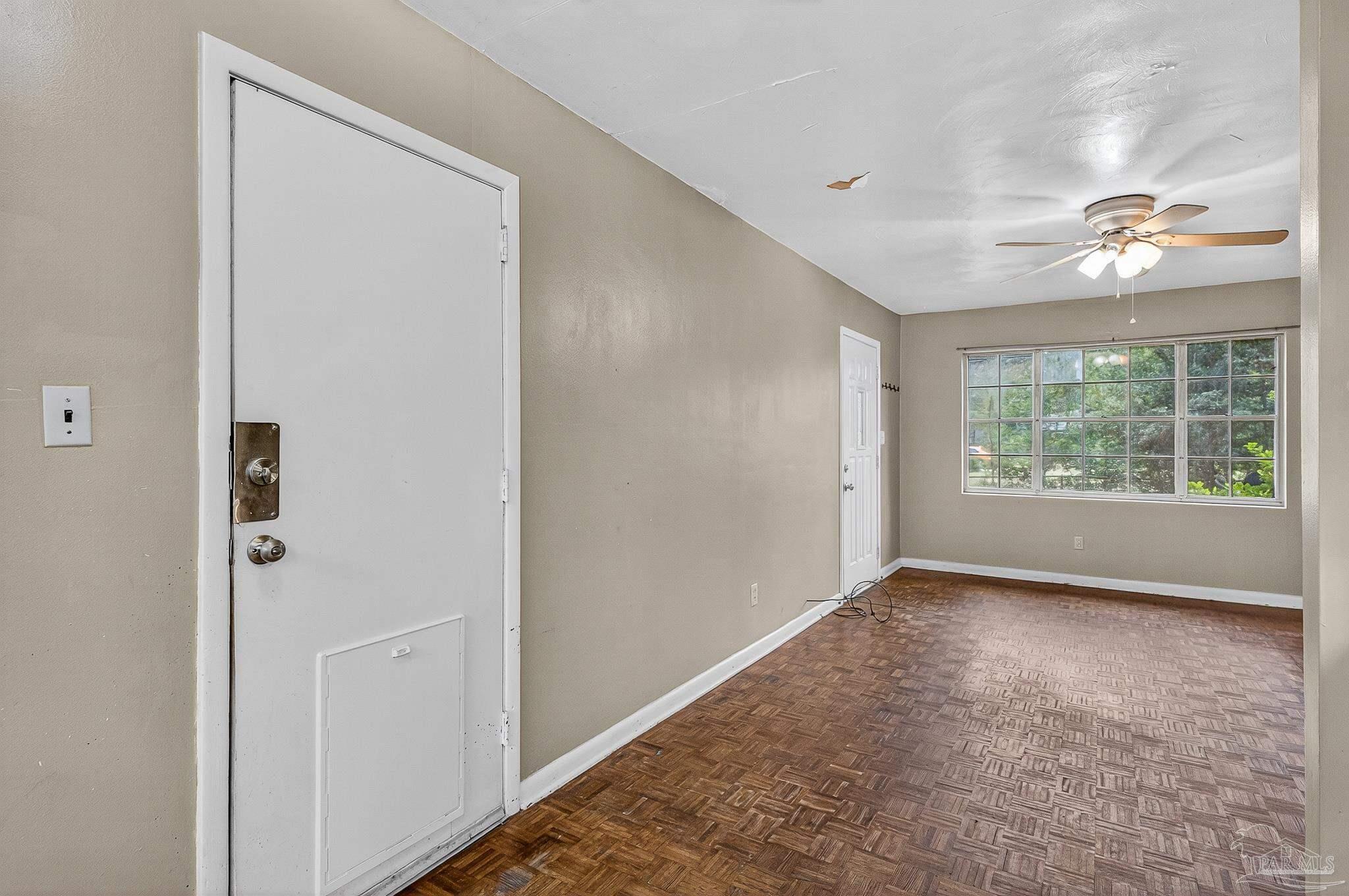 Opportunity knocks! Long term investment or a primary residence.. This Three Bedroom, Two Bathroom home features wood parquet flooring in the main areas and bedrooms. The Kitchen features vinyl flooring and there is tile flooring in the bathrooms. The home does need some maintainence done but is a solid home for the next buyer! The carport features the laundry room and additional storage!