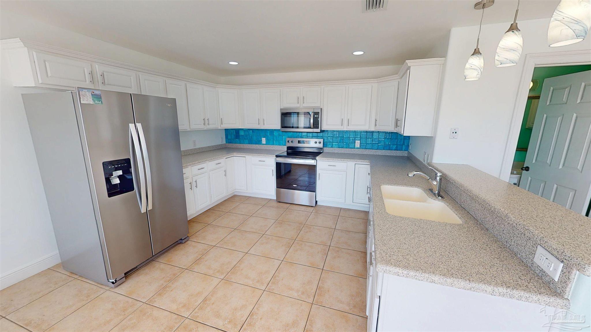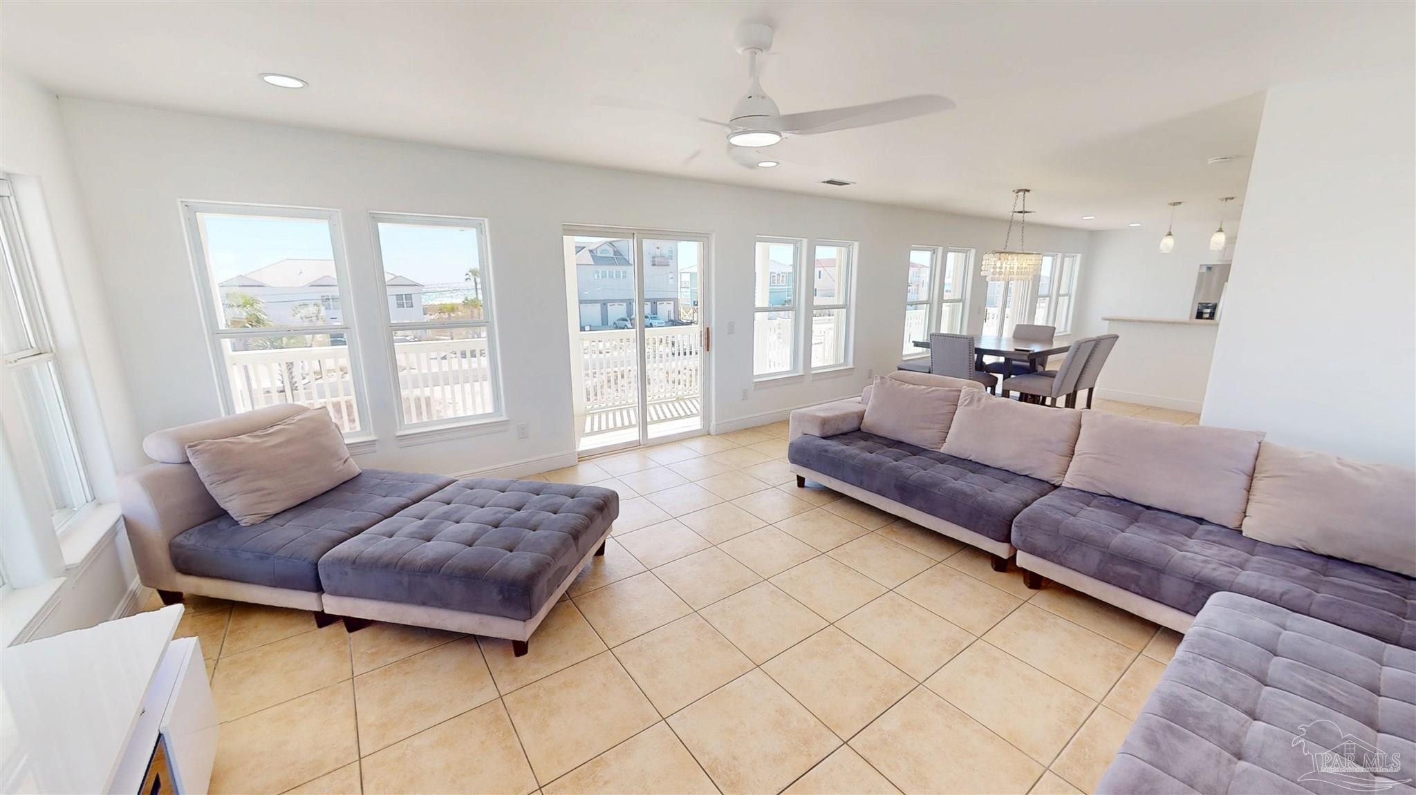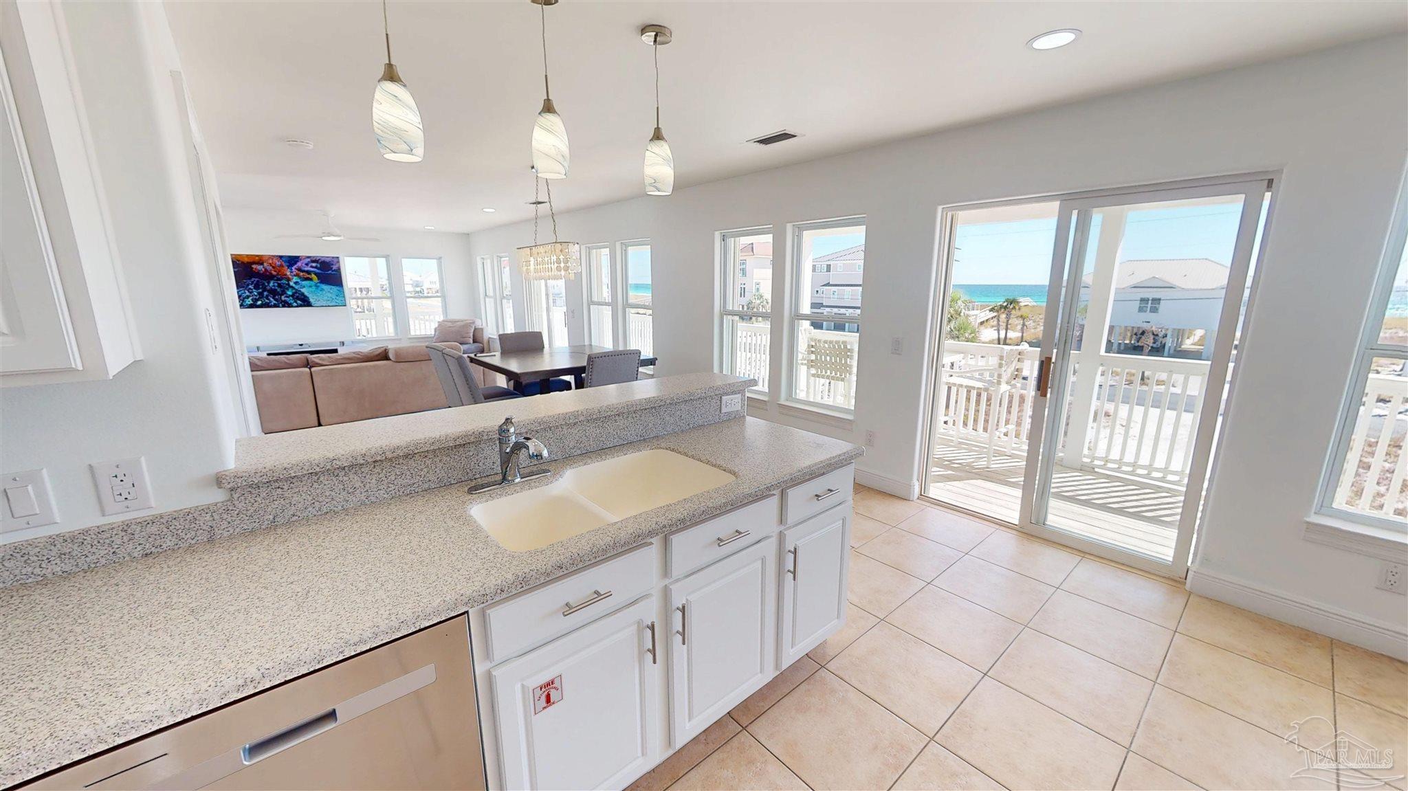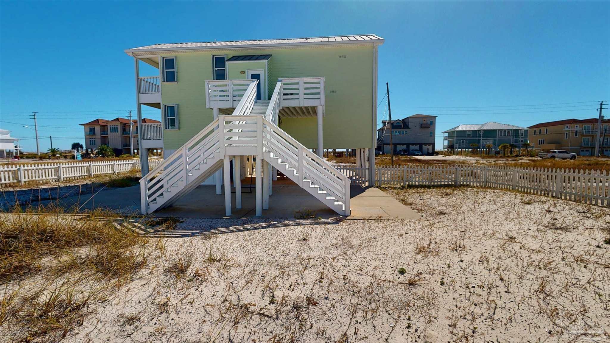 Updated and reconfigured Navarre Beach home with an assumable 2.375% loan, subject to lender approval for primary residence. This two-story coastal retreat offers full Gulf and Sound views, direct beach access, and no HOA. The assumable low-rate financing provides a rare opportunity for long-term savings compared with today’s rates. Thoughtfully redesigned with three bedrooms, two full baths, and one half bath, this home blends comfort and coastal style. The open second-floor living area captures panoramic water views and opens to full-length covered decks—ideal for sunrise coffee and sunset skies. The kitchen features Corian countertops, abundant cabinetry, new stainless-steel appliances, and a breakfast bar open to the dining area. The primary suite includes a walk-in closet and private bath with separate shower. Fresh paint, updated lighting, and tile flooring throughout make it move-in ready. Property conveys partially furnished with ample storage and parking beneath the home. Mostly furnished for turnkey rental ready. Enjoy island living with Gulf views, Sound breezes, and the advantage of assumable low-rate financing—an opportunity rarely found on Navarre Beach.