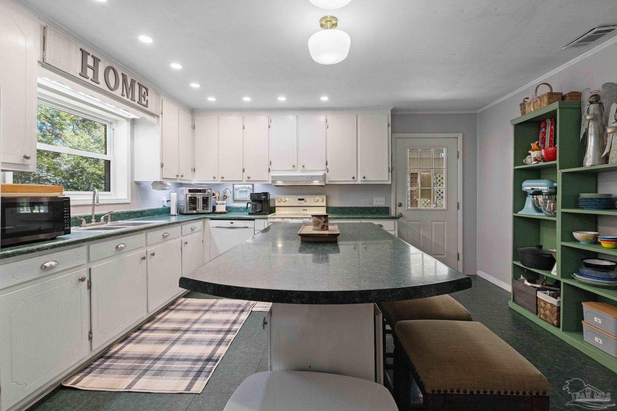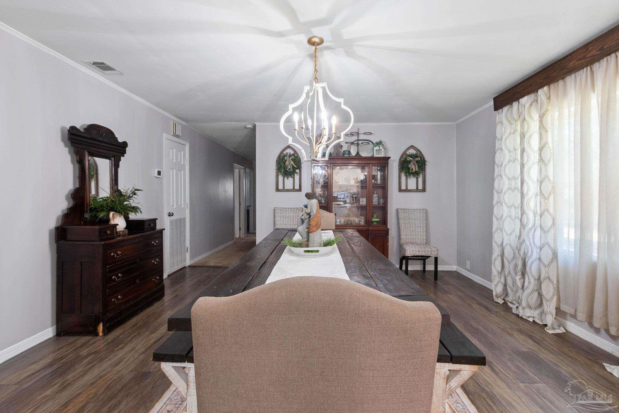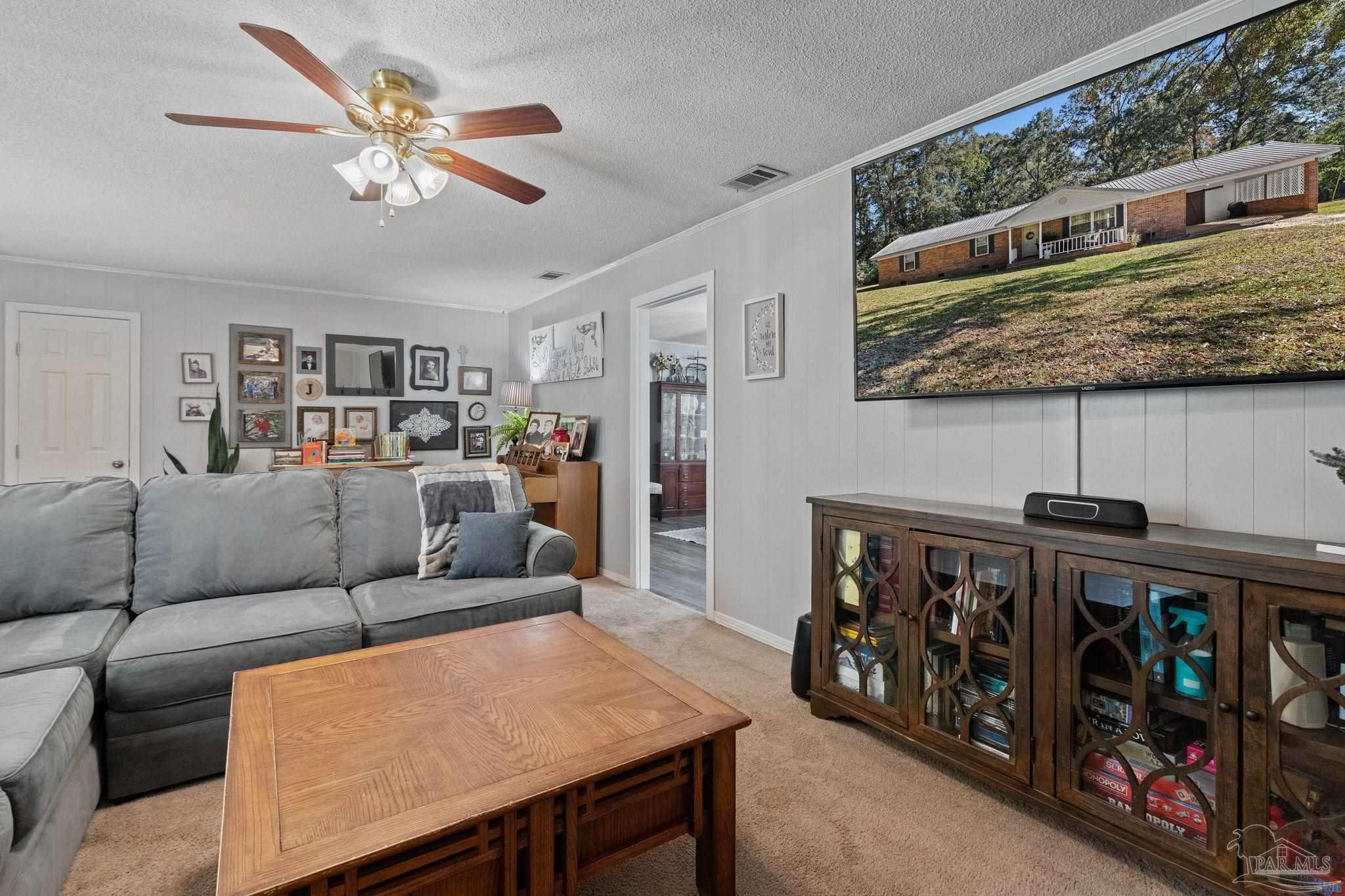 Tucked along a quiet country road in the Uriah School District, this clean and cozy home feels like something out of a simpler time. The sound of birds replaces the hum of traffic, and neighbors wave when they pass by.Step inside and you’ll find fresh updates throughout—a spacious living room that’s perfect for movie nights, a dining area big enough for Sunday suppers, and a kitchen with plenty of counter space for baking days and coffee chats.The primary suite offers comfort and privacy with its walk-in closet and ensuite bath, while two additional bedrooms make room for family, guests, or a quiet office space. The laundry room easily fits your washer, dryer, and even a deep freeze—because around here, we like to stock up for the season.Outside, the front porch swing is where you’ll want to start and end your day—morning coffee, evening sunsets, and all the little moments in between. A carport keeps your vehicle out of the weather, and the peaceful setting gives you that sense of privacy that’s hard to find.Whether you’re just starting out, raising a family, or simply craving a slower pace, this move-in-ready 3-bed, 2-bath home is ready to welcome you home to rural living at its best. Buyer to verify all information during due diligence.