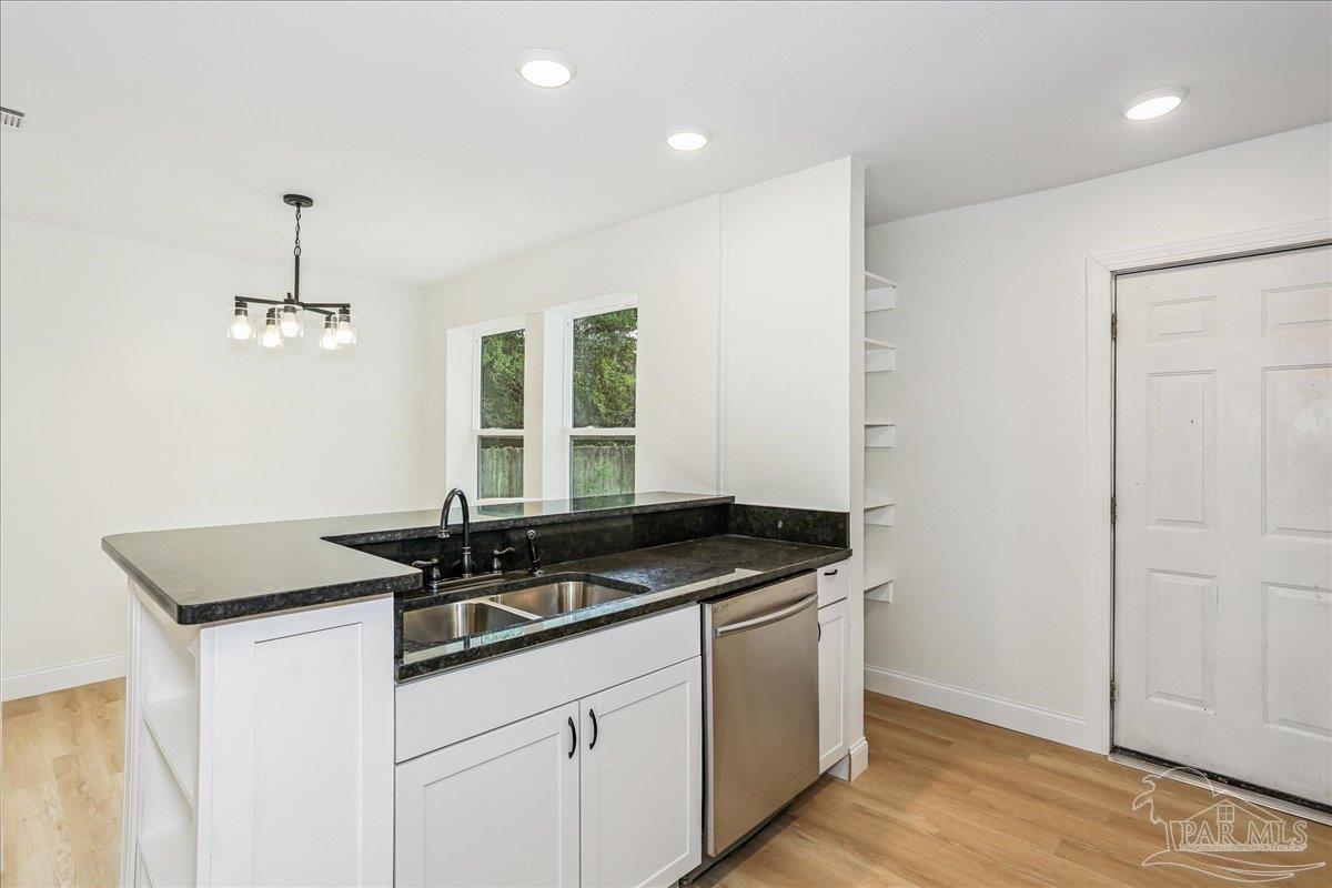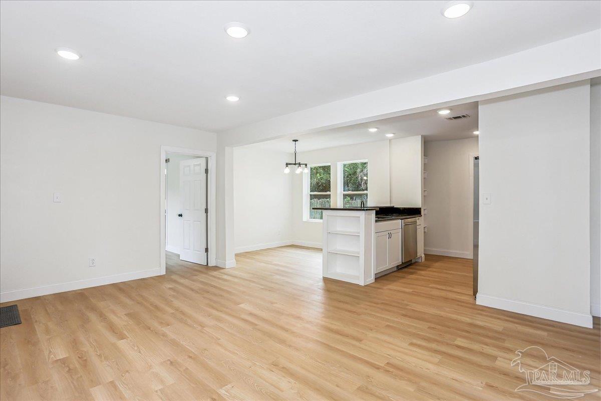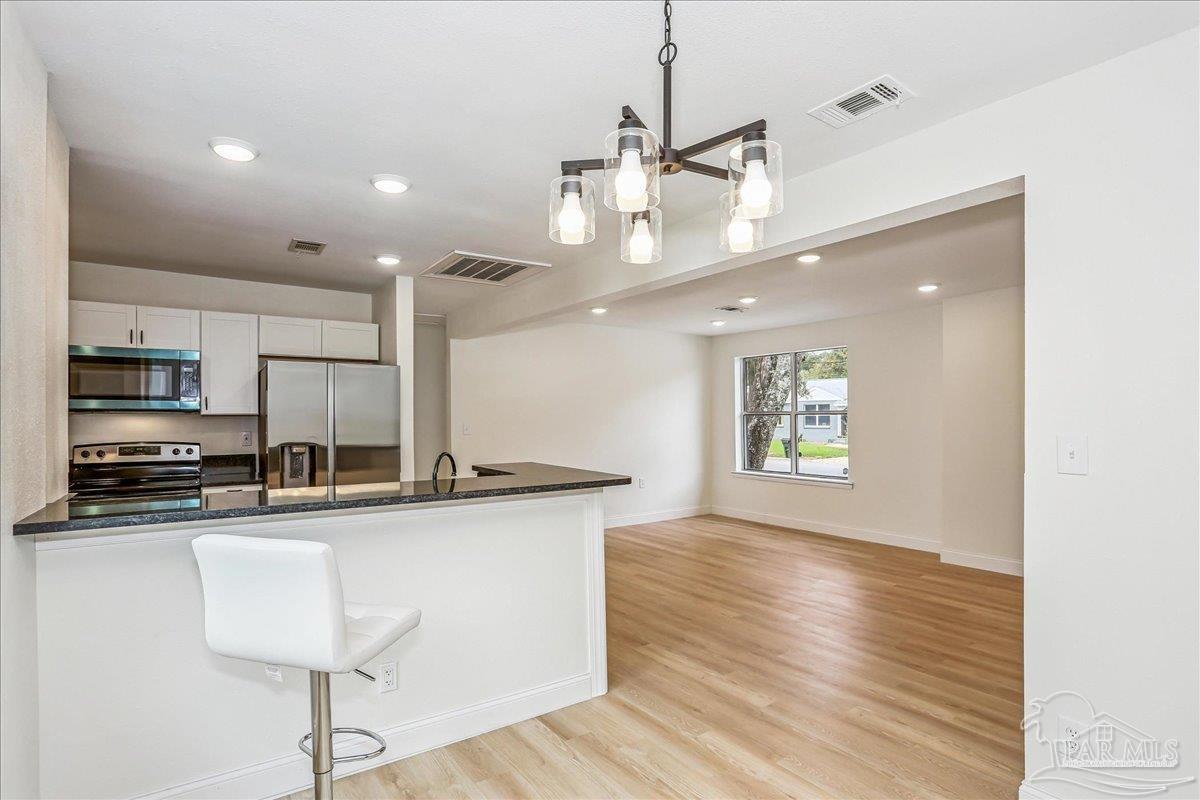 Your Gulf Coast dream just became affordable! This brand new listing offers budget-friendly living with unbeatable access to everything Pensacola has to offer. Welcome to this charming and highly durable home offering exceptional value in the heart of the sought-after North Hill Subdivision. Built with concrete block construction, this property ensures superior structural integrity and lasting quality. The home features a newly installed shingle roof (2025) and a brand new interior HVAC (2024) (exterior HVAC replaced 2017). This property has been significantly updated, transforming it into a comfortable, move-in ready 3-bedroom, 2-full bathroom home. The kitchen is completely renovated and designed for modern efficiency, featuring black granite countertops, new hardwood cabinets, a built-in bar counter, and a full suite of brand-new stainless steel appliances, including the refrigerator, microwave, oven, stove range, and garbage disposal. The property now boasts a valuable second full bathroom. The new master bath includes a spacious full shower and a contemporary dual vanity, adding both convenience and appeal. Throughout the home, you’ll find durable and attractive Luxury Vinyl Plank (LVP) flooring flowing through all the living spaces. This property sits on an oversized 10,454 sq ft lot, providing a truly large and private backyard partially shaded by majestic oak trees. This expansive space offers incredible potential for future expansion, whether you envision a deck for outdoor living, a private garden, or room for a house addition. The large side yard also offers ample space for a future driveway addition. The location is unbeatable: just minutes away from the vibrant dining, entertainment, and businesses of Downtown Pensacola, and only a mile from I-110 access. This home has no HOA, making it a perfect home or an outstanding investment property built with lasting quality and major components already updated.